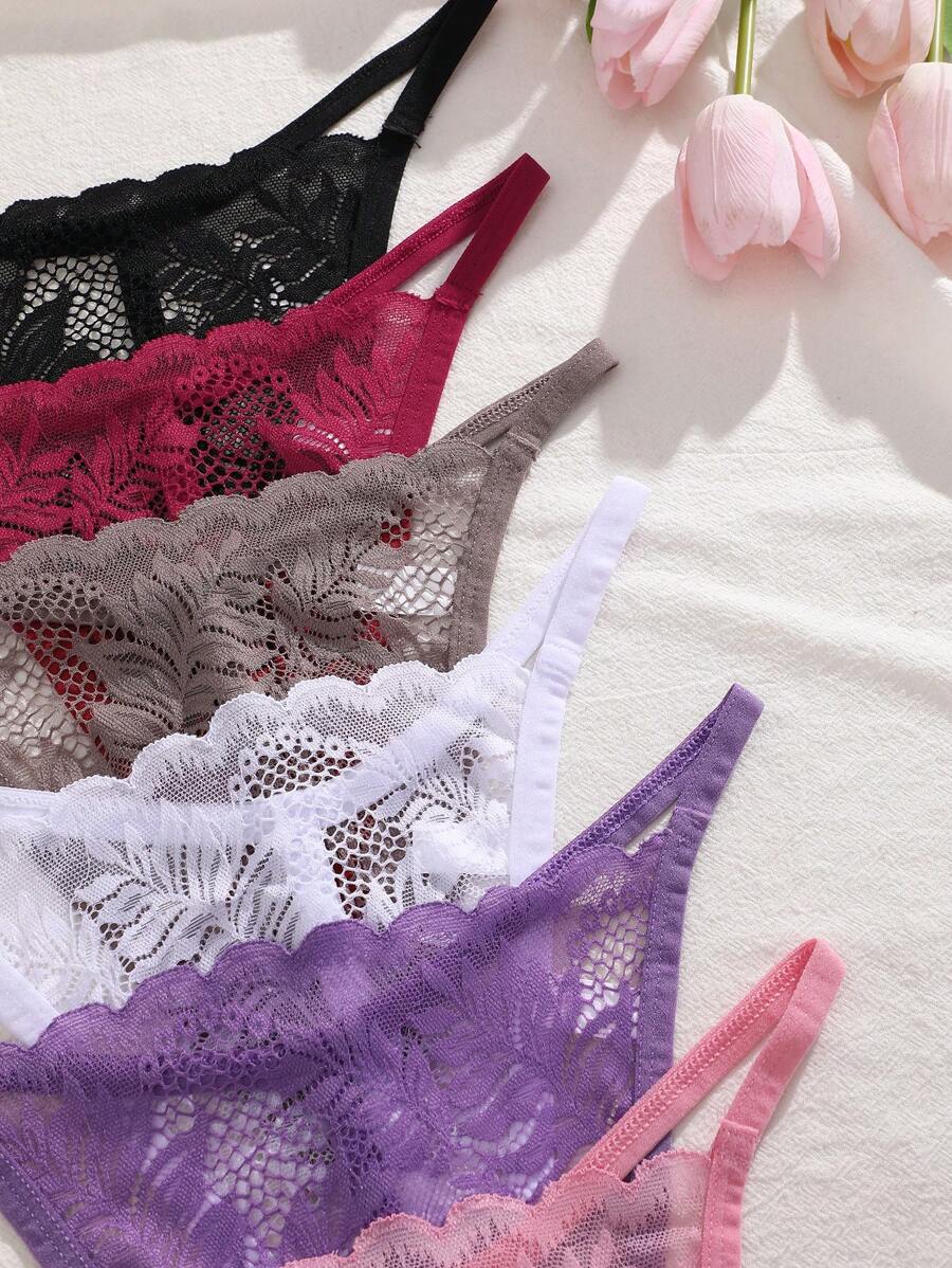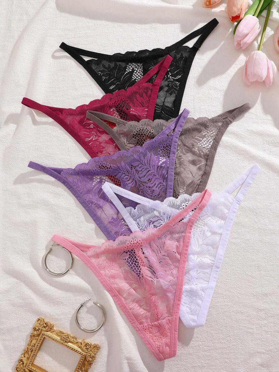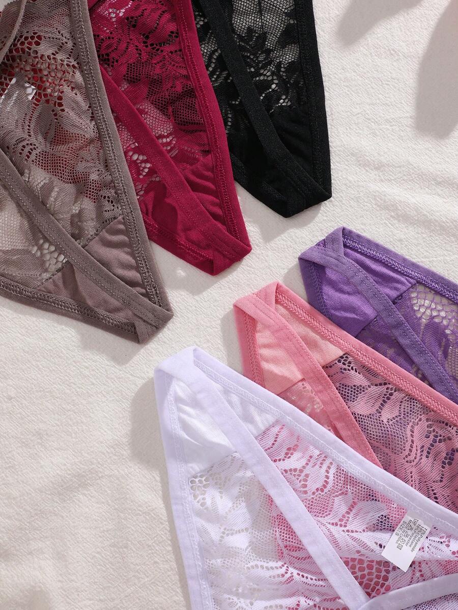 6 piezas de bragas tipo g-string de encaje comodas y transpirables para mujer, ropa interior femenina