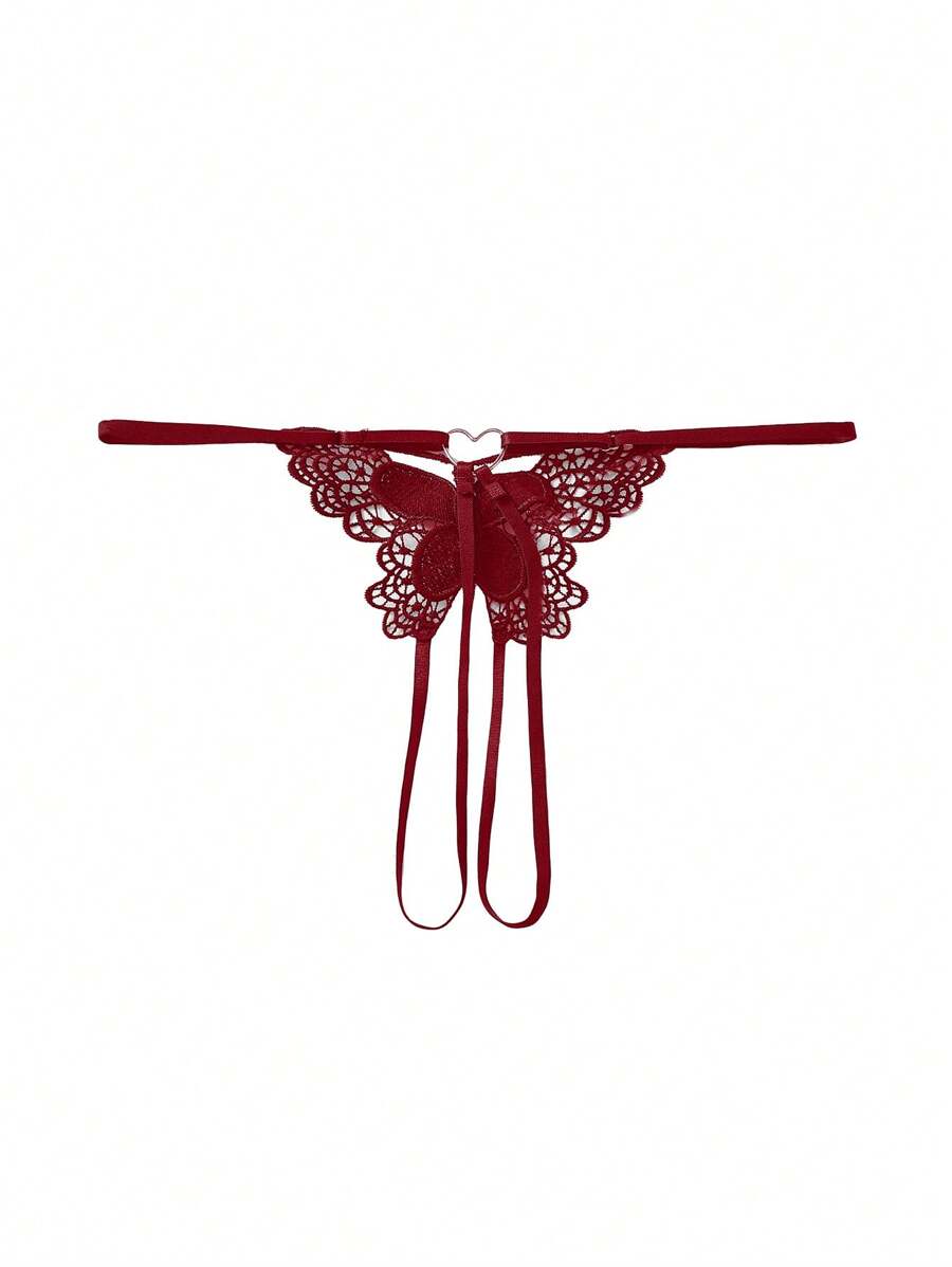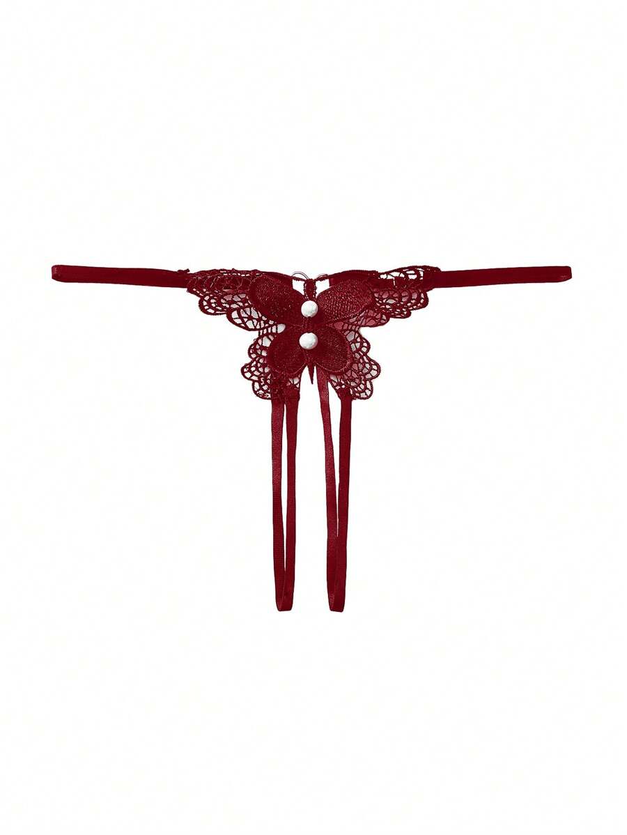 1 pieza tanga de lenceria nupcial con decoracion de perlas falsas, de estilo simple y casual, con abertura en la entrepierna, para salir