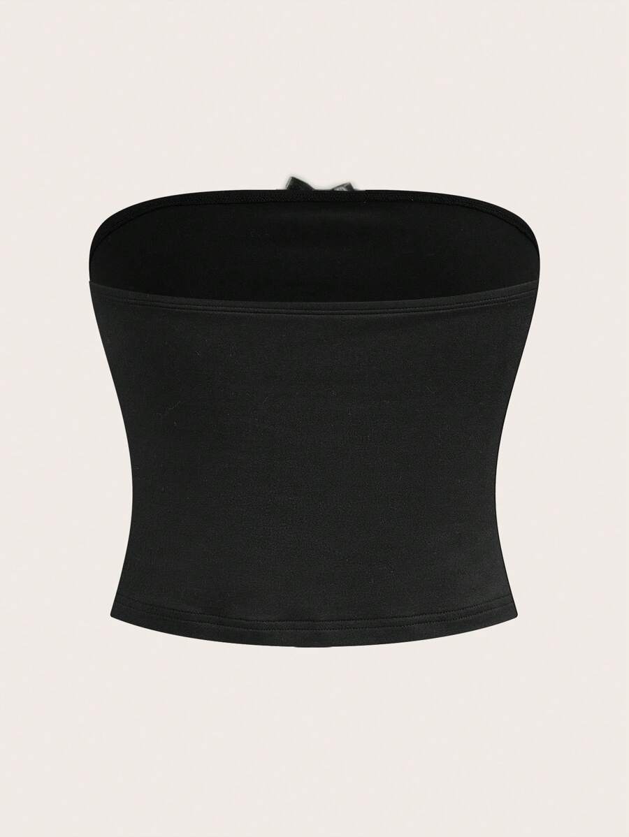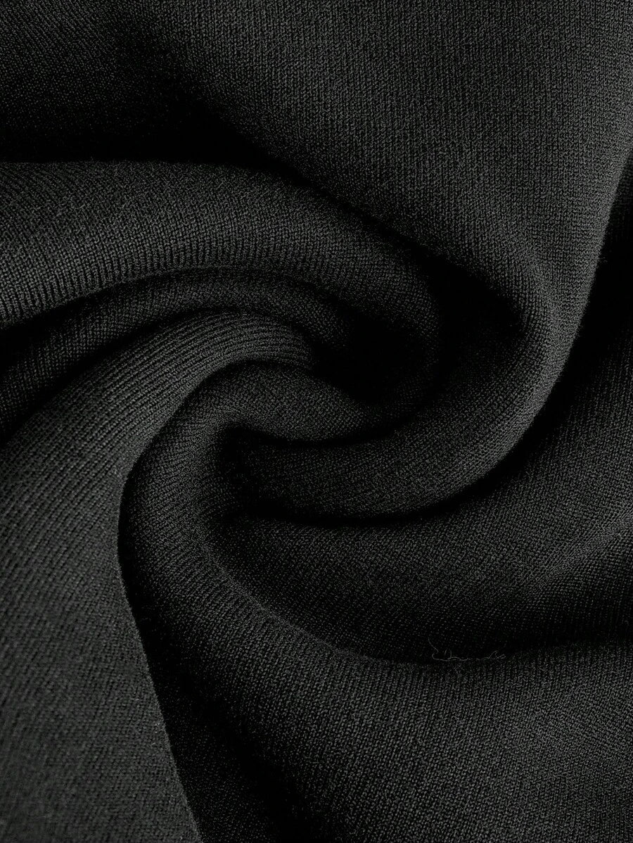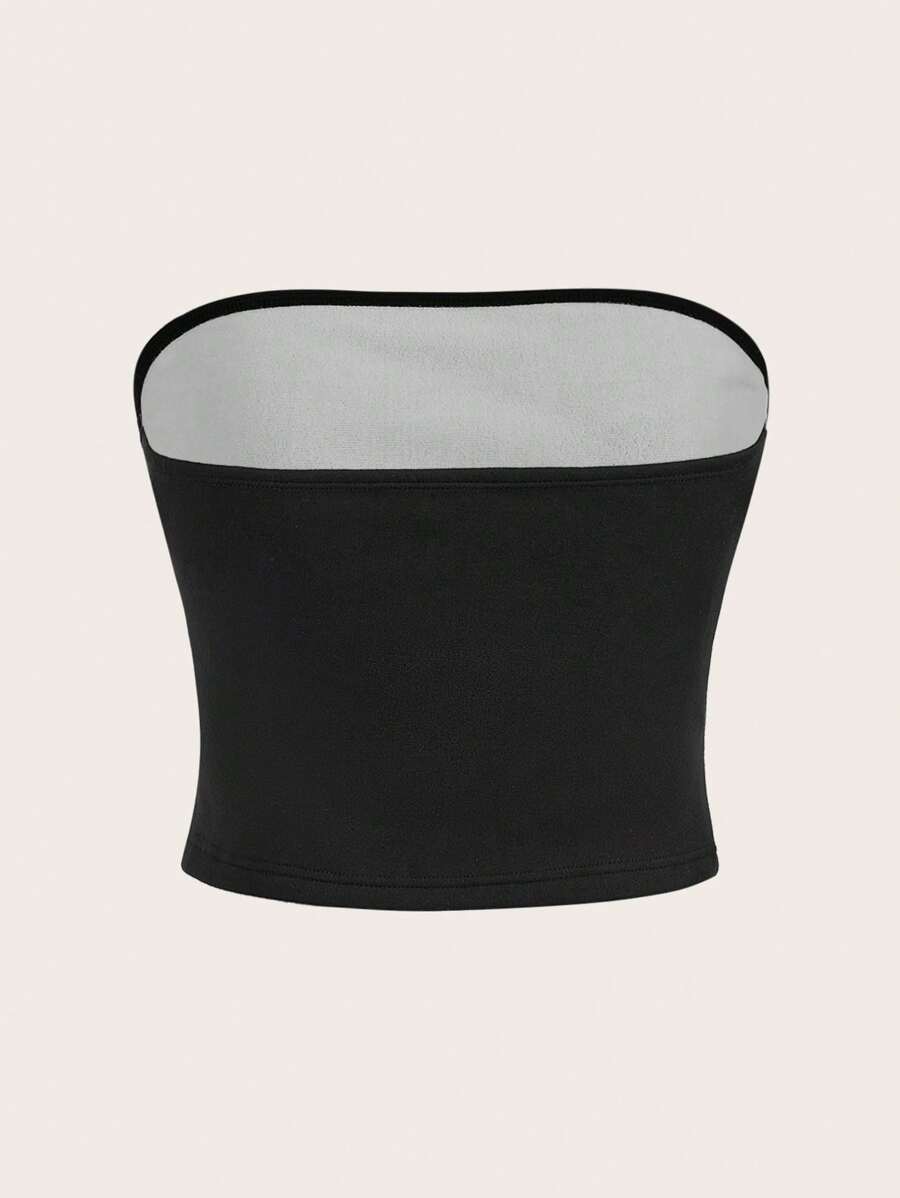 Top tubo negro ajustado casual de mujer con forro termico, apto para otono/invierno