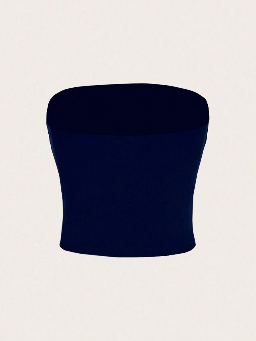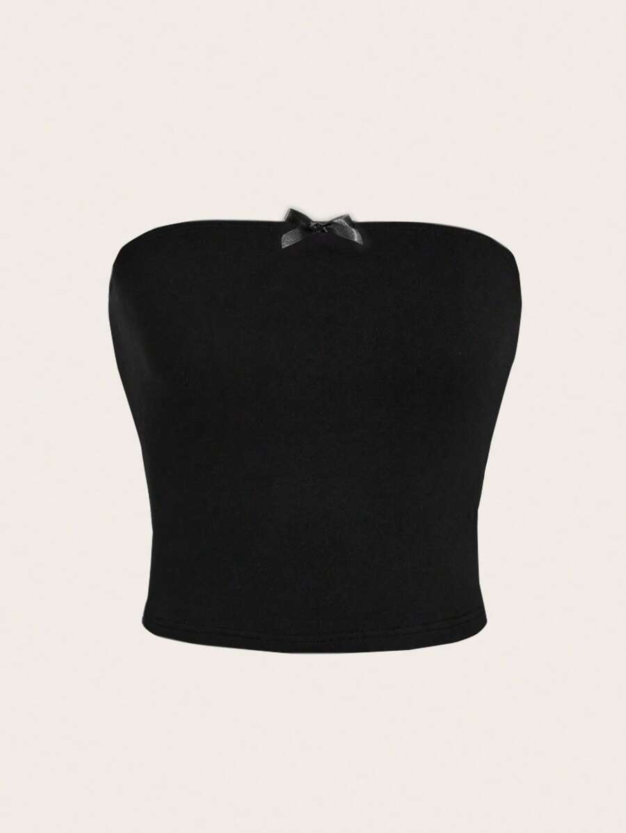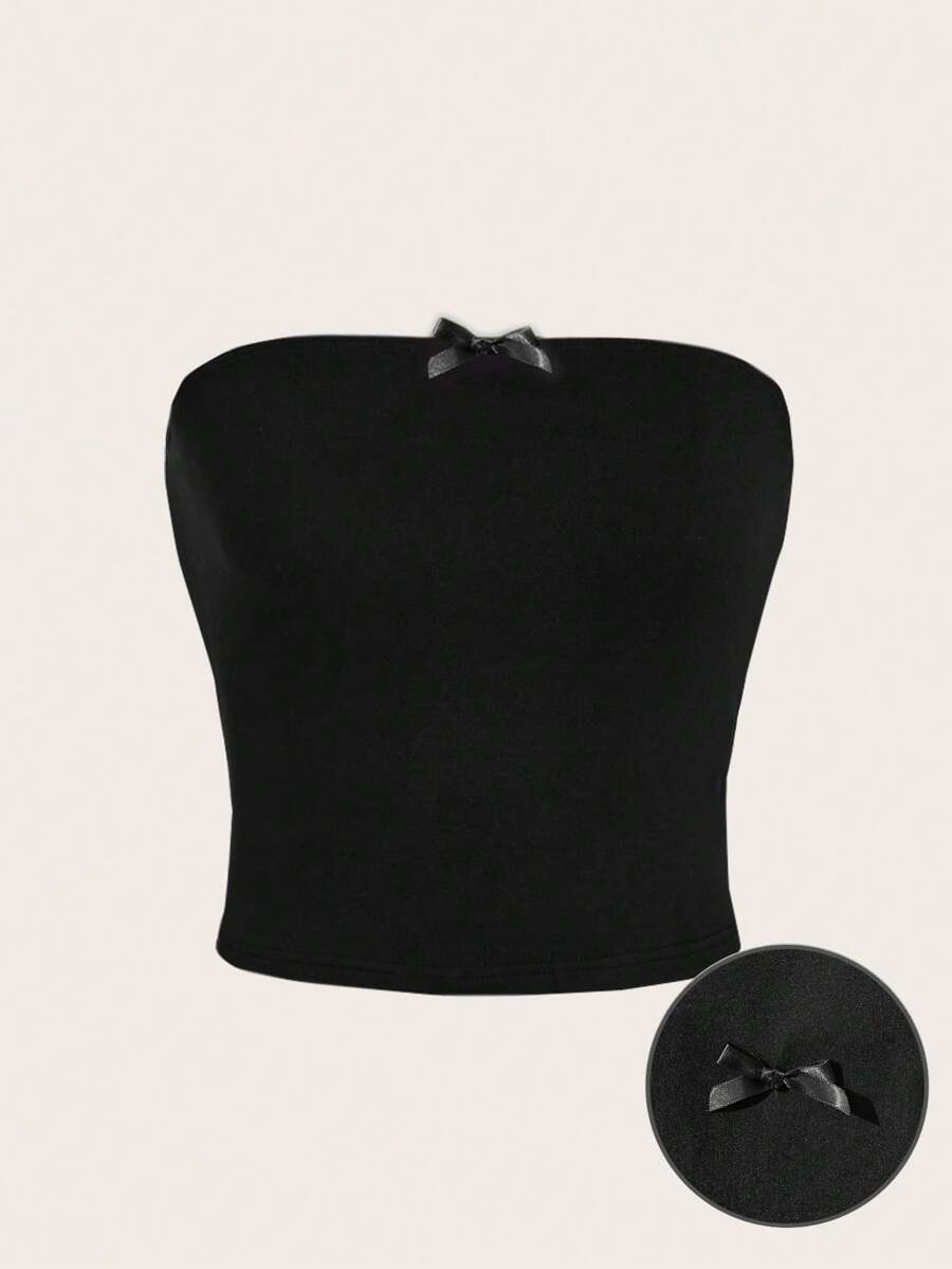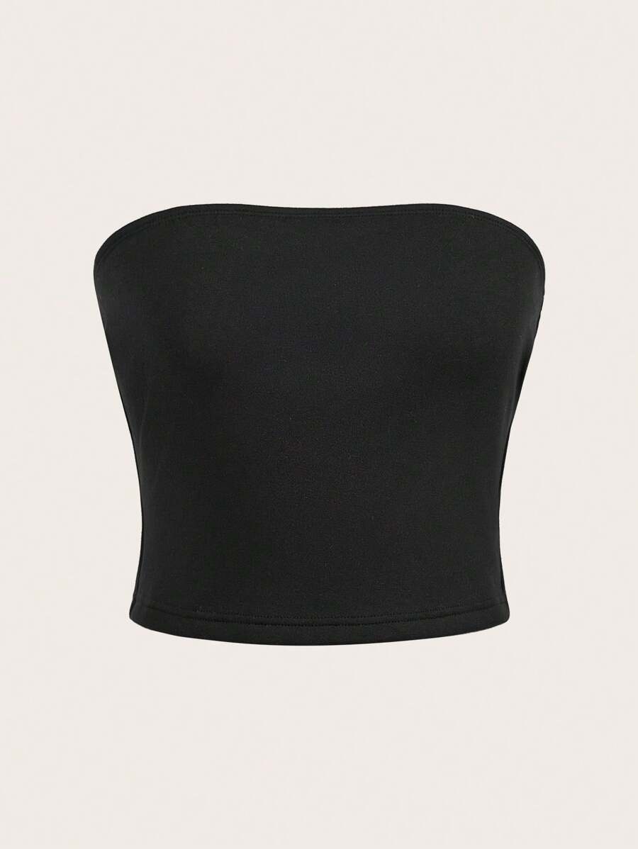 Top tubo negro ajustado casual de mujer con forro termico, apto para otono/invierno