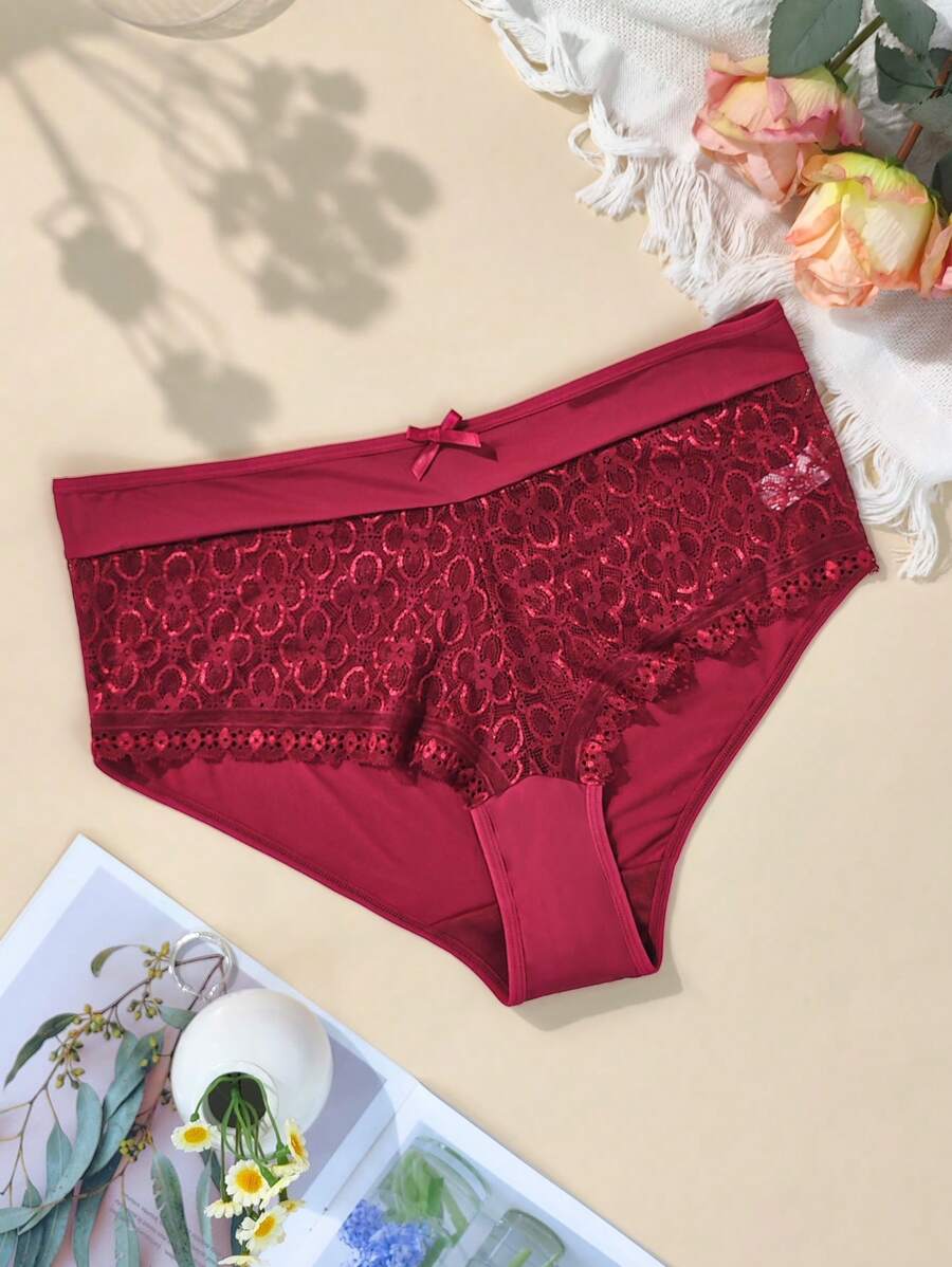 Calzones de natacion de talla grande para mujer con patchwork de encaje y suaves