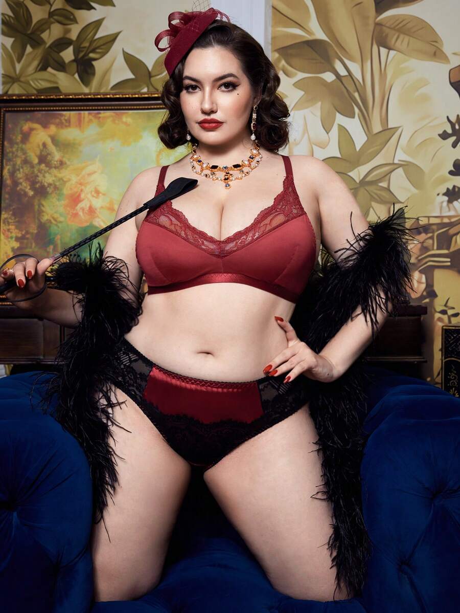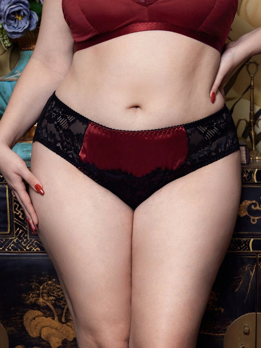 Pantis talla grande - lenceria romantica retro con encaje transparente de contraste
