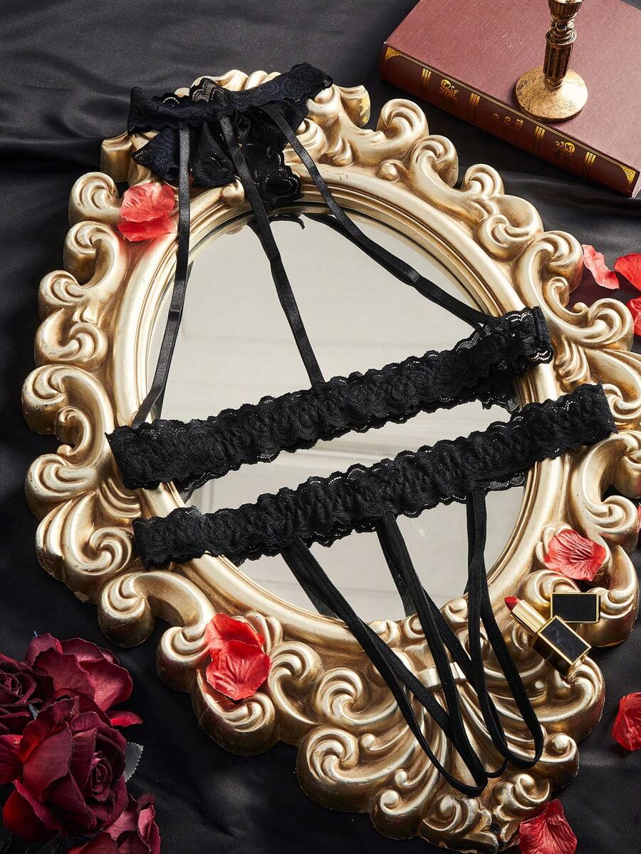 Conjunto de lenceria de 2 piezas super sexy con bralette de encaje floral sin copas y liguero, ropa interior para tallas grandes