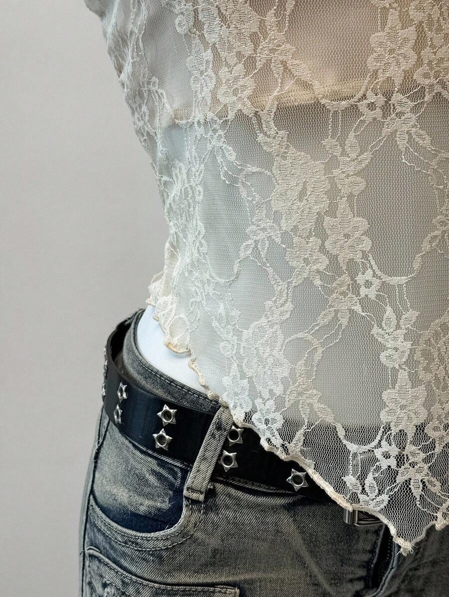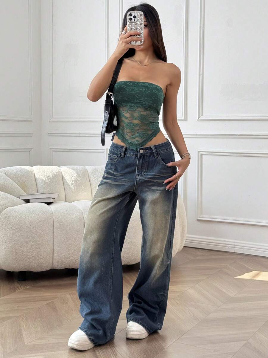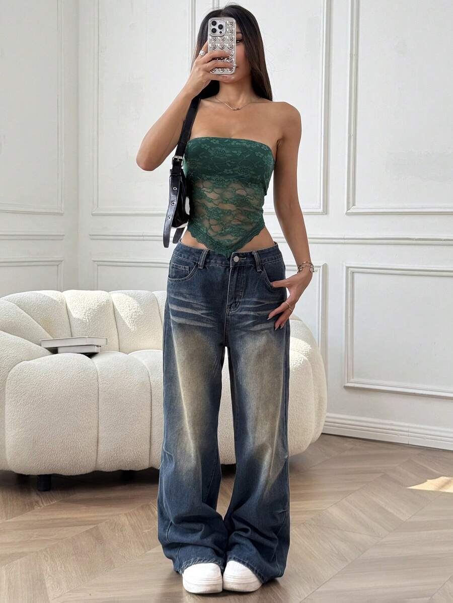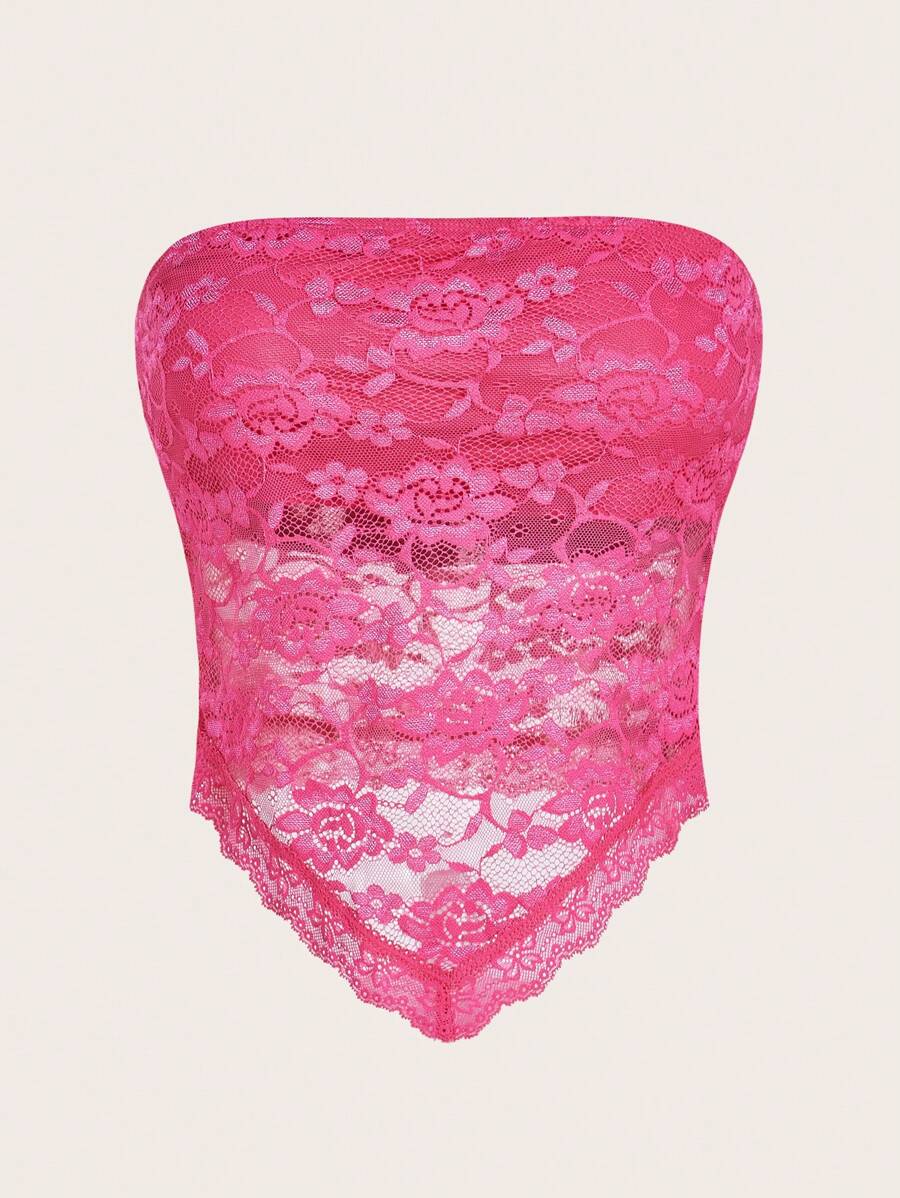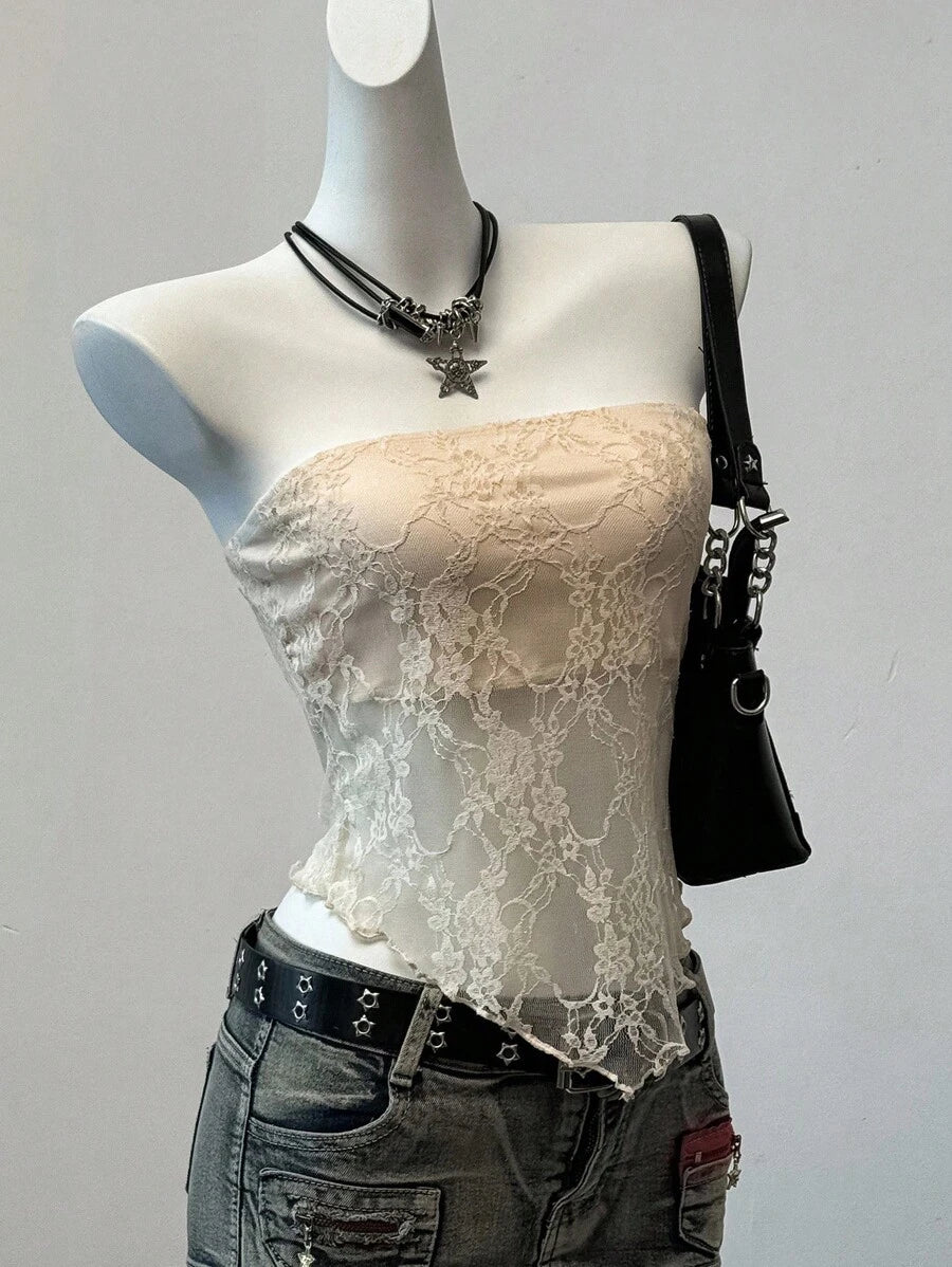 Top de brasier sin tirantes minimalista con borde de encaje, ropa de uso cotidiano casual para damas