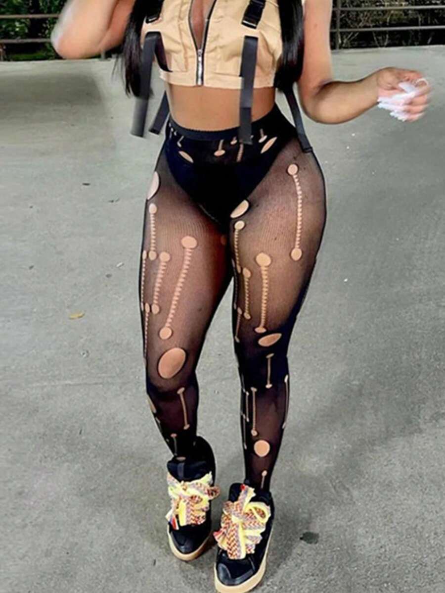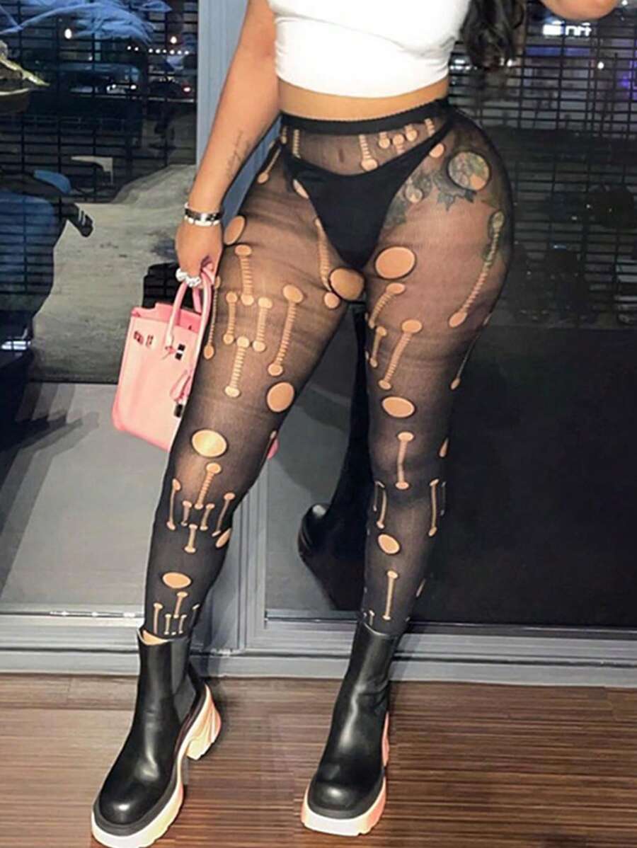 Pantalones casuales largos, de cintura alta, cenidos, de malla transparente y calados, de estilo europeo y americano, para mujer en verano, talla grande