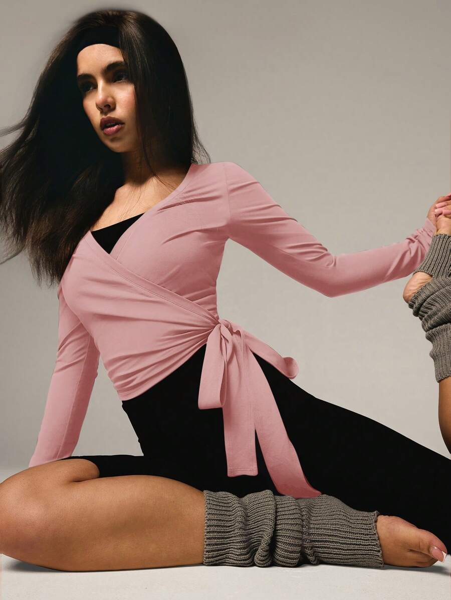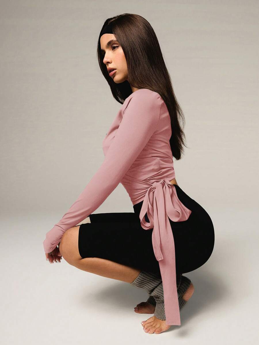 Athiral blusa casual de manga larga con cordon para mujer, color liso