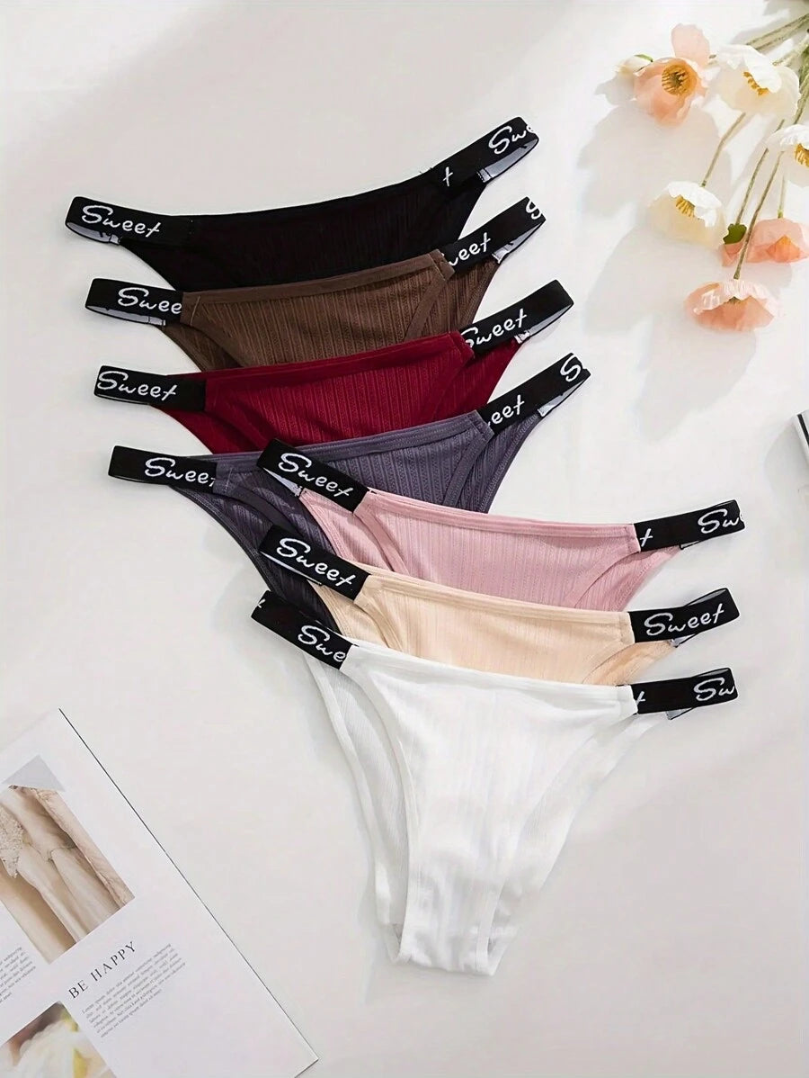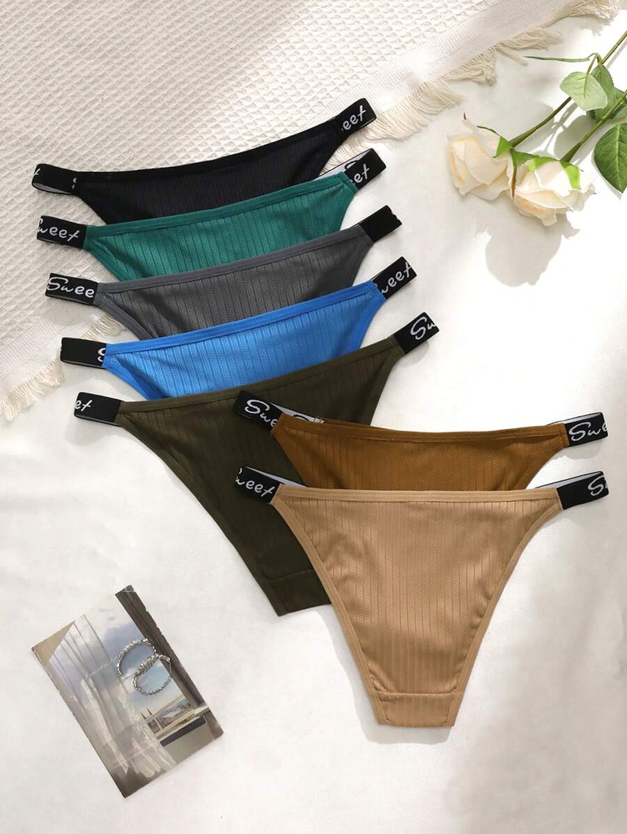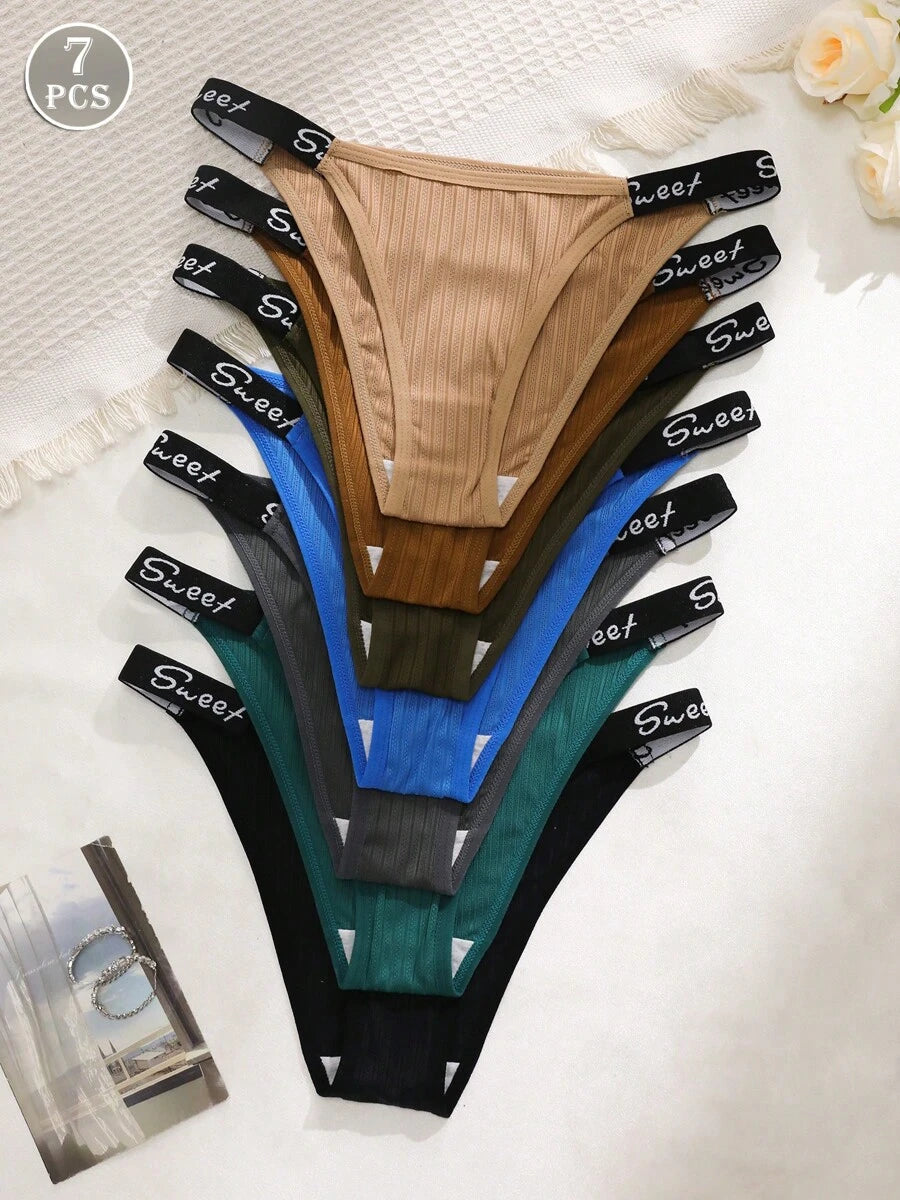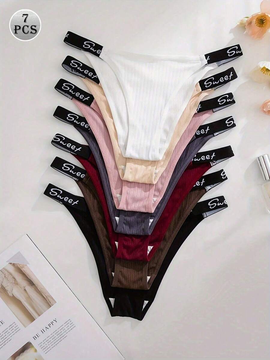 7 paquetes de bragas tipo hipster de mujer con cintura acanalada y texto en ingles