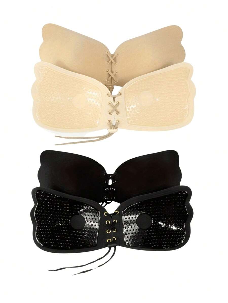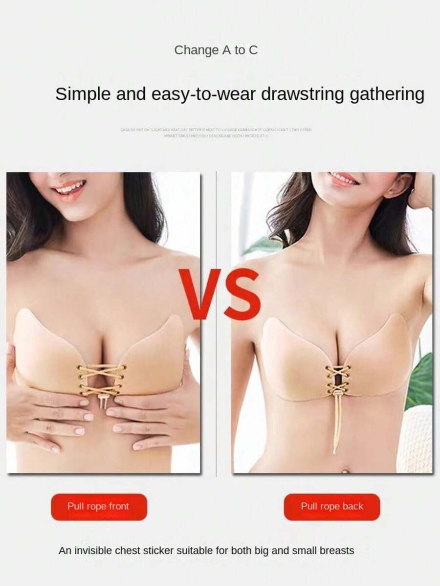 2 pares de pegatinas de seno con cordon para mujeres, colgados para vestidos de novia recogidos y levantados, pegatinas de silicona antidescolgamiento para el busto, ropa interior invisible sin tirantes