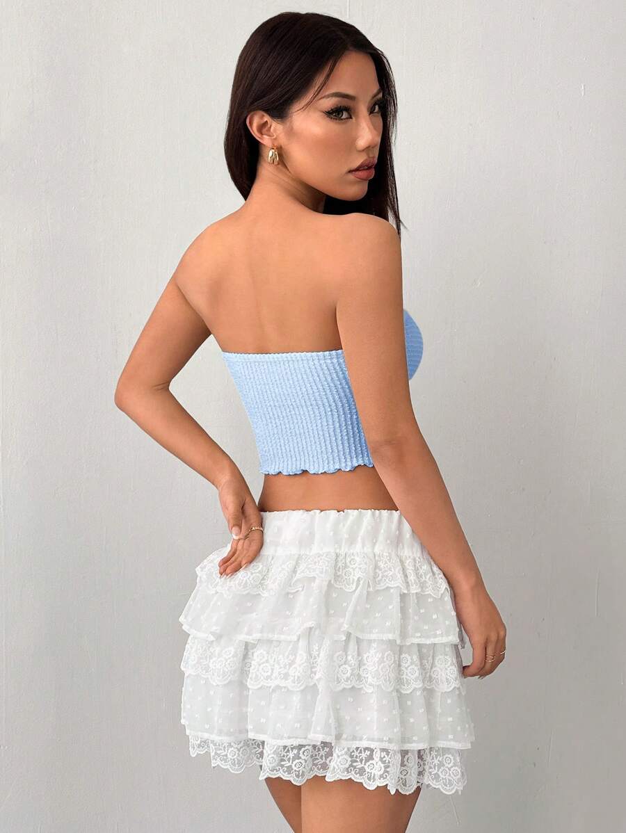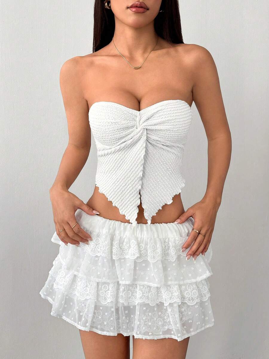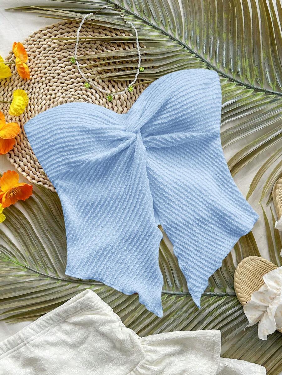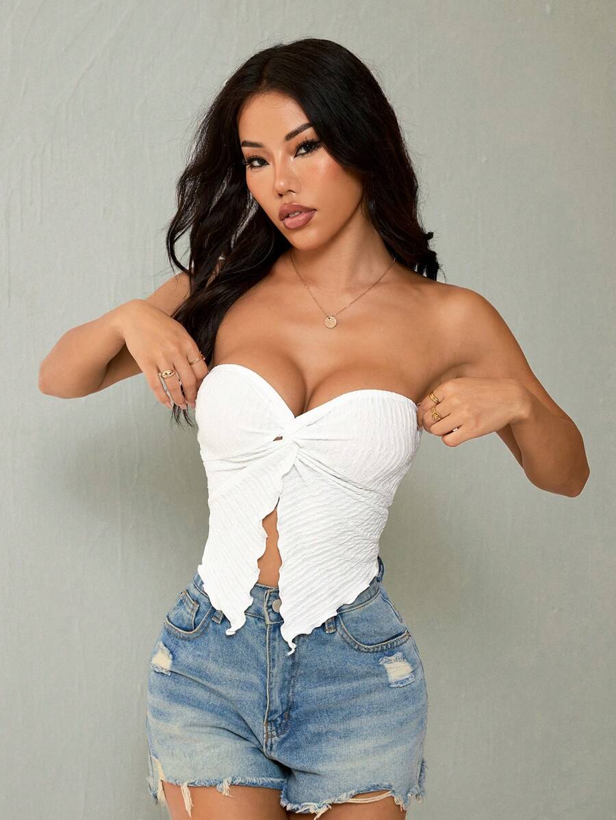 Top tubo texturizado de punto color albaricoque con borde asimetrico retorcido, chaleco para vacaciones de mujer
