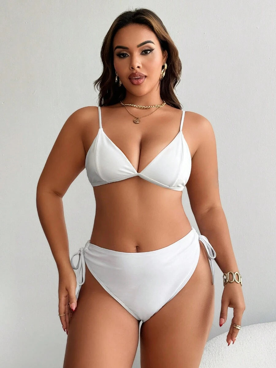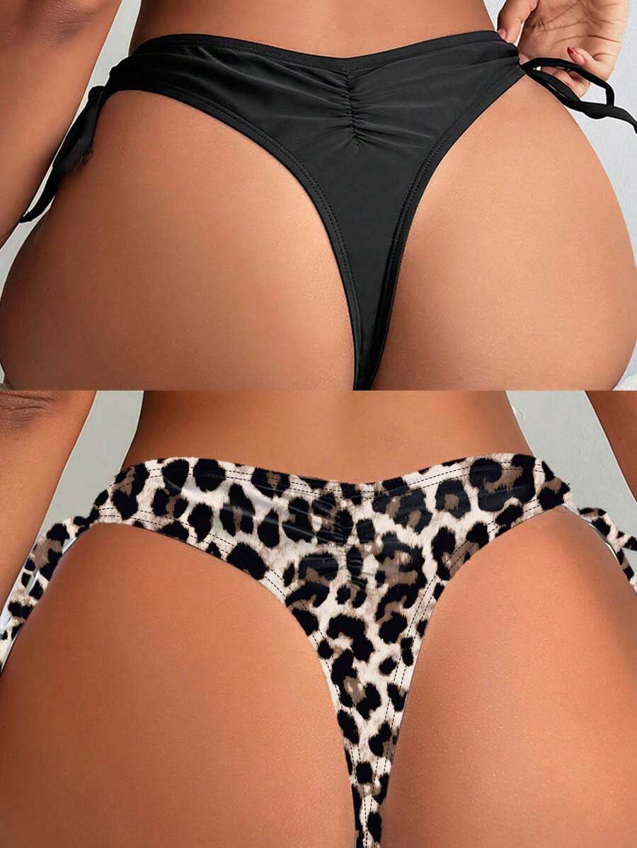 2 piezas de bottom de bikini sexy de talla grande, en negro y blanco, con lazos laterales, para verano y vacaciones a la playa