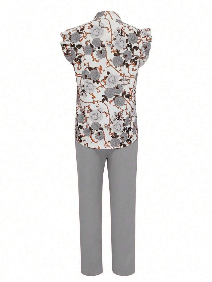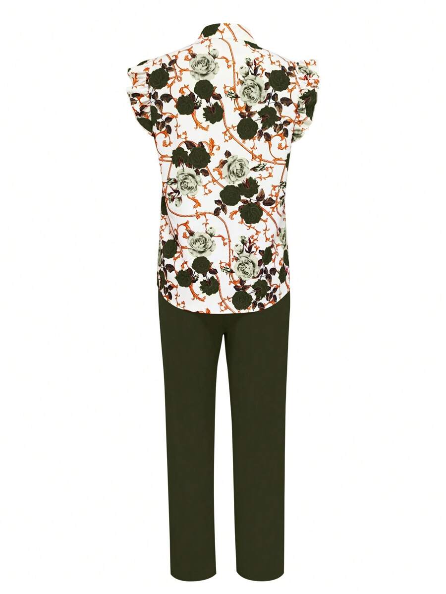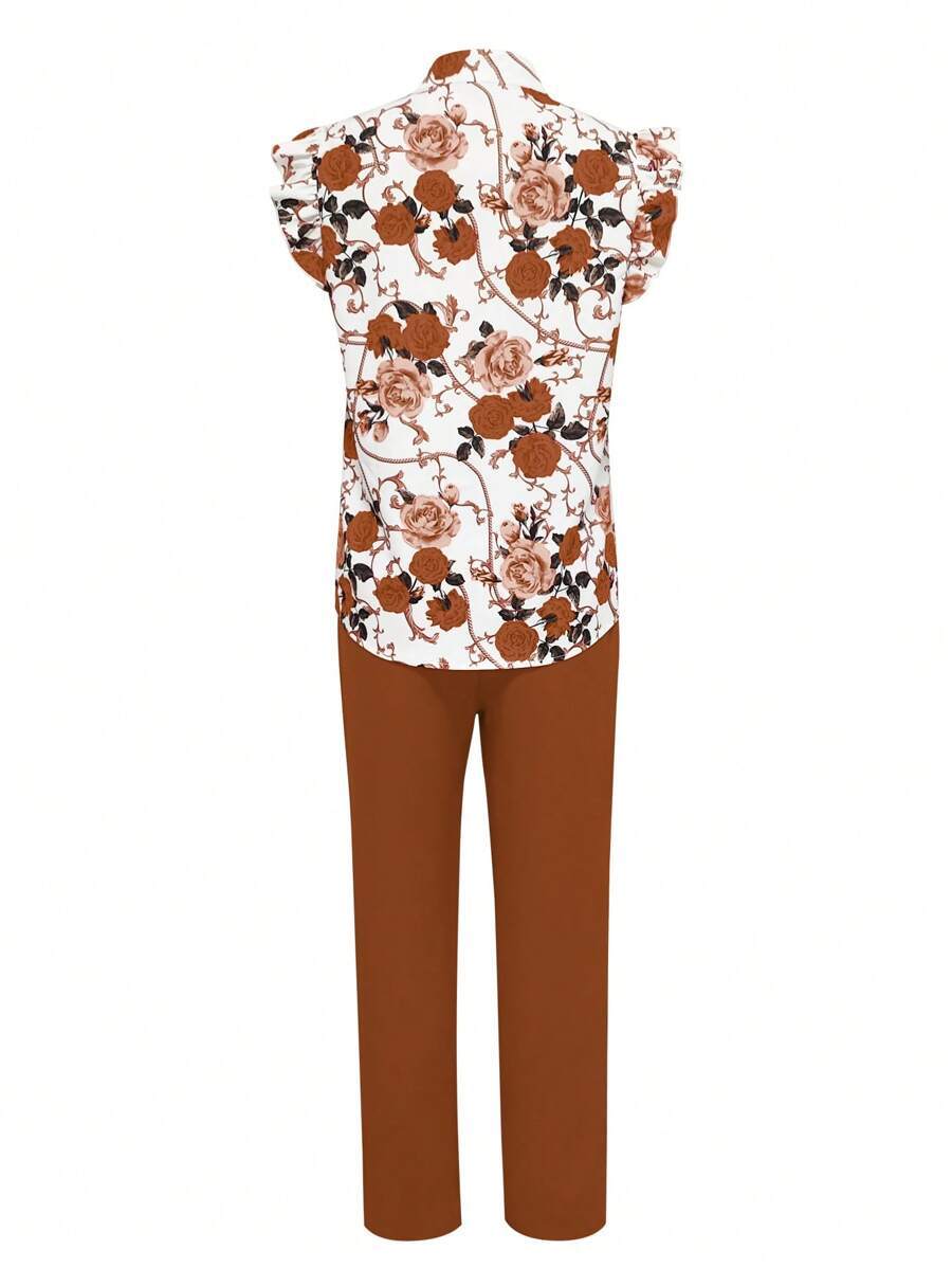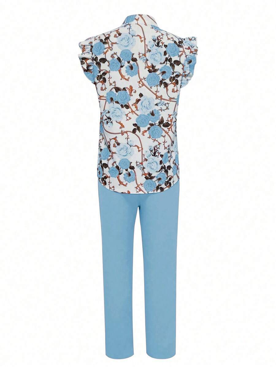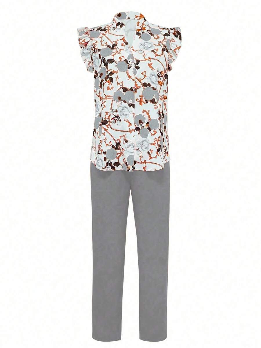 Xyvia conjunto de 2 piezas de top y pantalones impresos, de estilo casual y con botones, para mujer