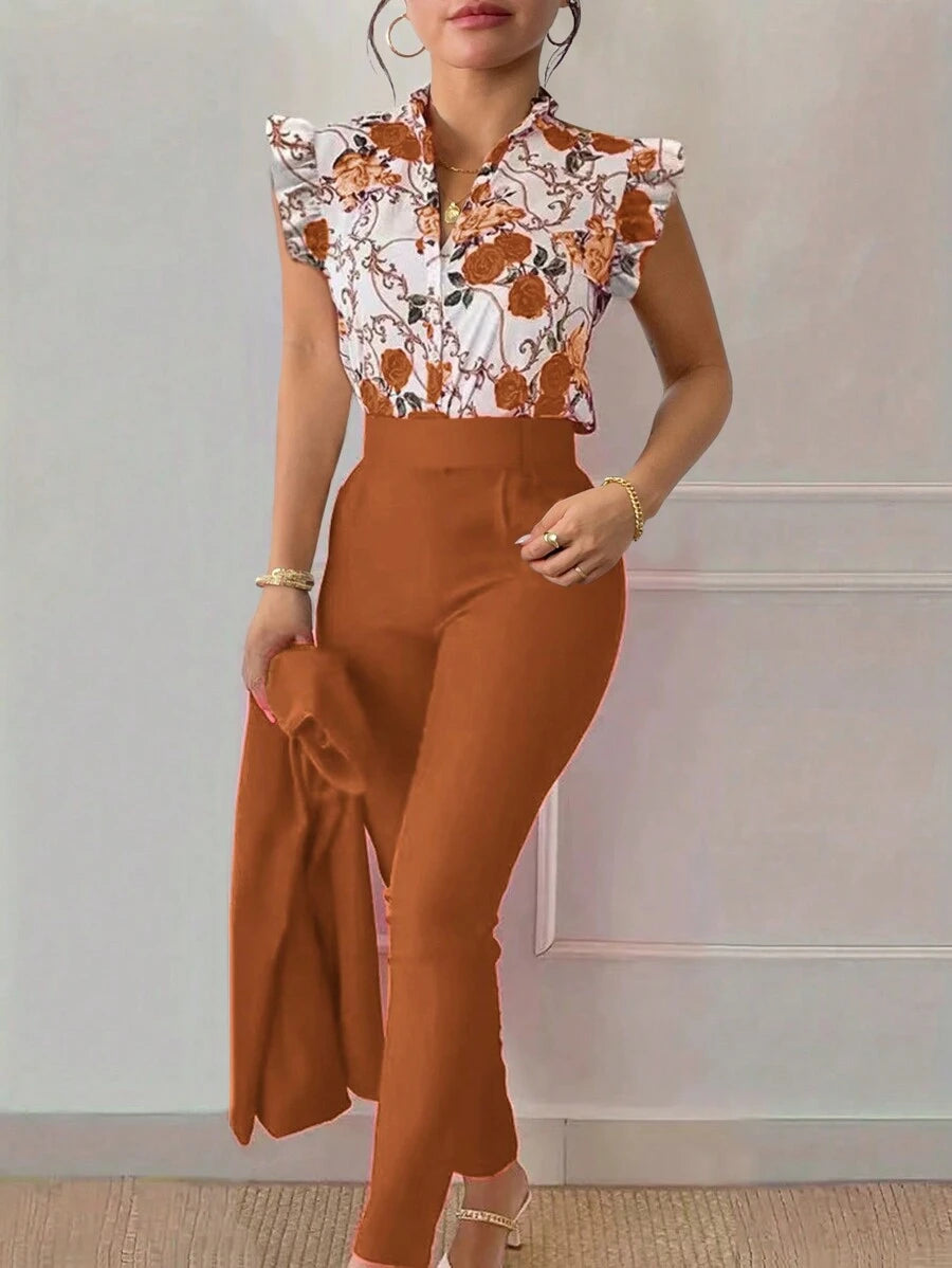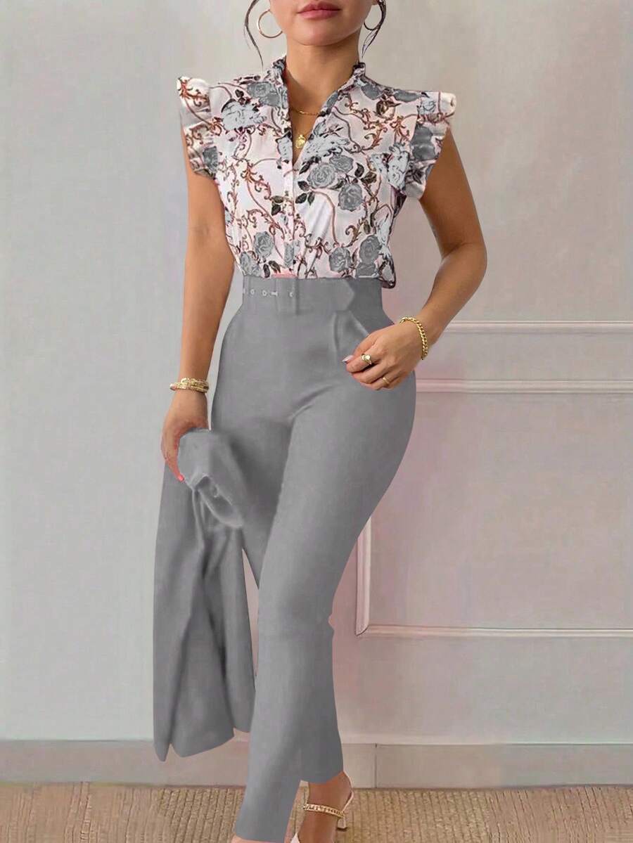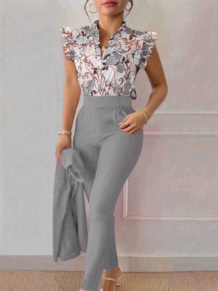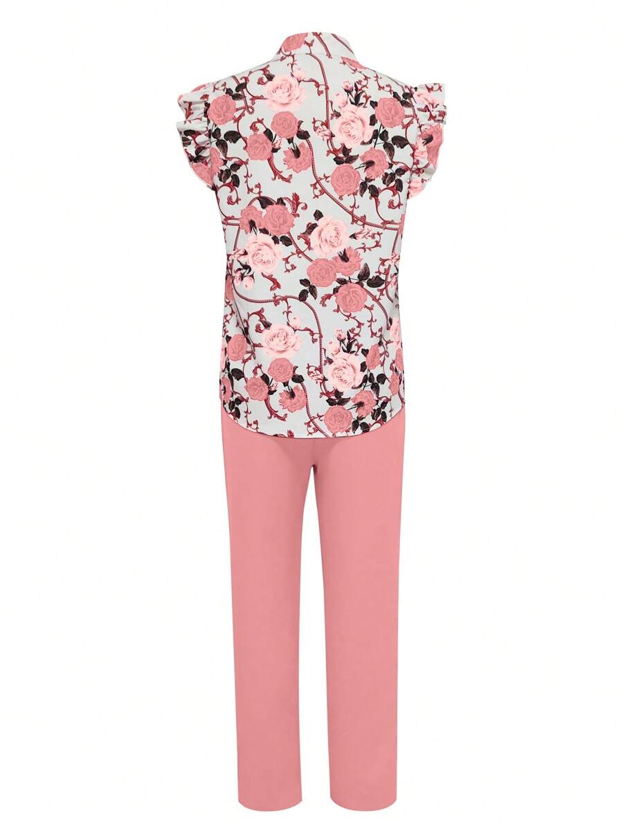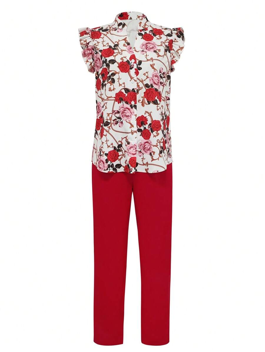 Xyvia conjunto de 2 piezas de top y pantalones impresos, de estilo casual y con botones, para mujer