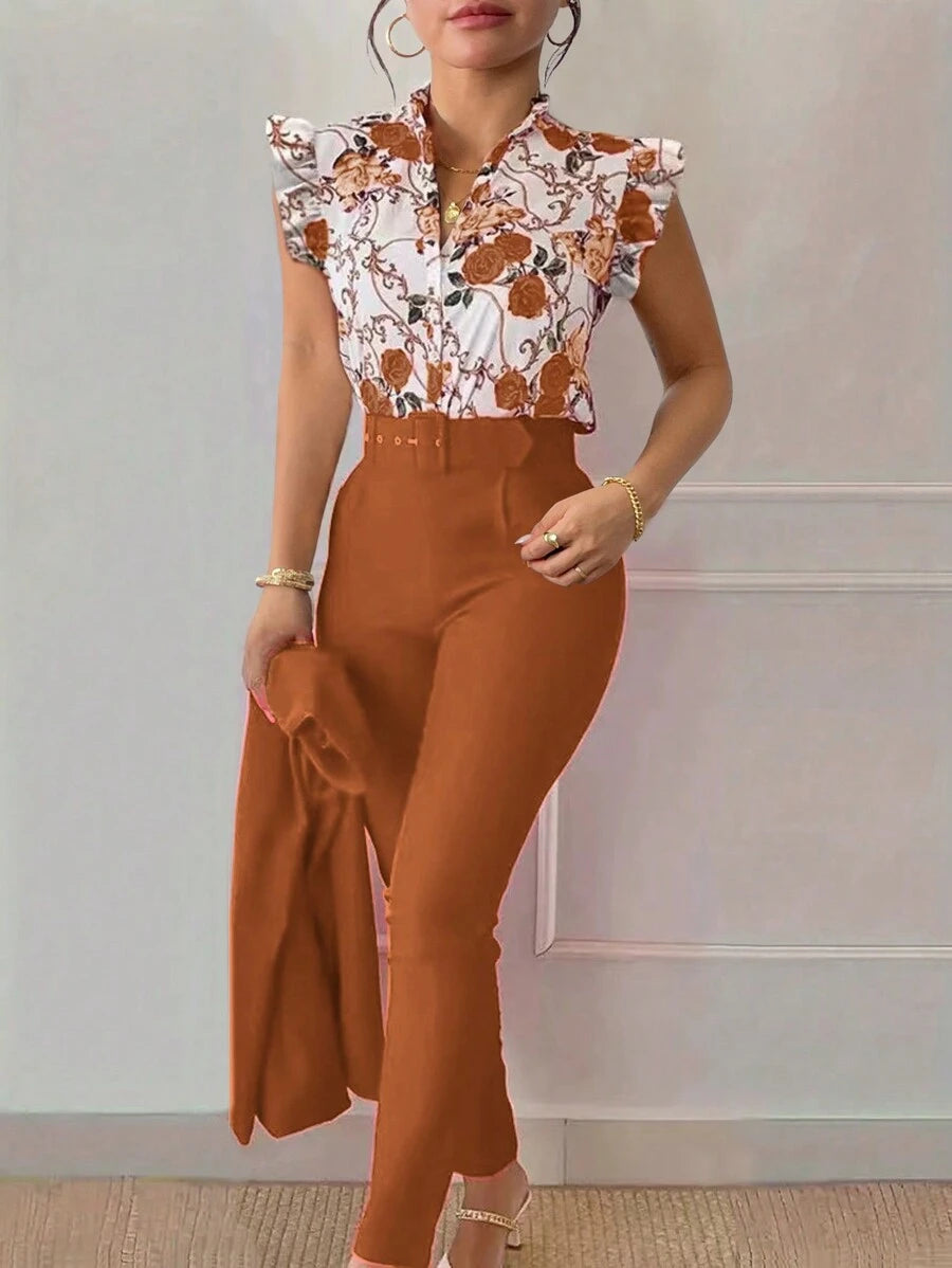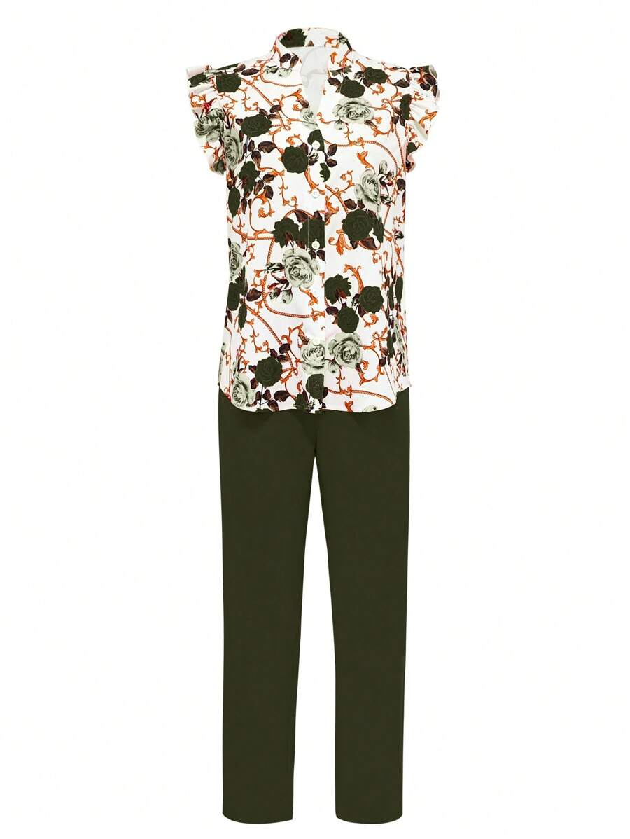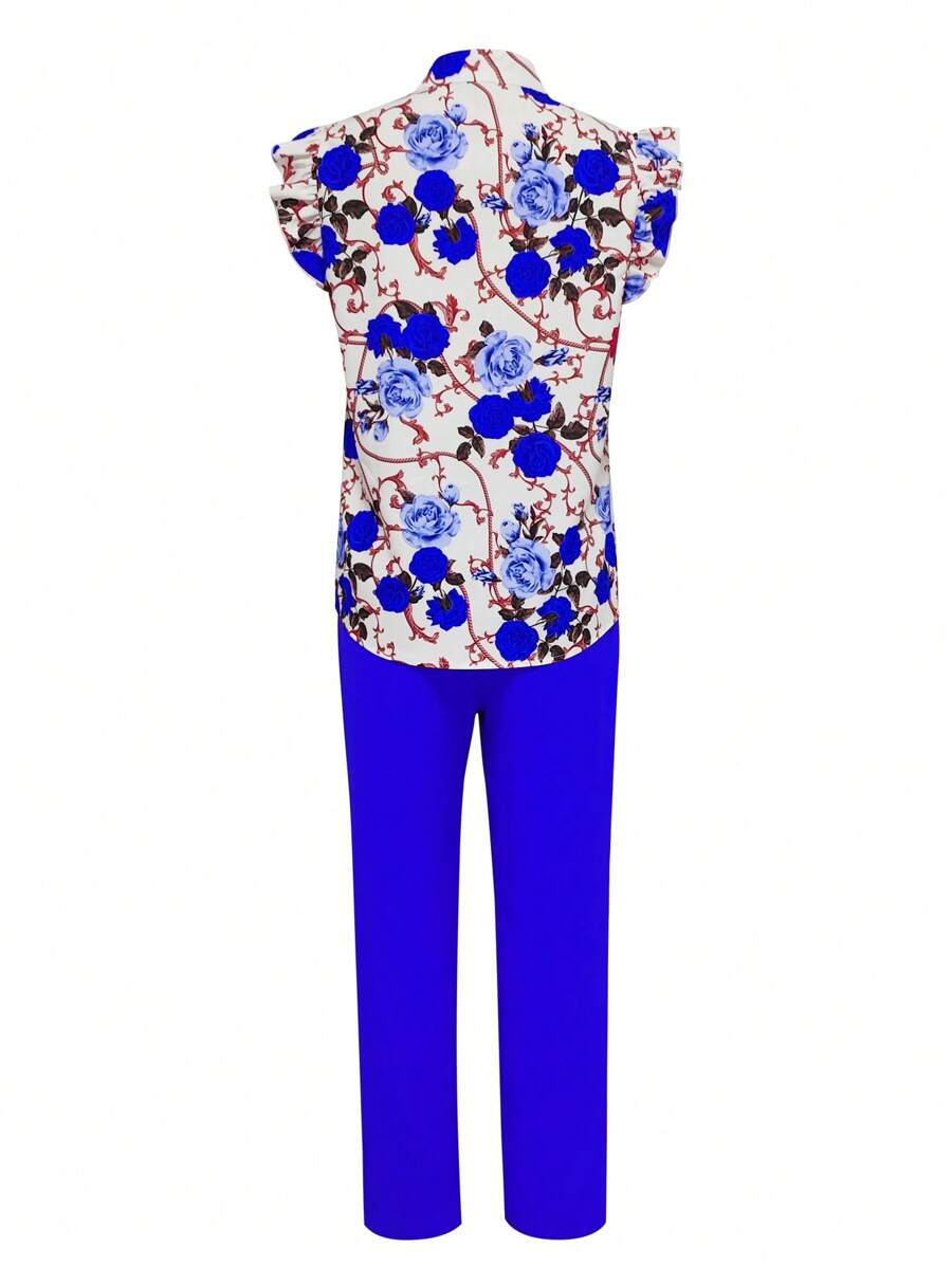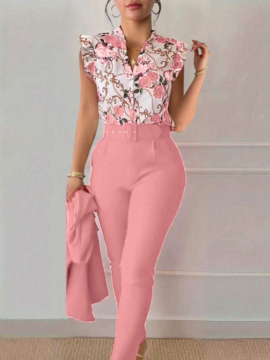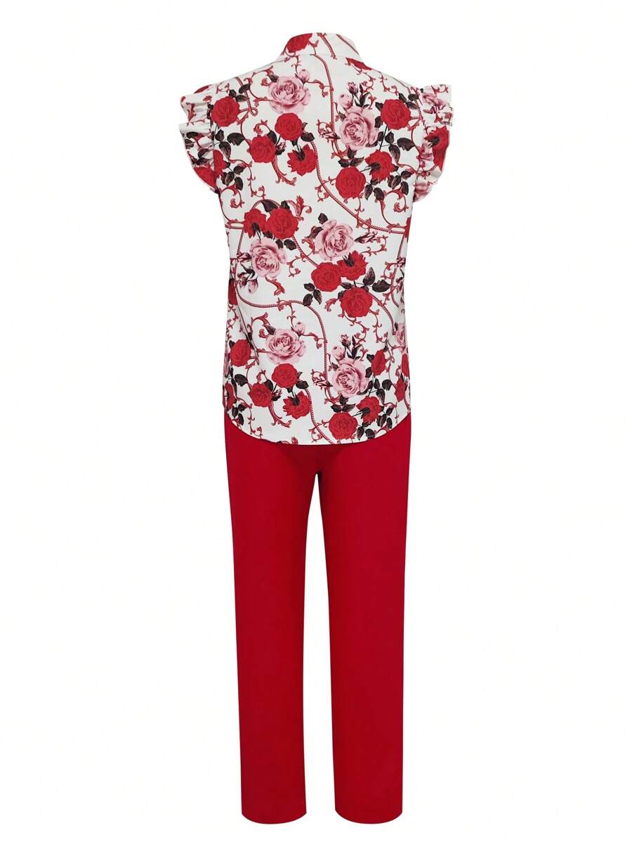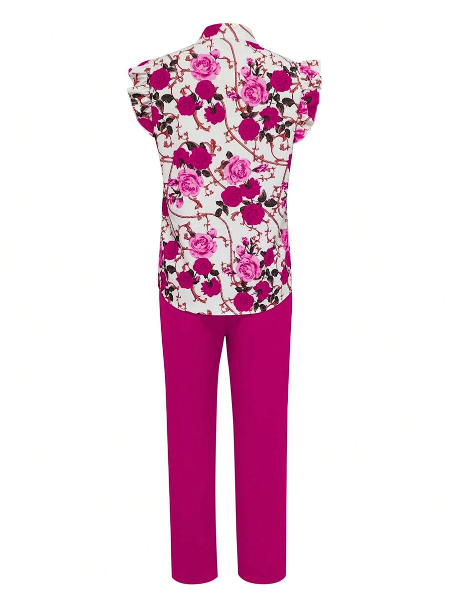 Xyvia conjunto de 2 piezas de top y pantalones impresos, de estilo casual y con botones, para mujer