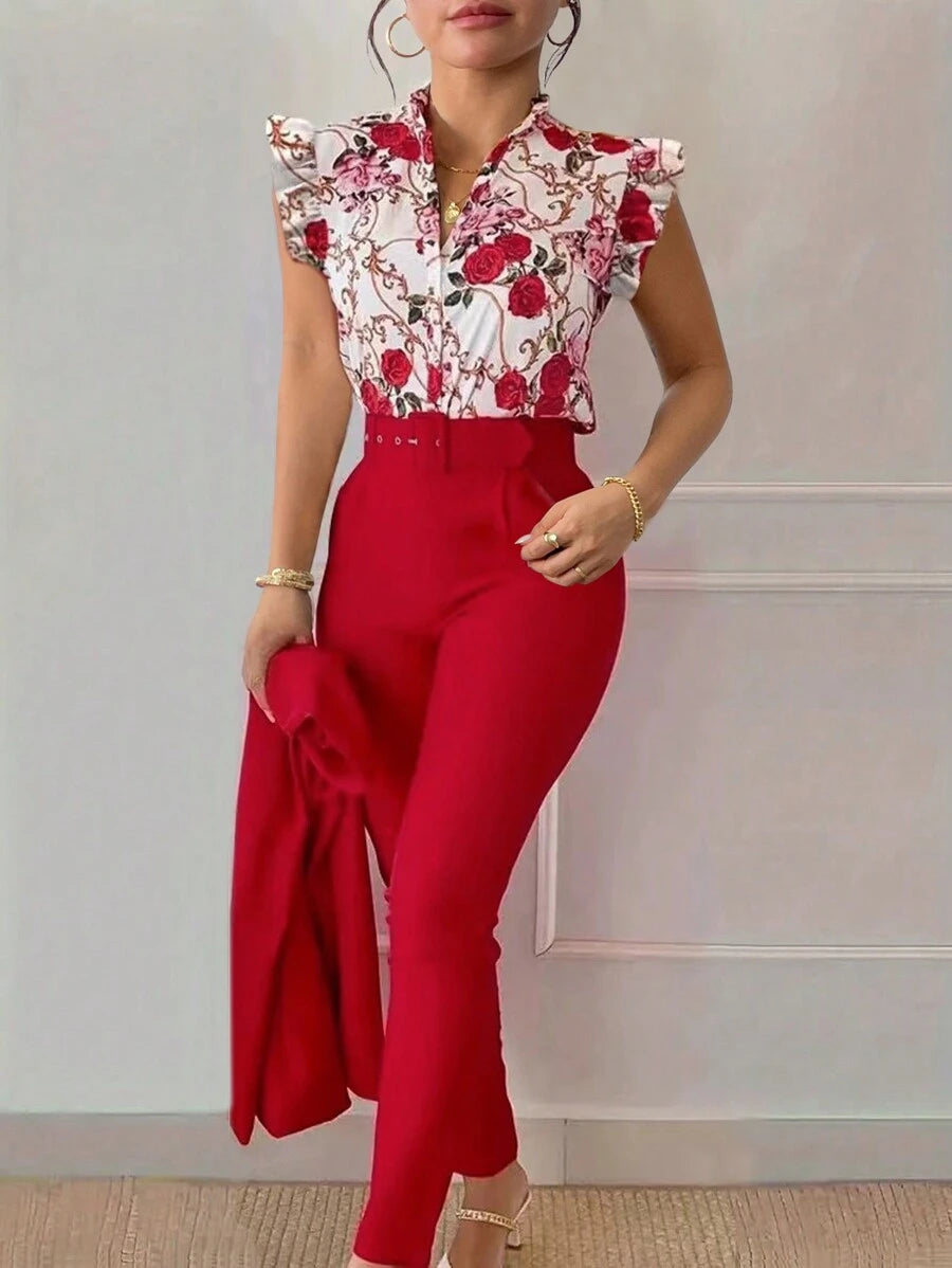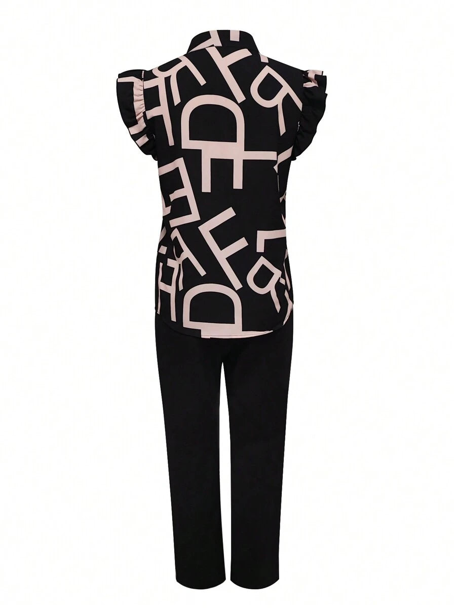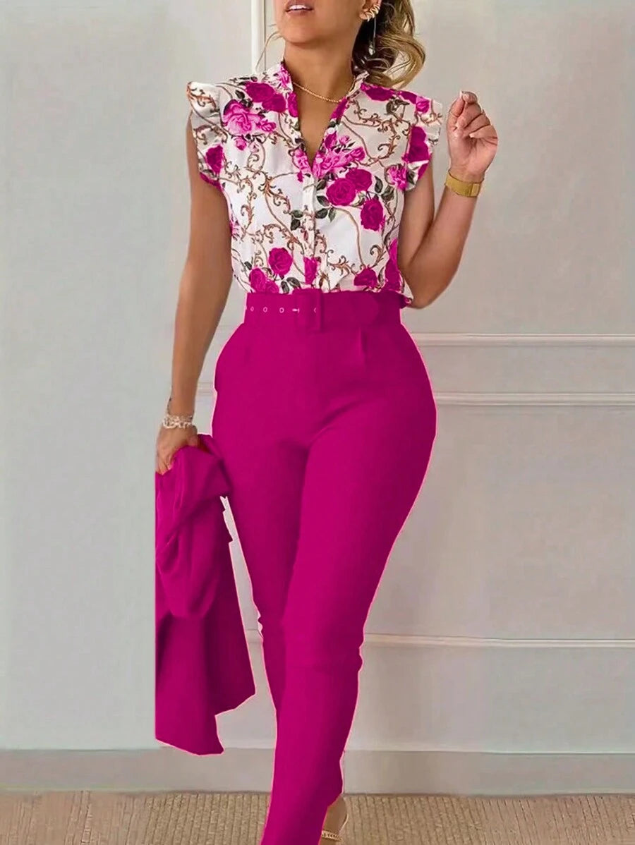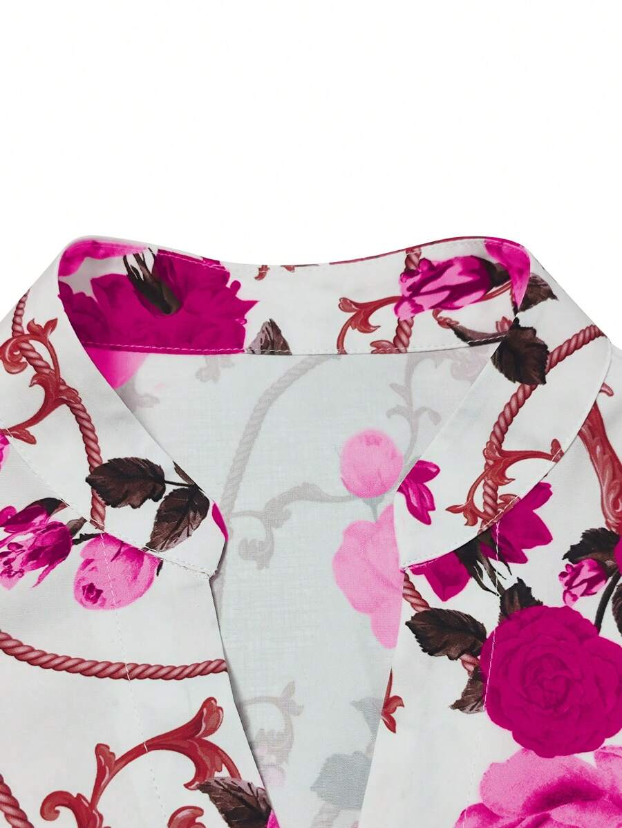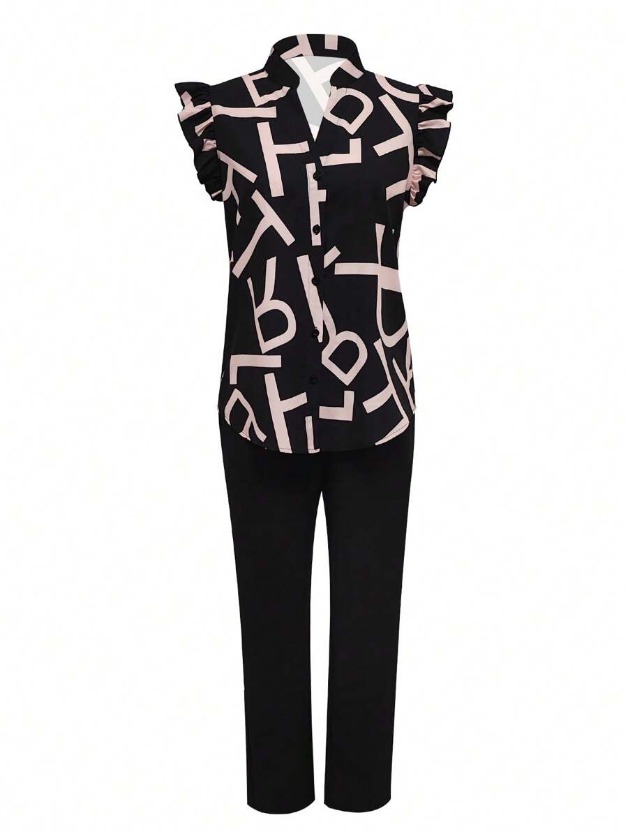 Xyvia conjunto de 2 piezas de top y pantalones impresos, de estilo casual y con botones, para mujer