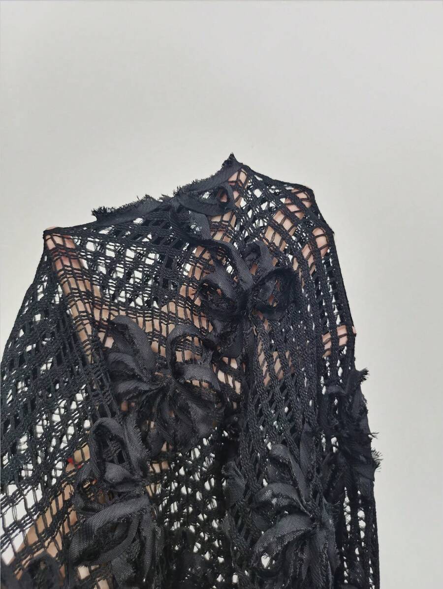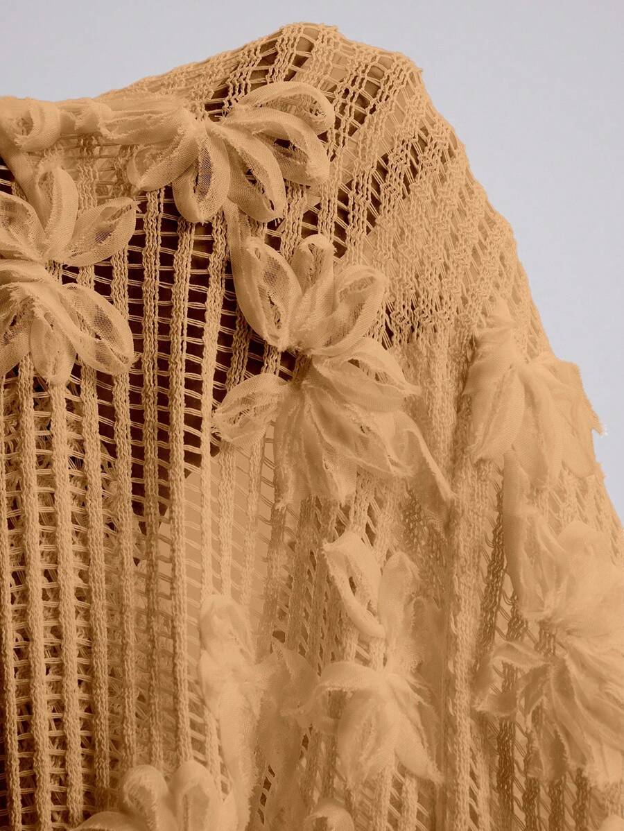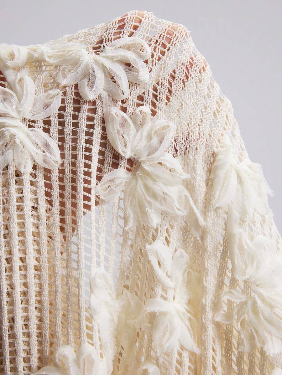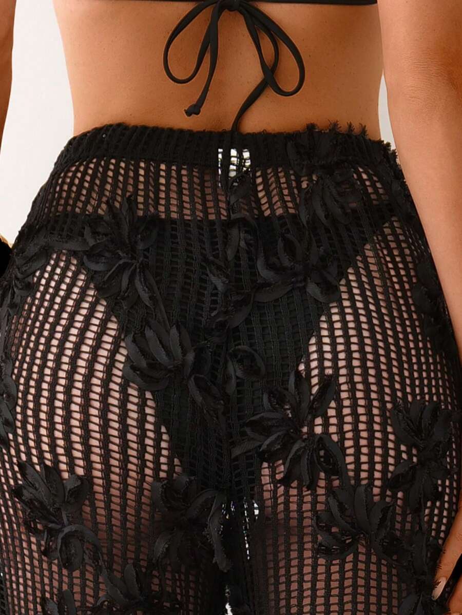 Atuendo de verano para mujeres, pantalones anchos y sueltos, tipo pareo para la playa, con diseno de malla calada y bordado floral