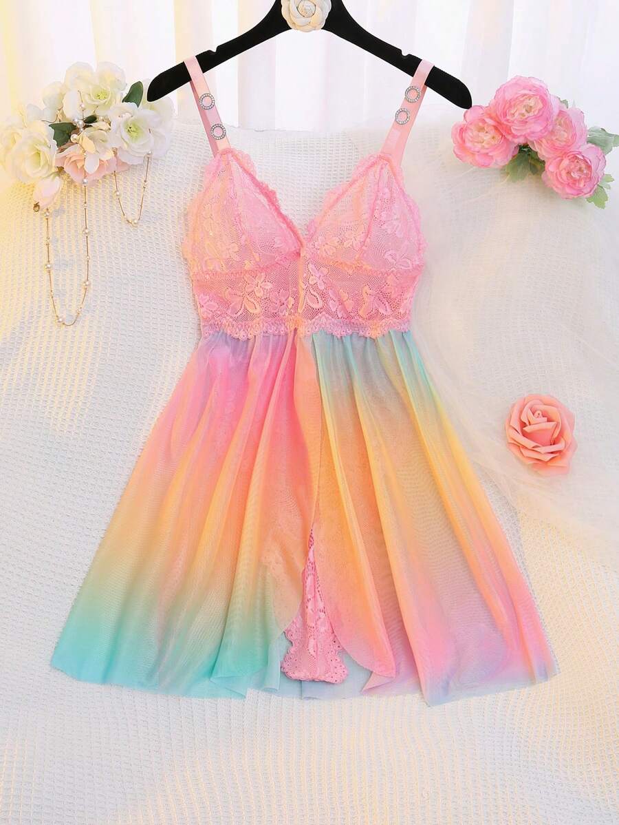 1 pieza bodyduit de encaje sexy y contraste de malla para tallas grandes