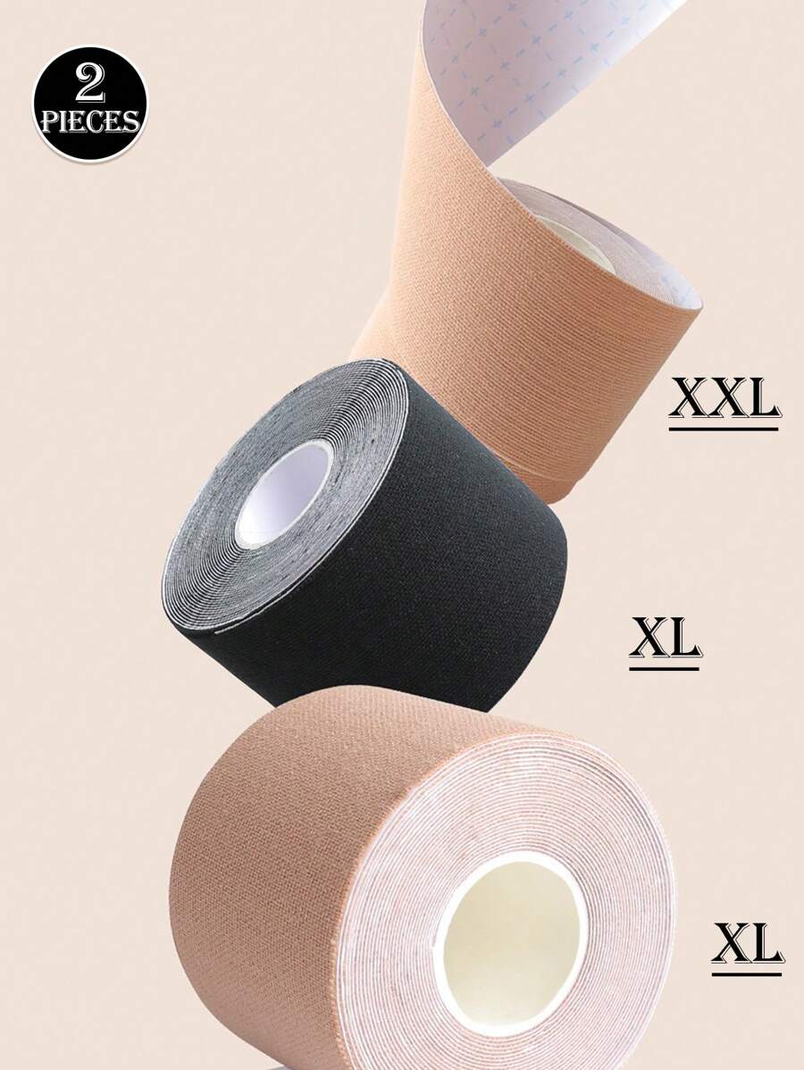 2 volumenes (precio anual mejor) vendaje adhesivo autoadhesivo desechable invisible y sin rastro para levantar el pecho, (caqui/negro) que se puede cortar a medida, cinta invisible para levantar el pecho, cinta elastica universal de talla a-f