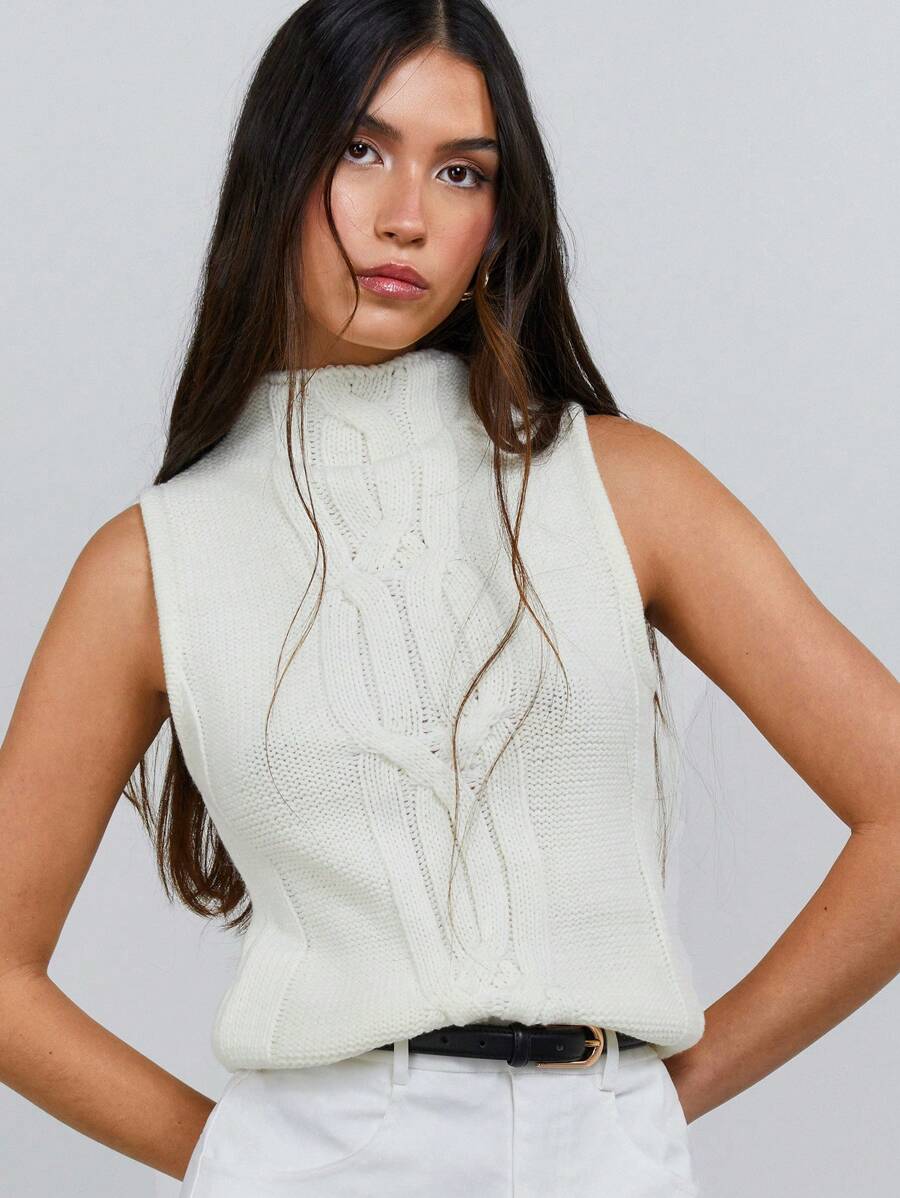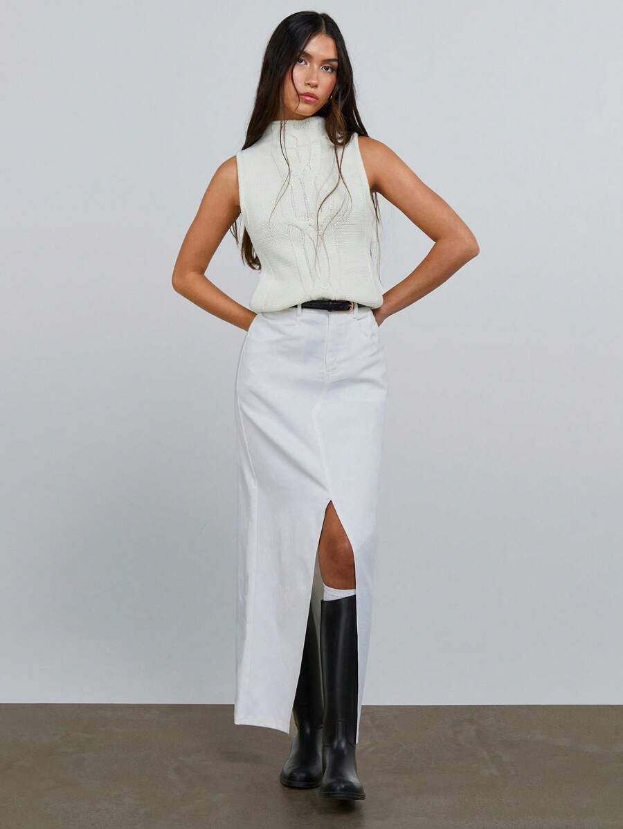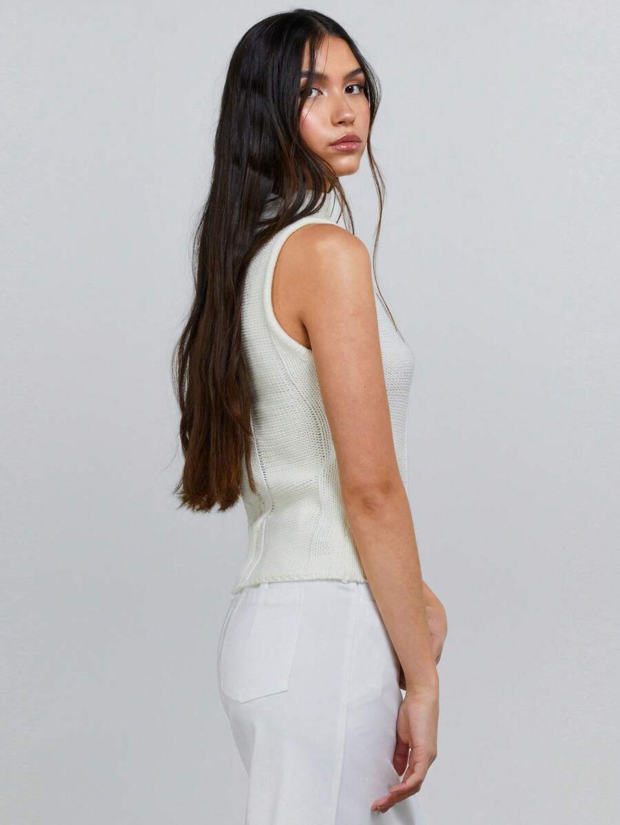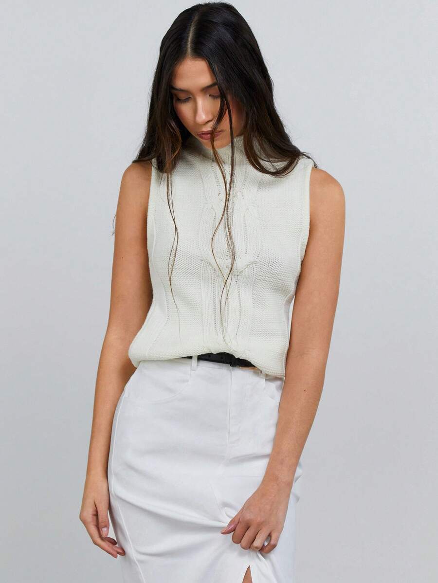 Athiral elegante chaleco de punto de color liso de cuello alto sin mangas para damas