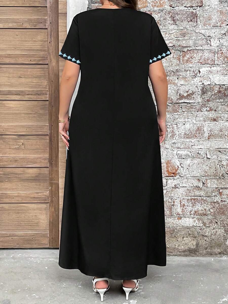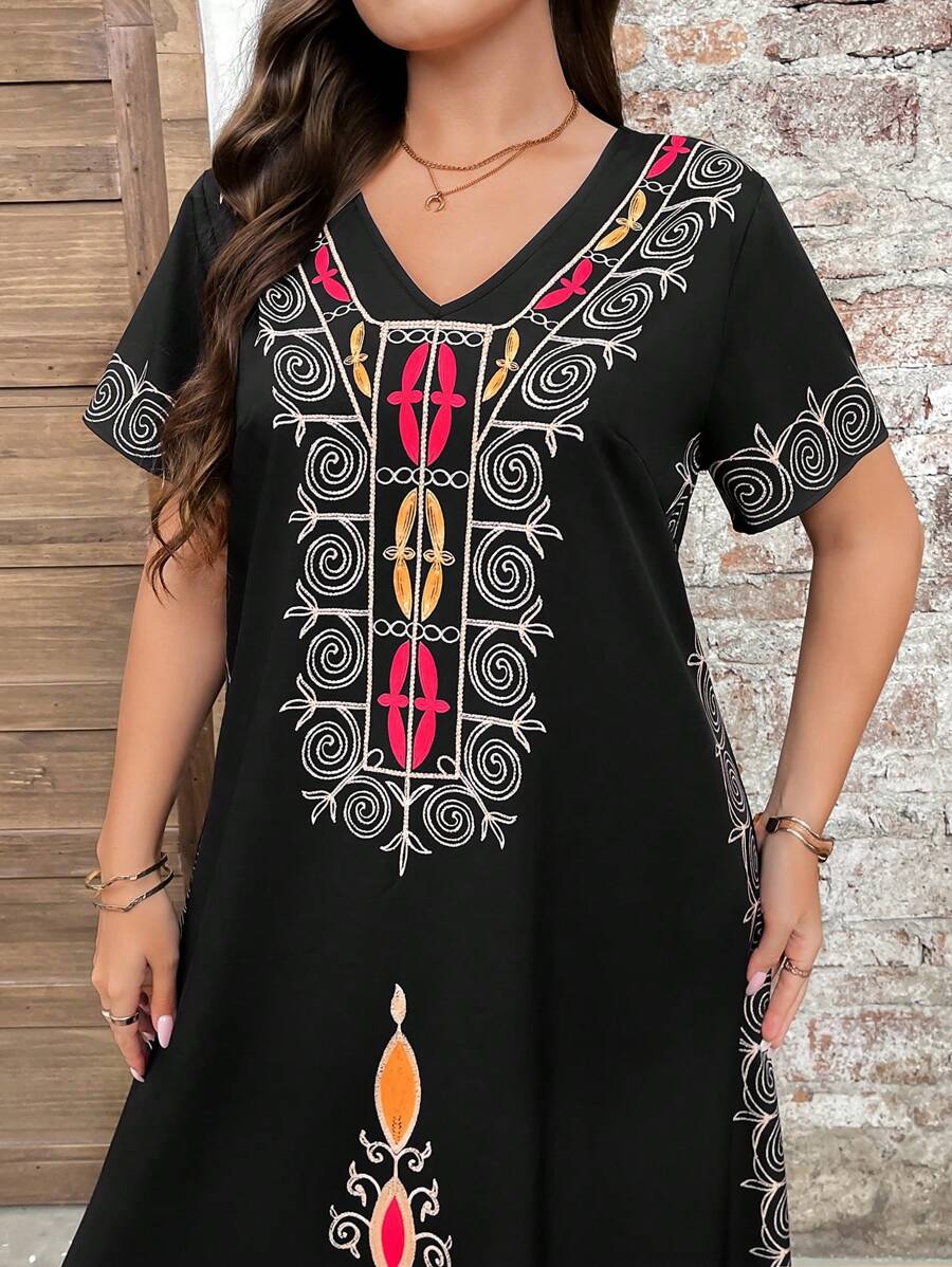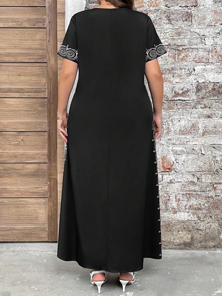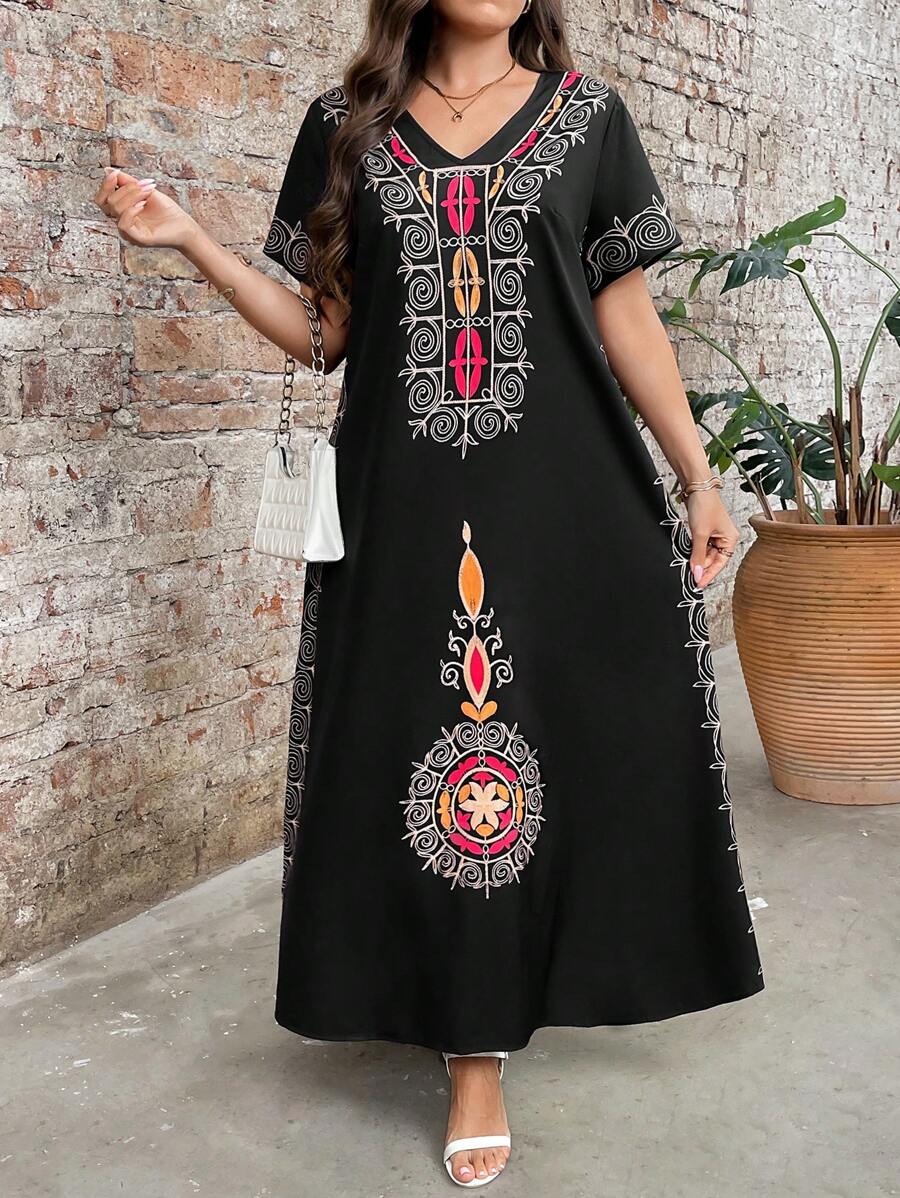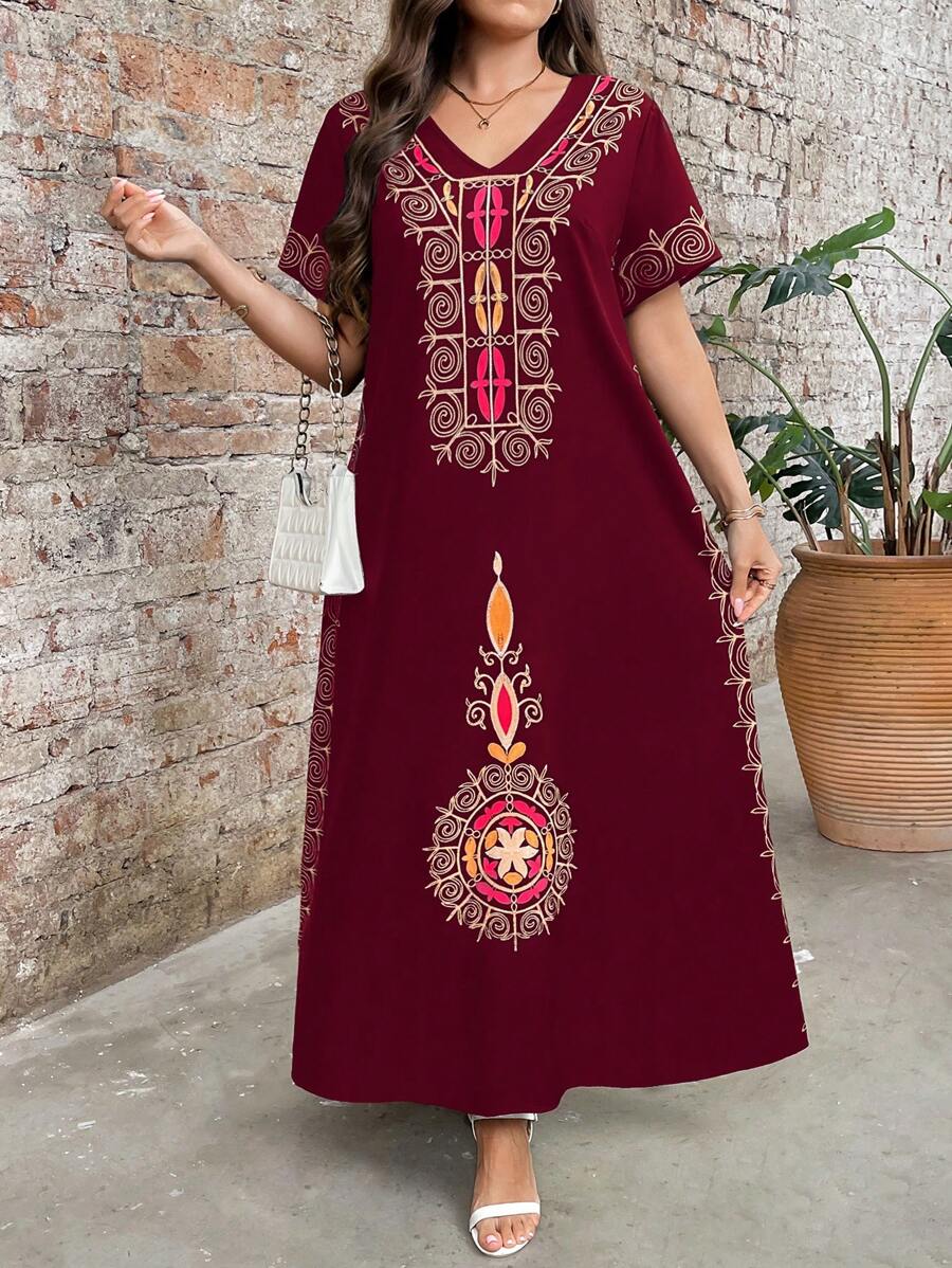 Vestido de manga corta con cuello redondo y estampado floral para mujeres de talla grande, elegante y adecuado para el uso diario