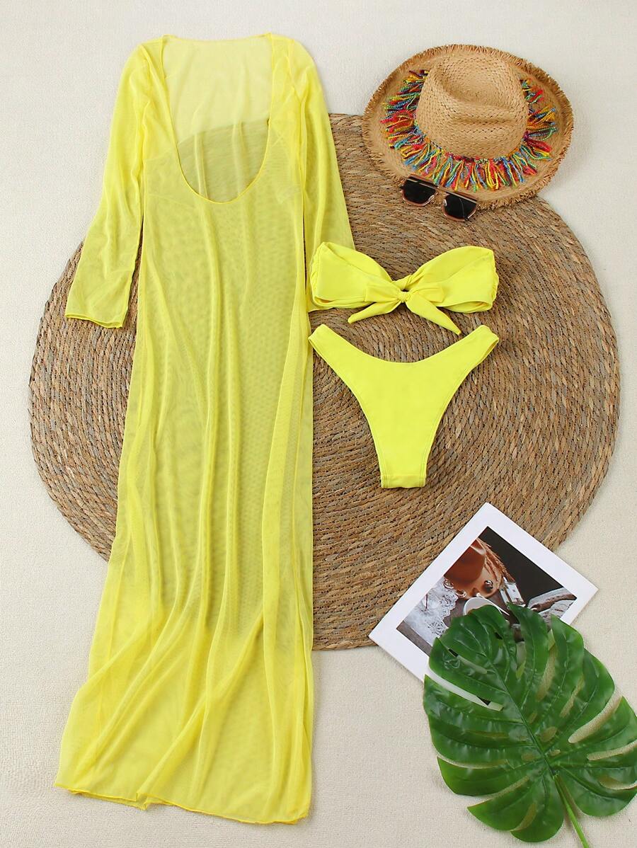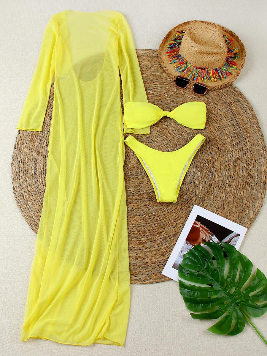 Conjunto de bikini solido y sexy de 3 piezas para mujer, estilo europeo y americano