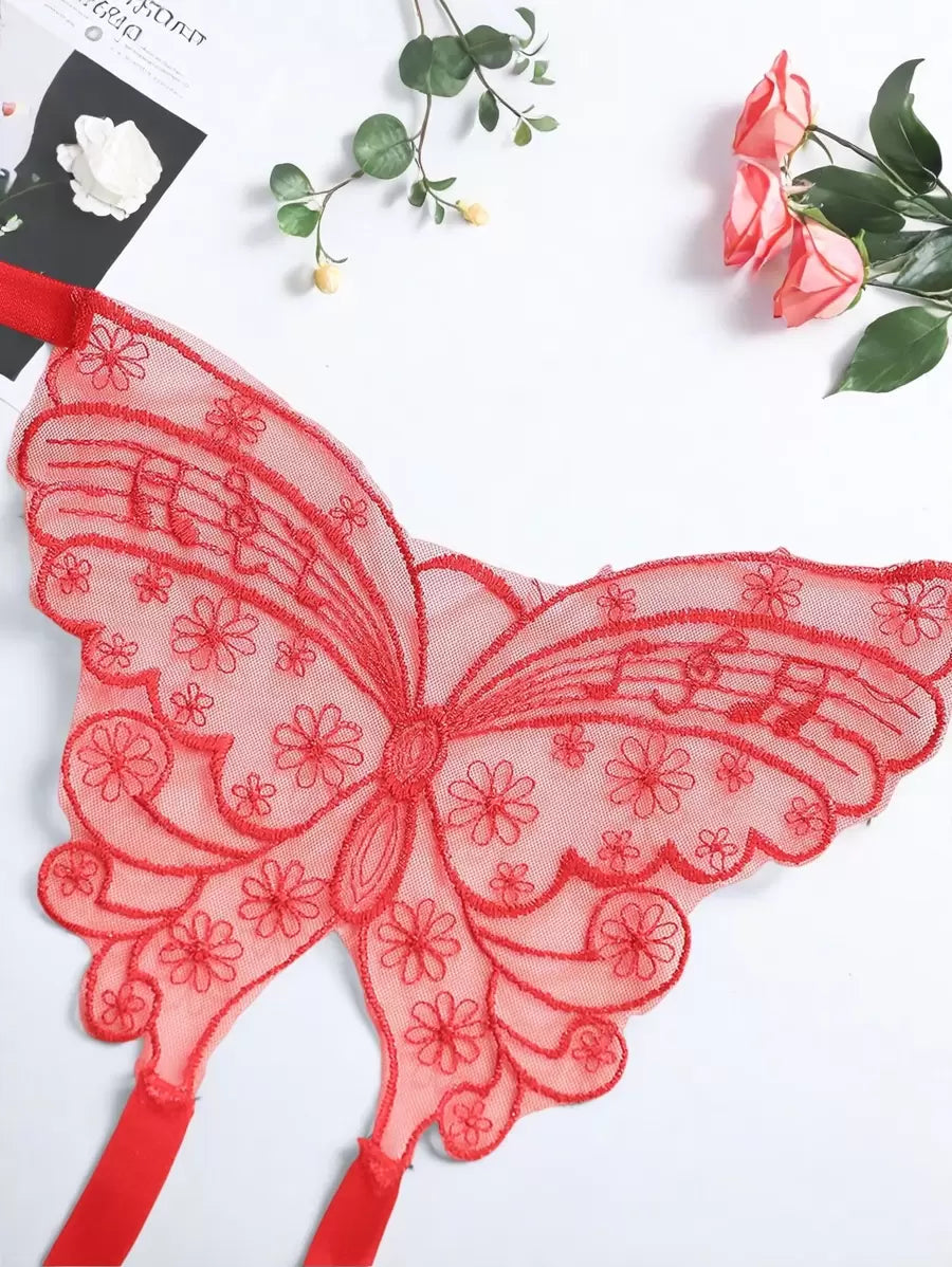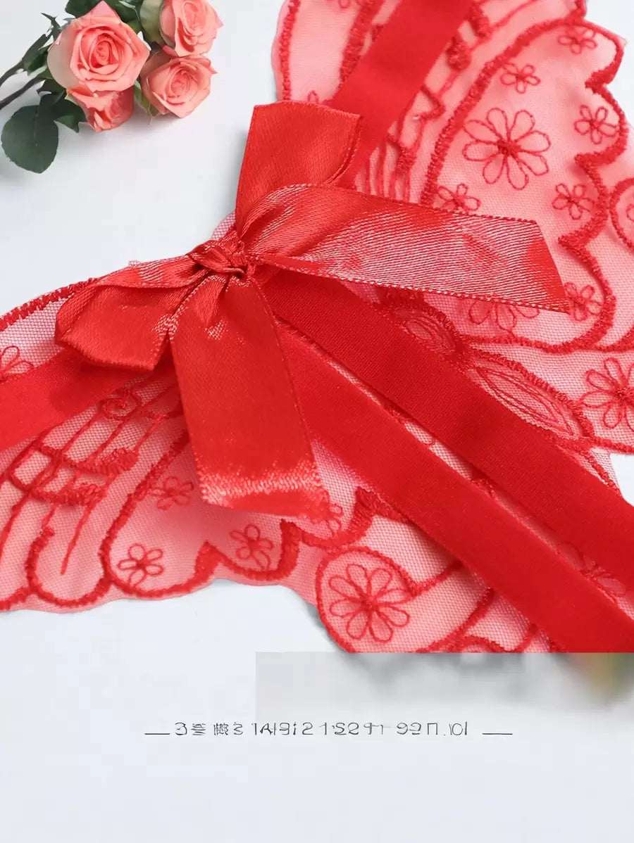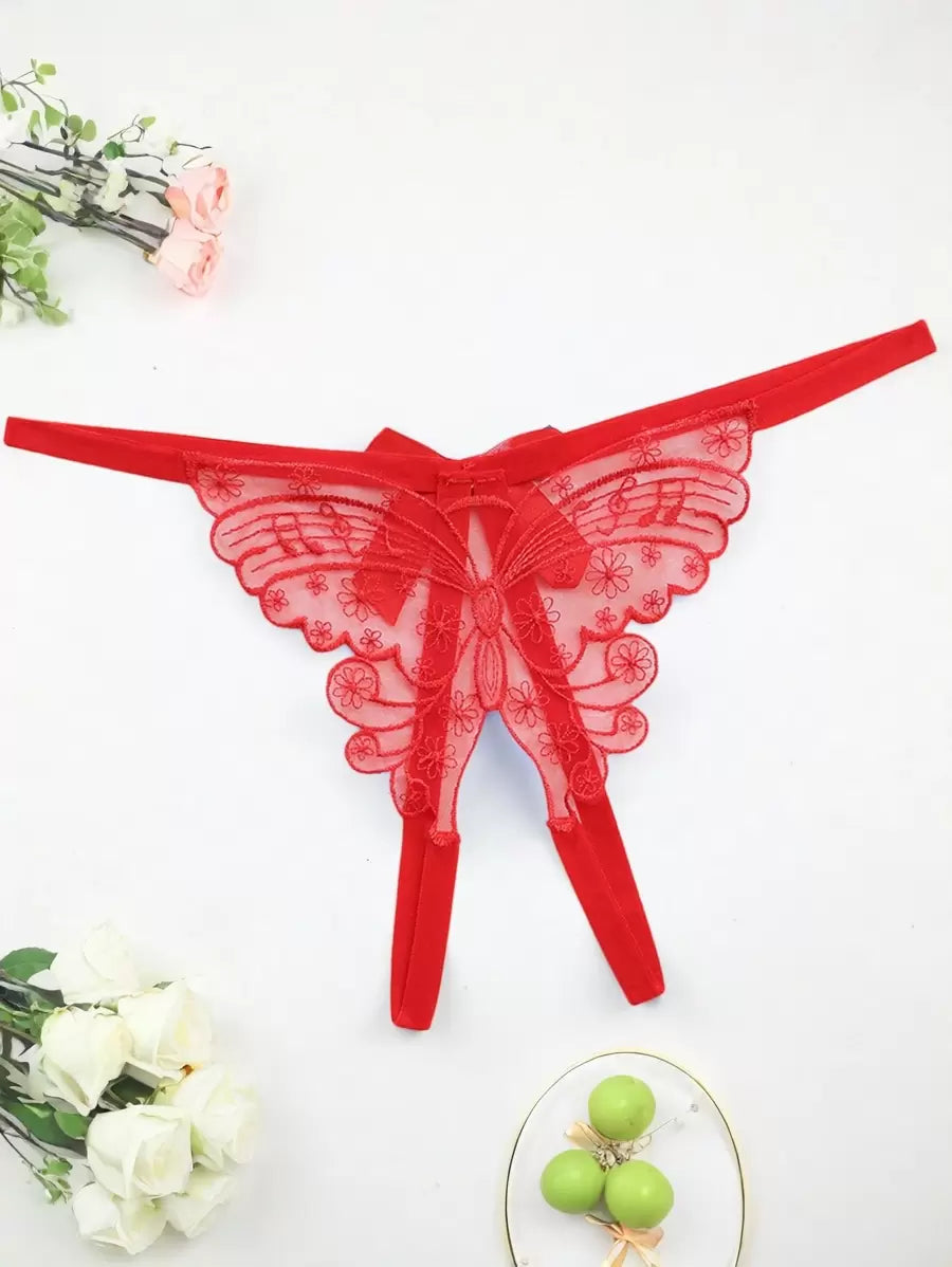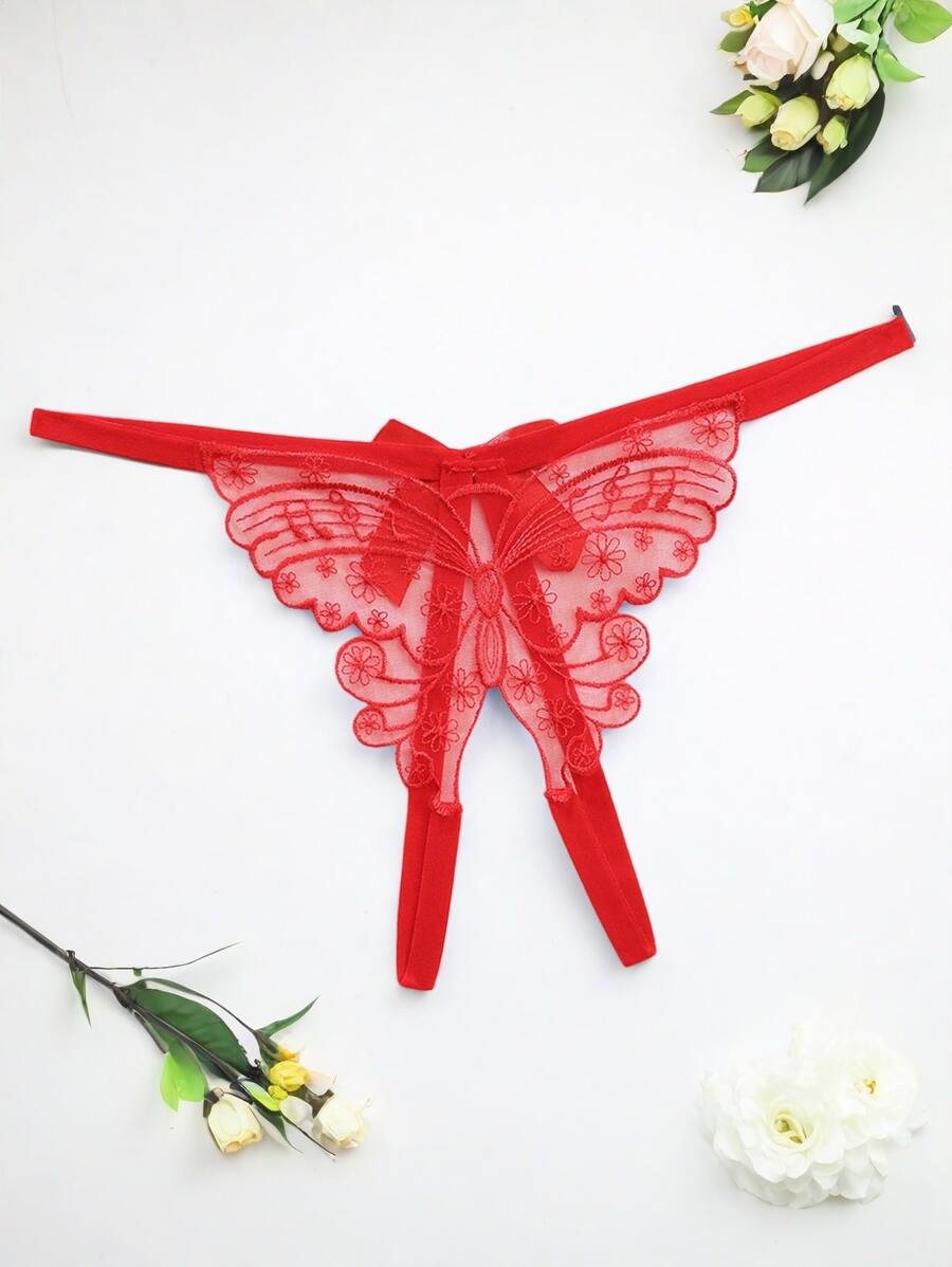Ropa interior sexy con mariposa bordada transparente, bragas de tiro bajo con abertura en la entrepierna y lazo, tanga de encaje, tentadora para salir