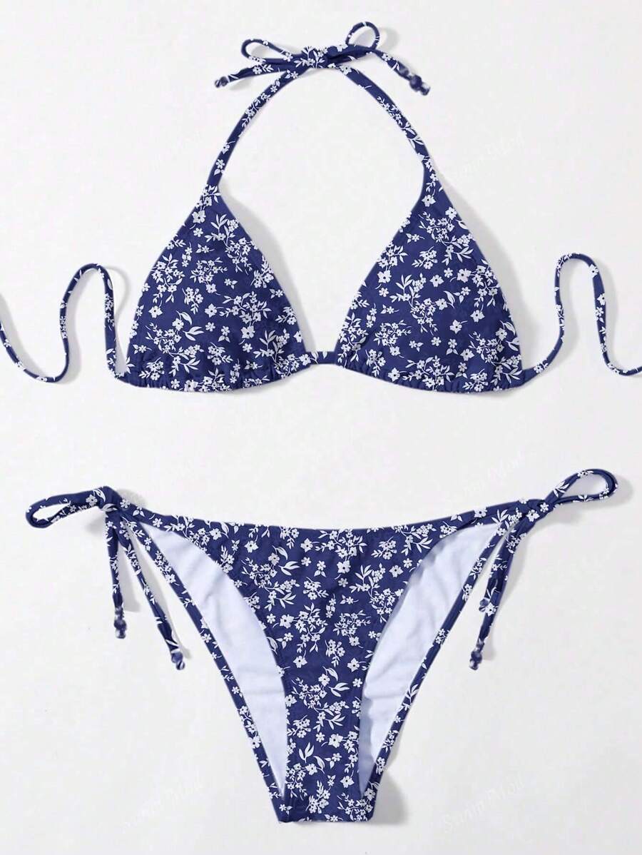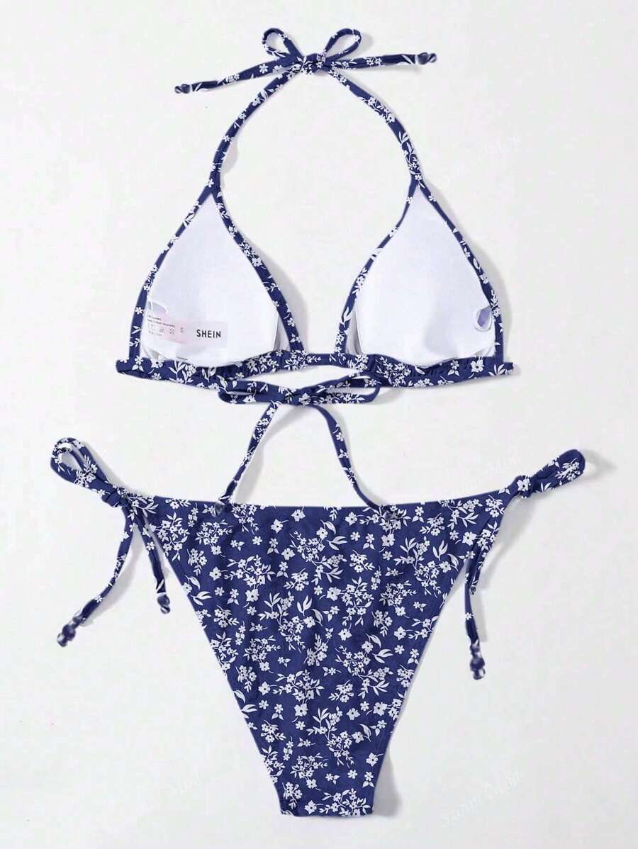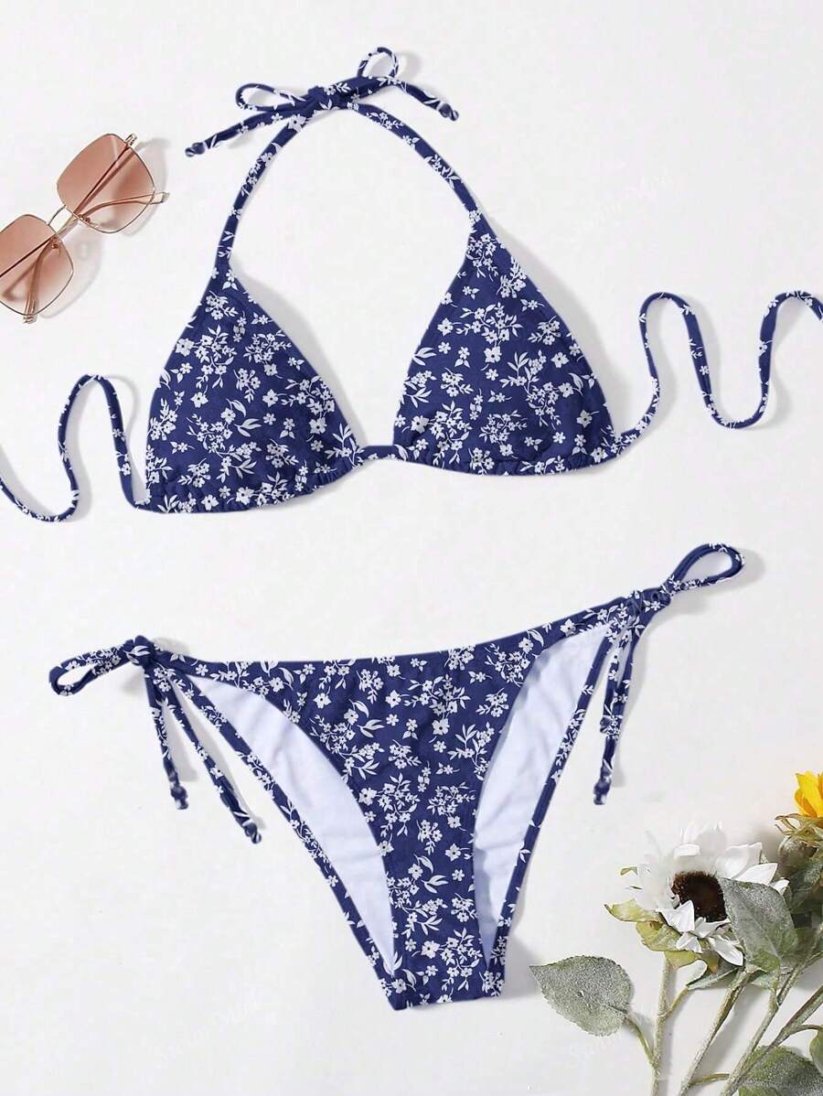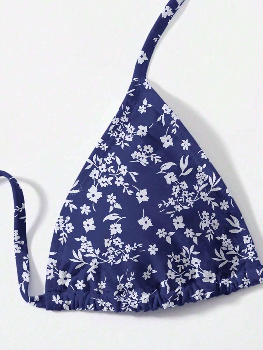 Vestido de bano bikini floral triangulo con cordon lateral