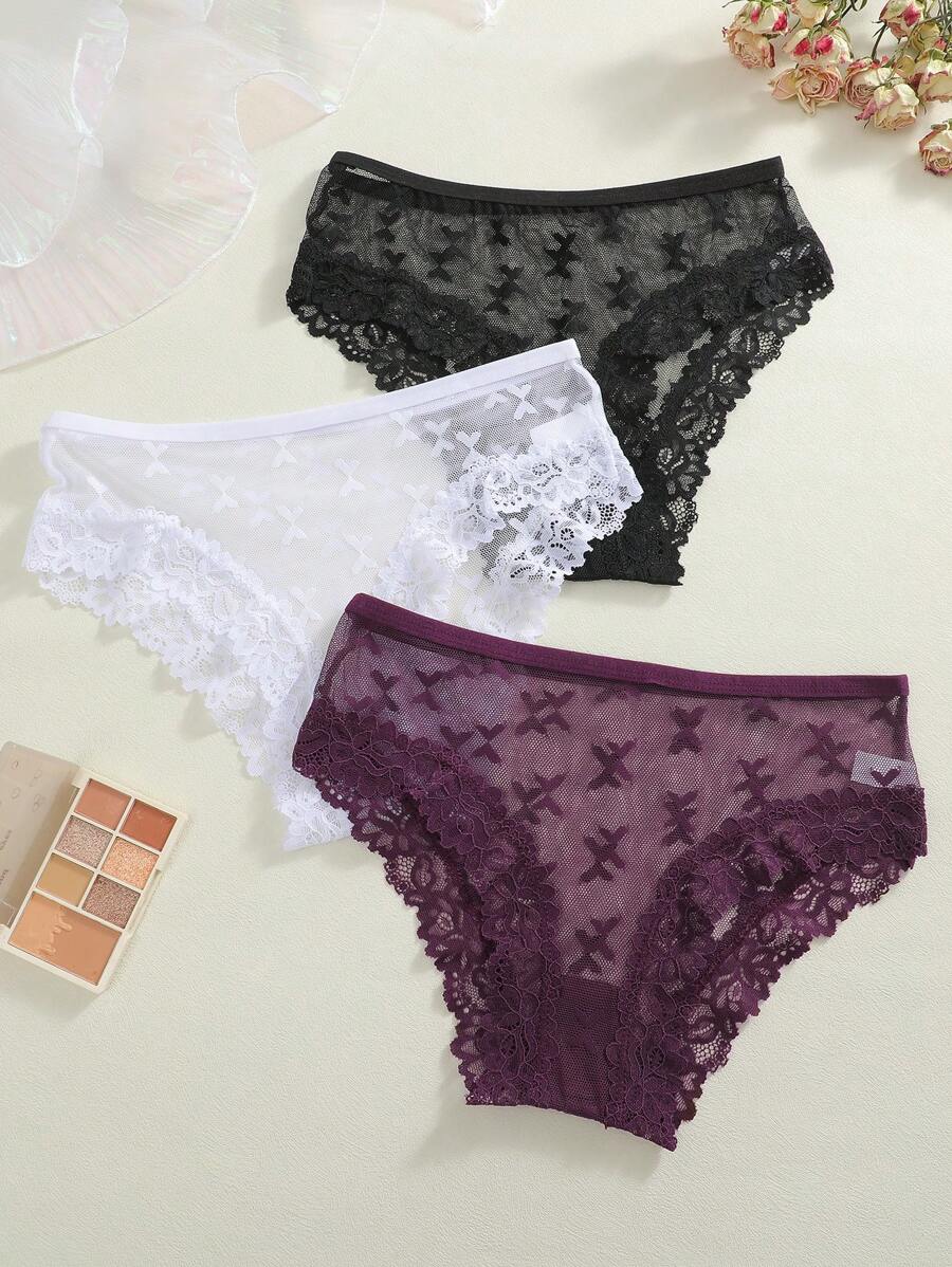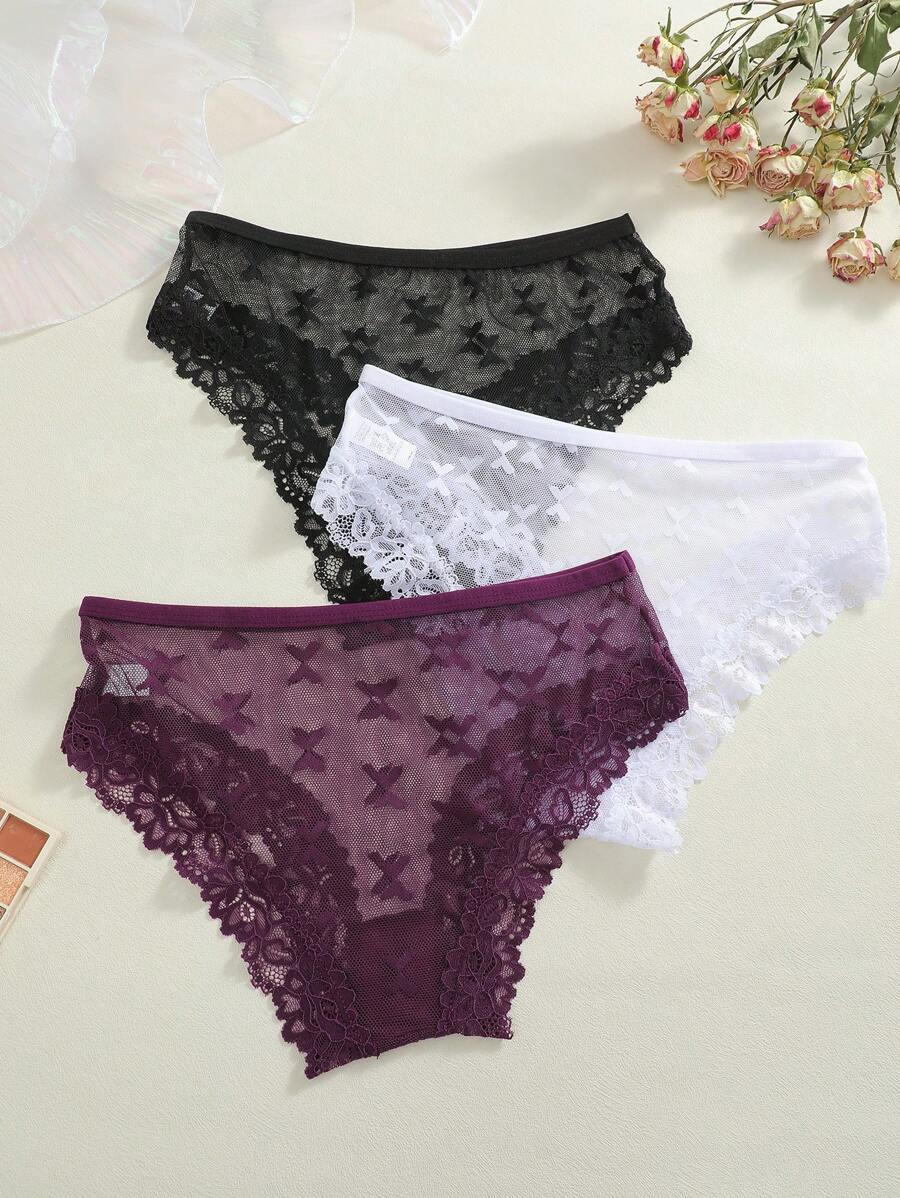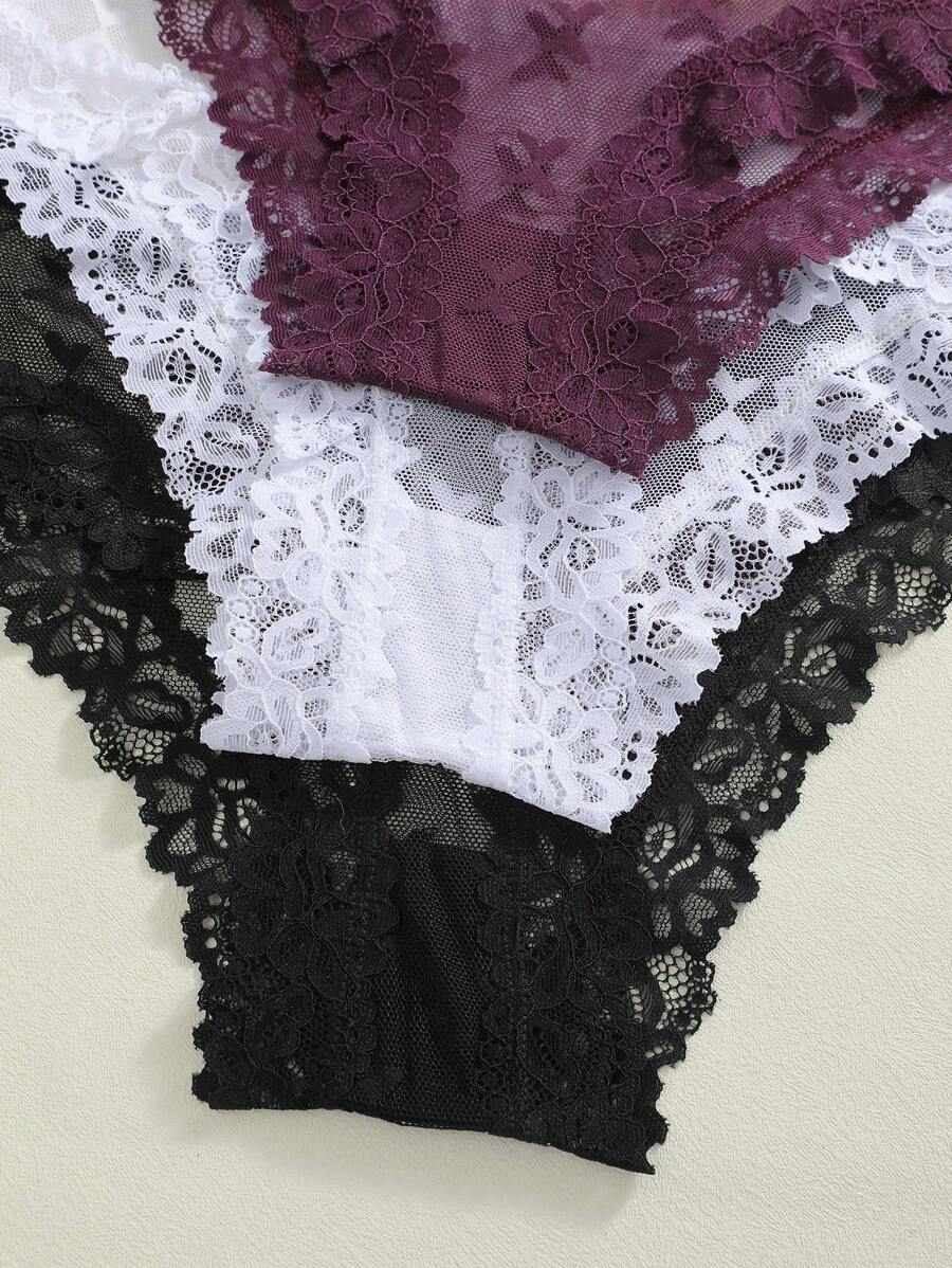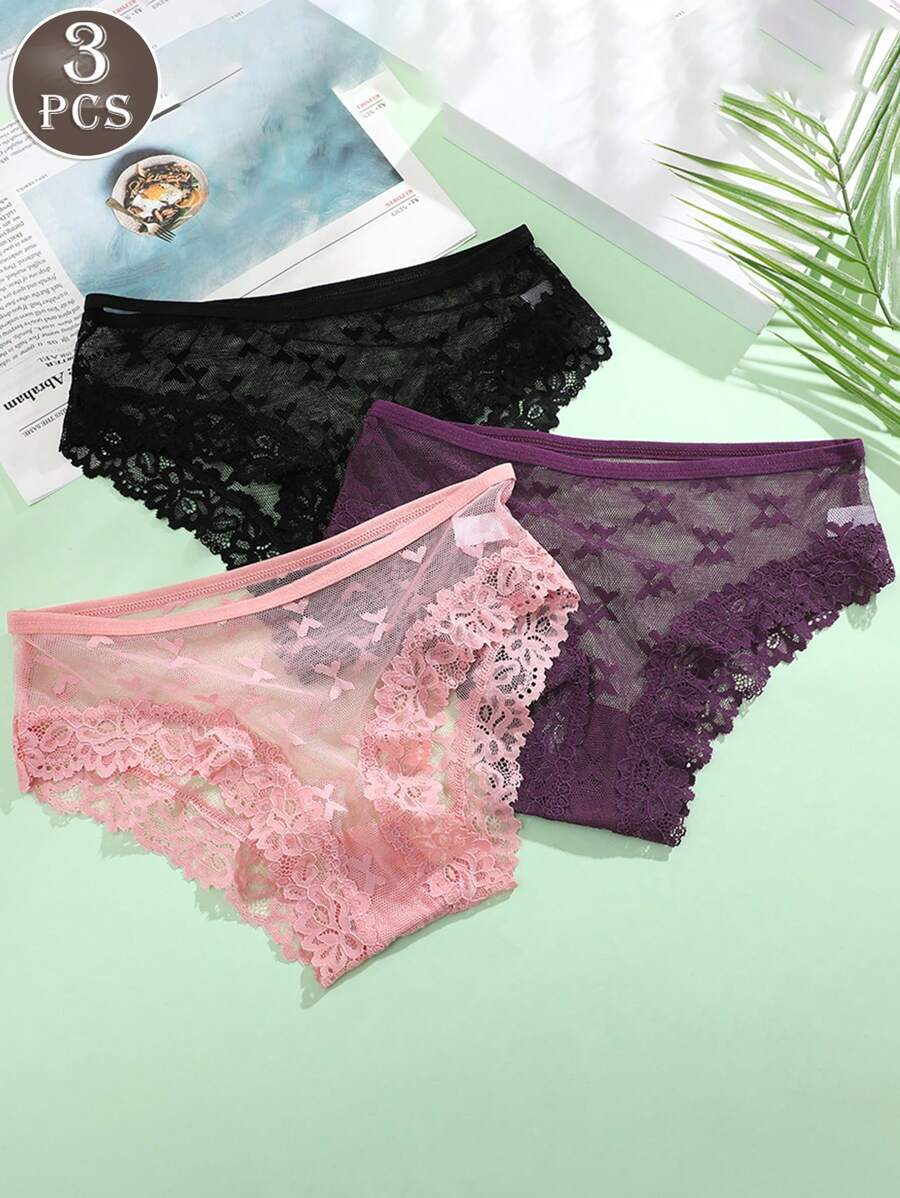 3 pares de bragas sexy y comodas de mujer con diseno de encaje, estampado de mariposas y flores, y cintura baja