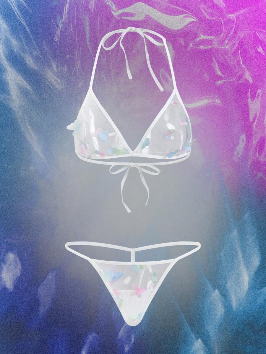 Altcore conjunto de lenceria de 2 piezas compuesto por un sosten tipo triangulo con mariposas 3d en colores de festival de musica y una panty, ropa interior sexy tipo dopamina degradado y2k para mujeres