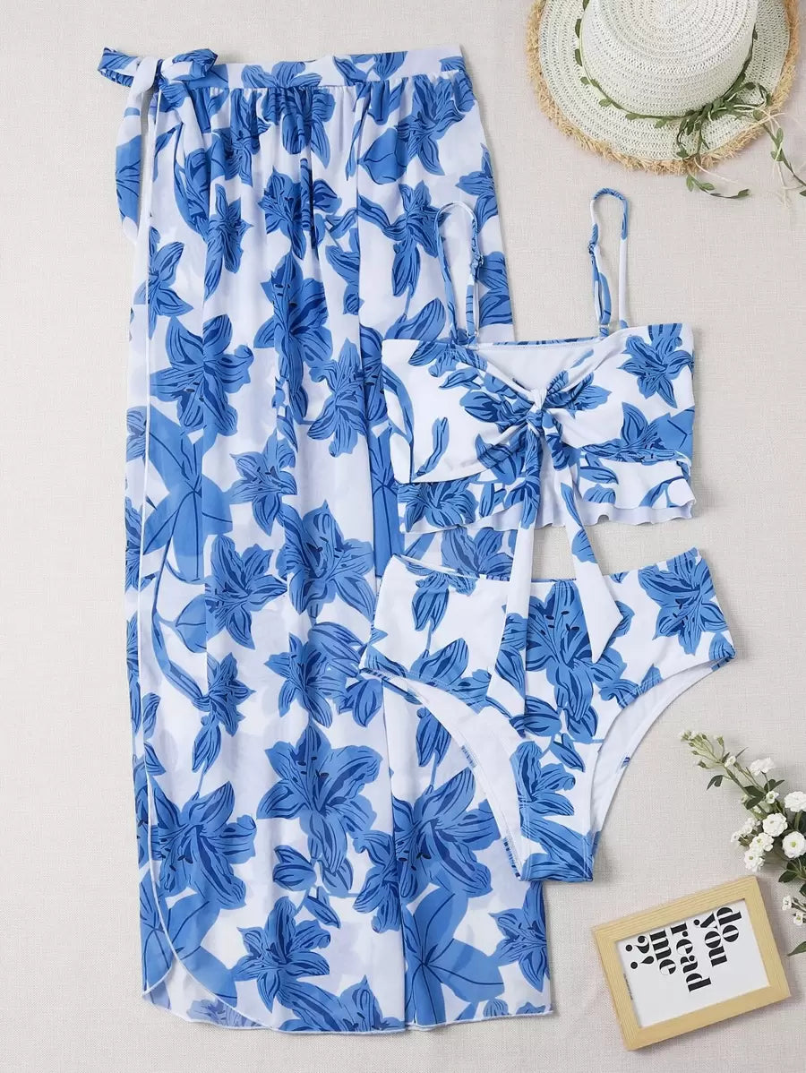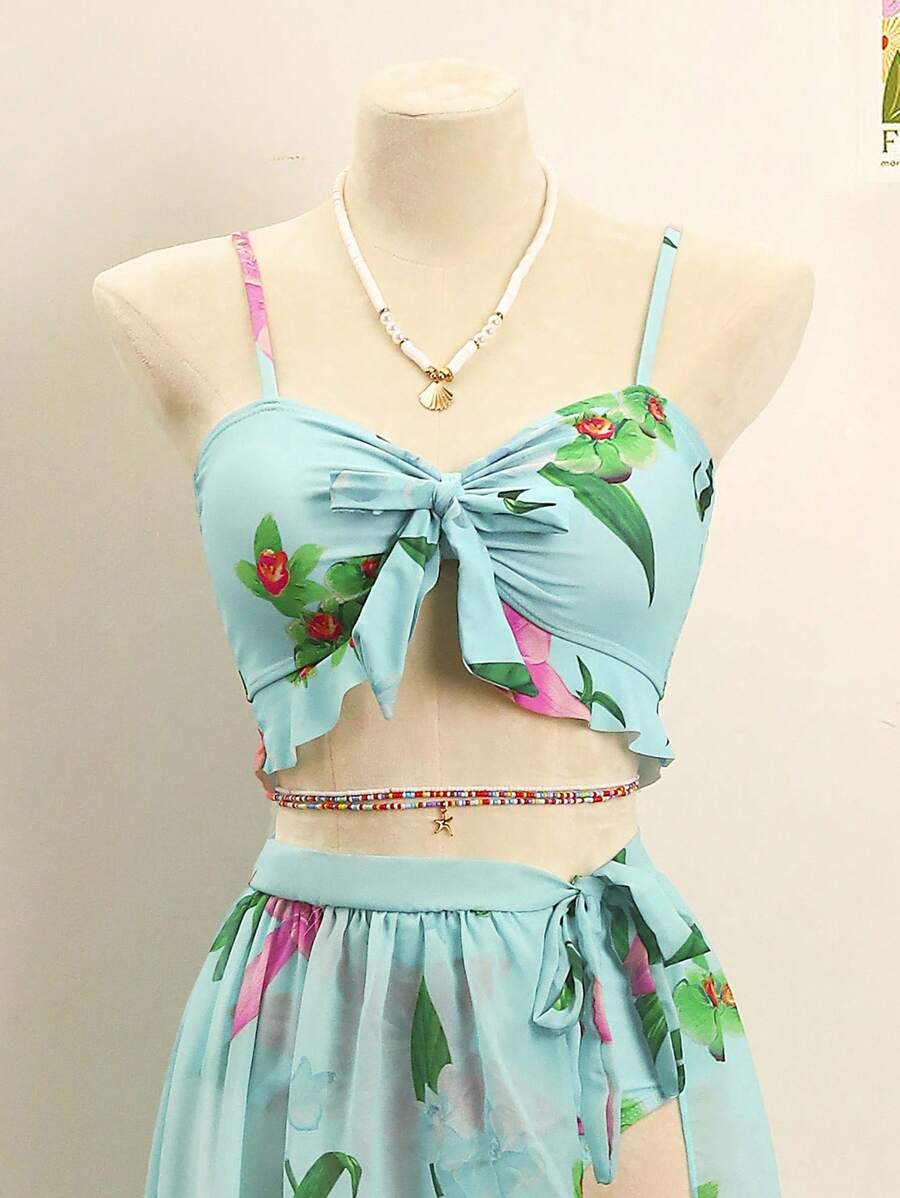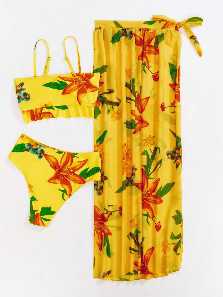3 paquetes de trajes de bano para mujer de verano - conjunto de bikini con estampado floral y volantes + conjunto de bikini para playa