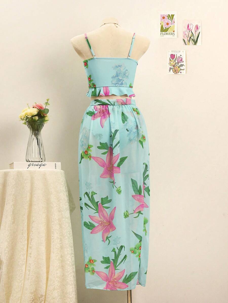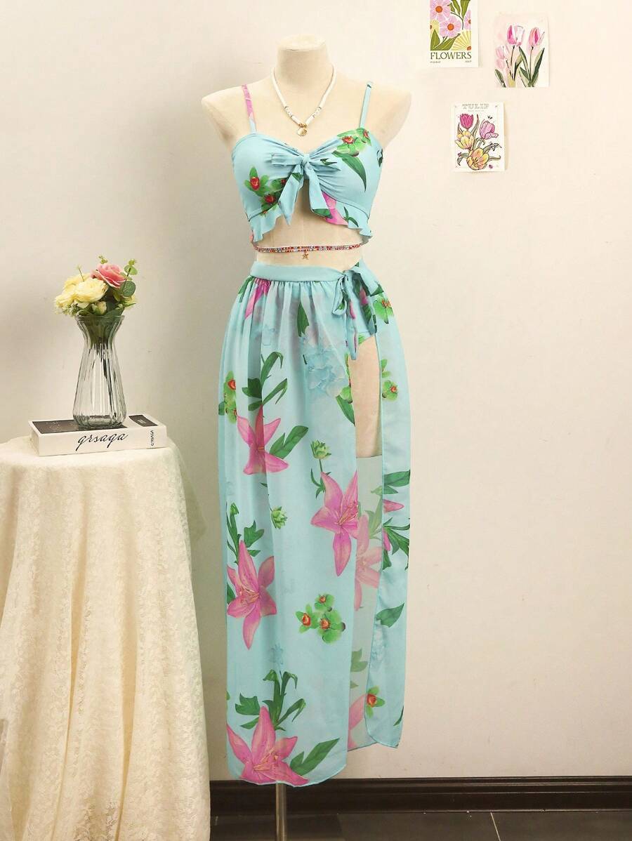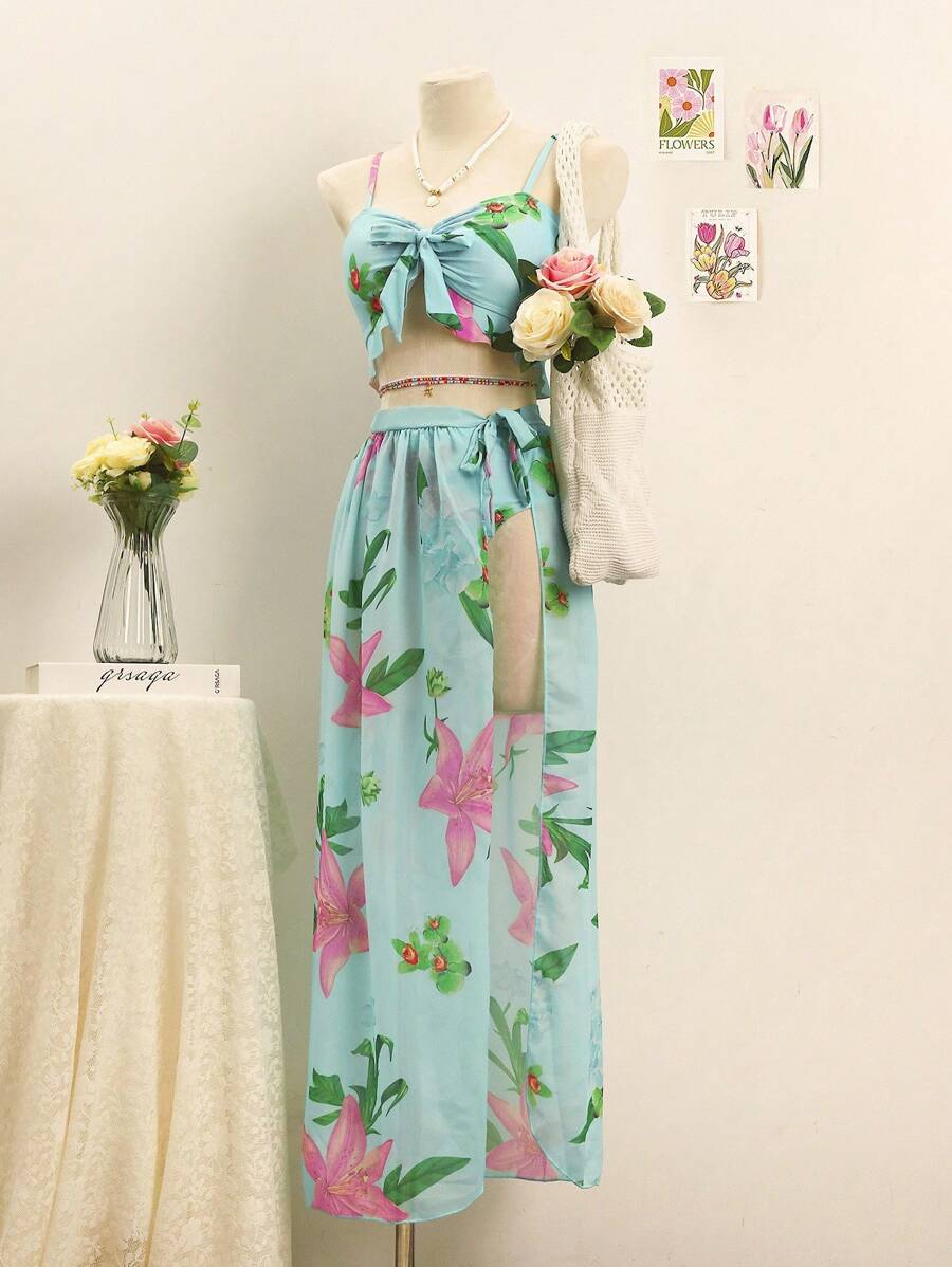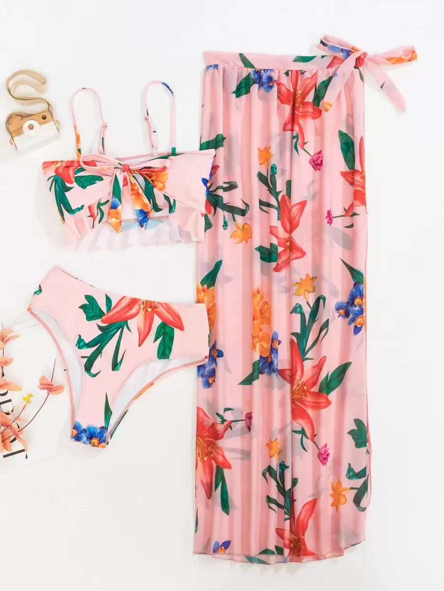 3 paquetes de trajes de bano para mujer de verano - conjunto de bikini con estampado floral y volantes + conjunto de bikini para playa