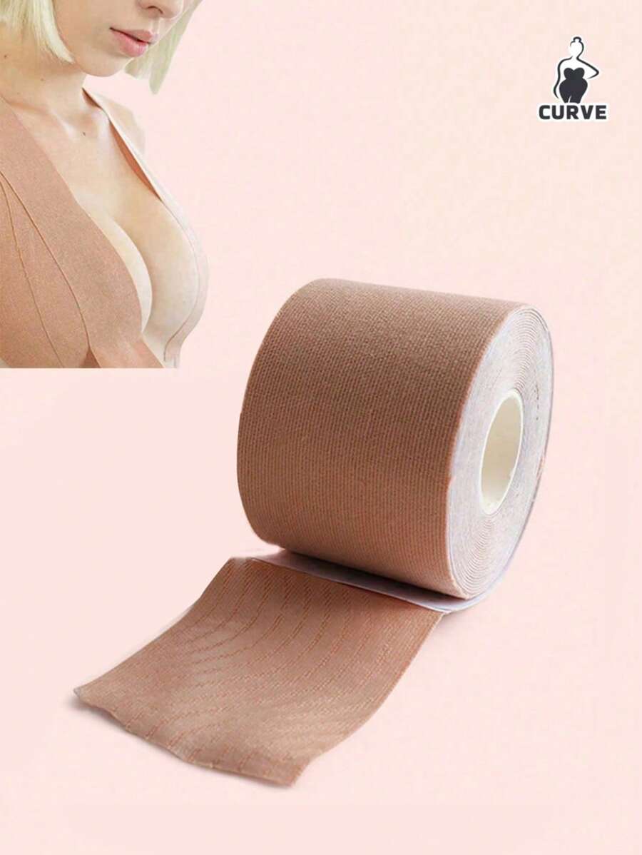 1 rollo de 5 cm de ancho de cinta para escote, transpirable, anti-protrusion de pezones, levantadora, anti-flacidez, cinta elastica para levantar el pecho