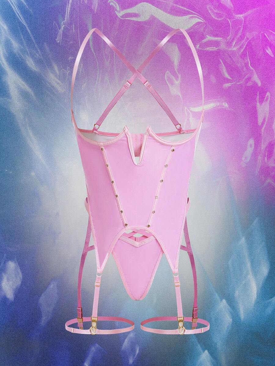 Altcore conjunto de 3 piezas: sosten con parche + tanga + cadena para la pierna de estilo punk sexy y2k con decoracion de cristal y efecto calado en piel sintetica para mujer, atuendo de lenceria para festivales de musica y fiestas