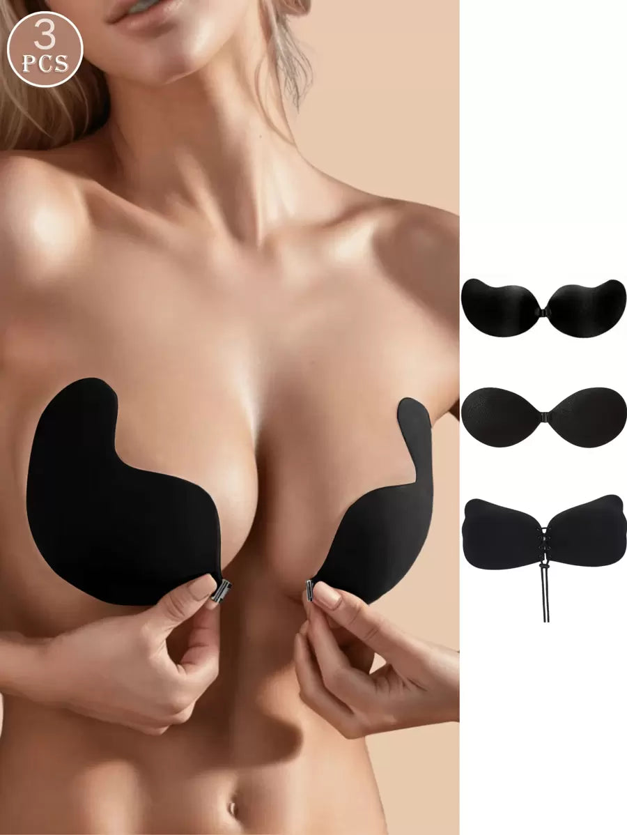 3 pares de brasieres adhesivos push up, pezoneras invisibles reutilizables con broche delantero sin tirantes, ropa interior y accesorios de lenceria para mujeres