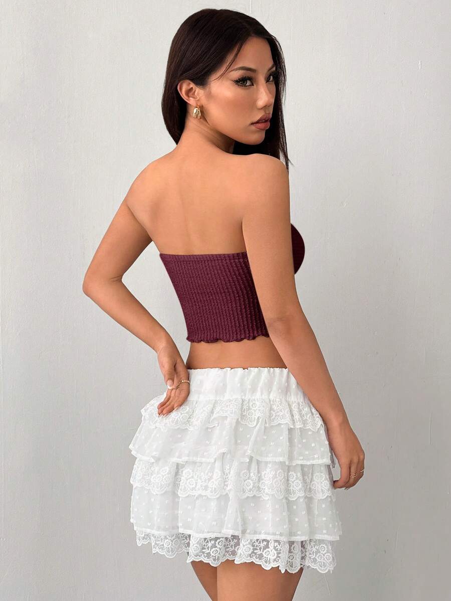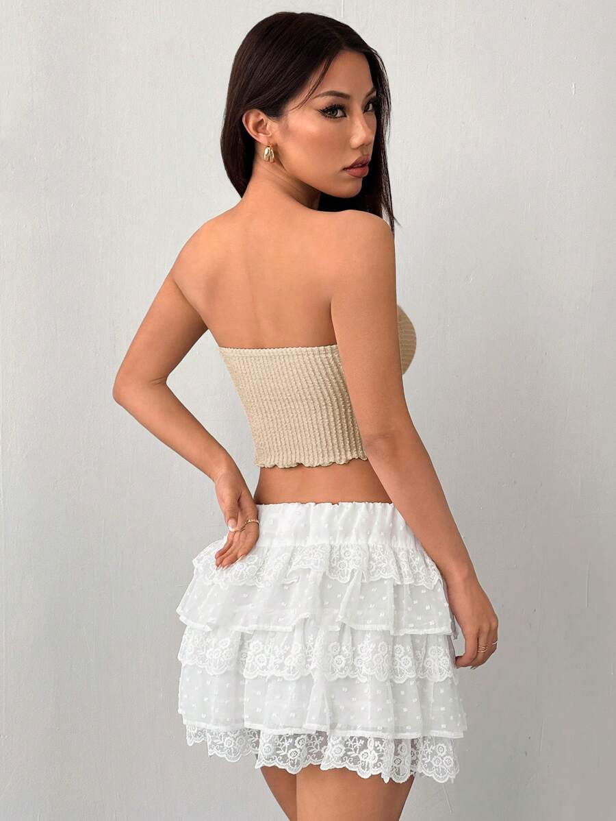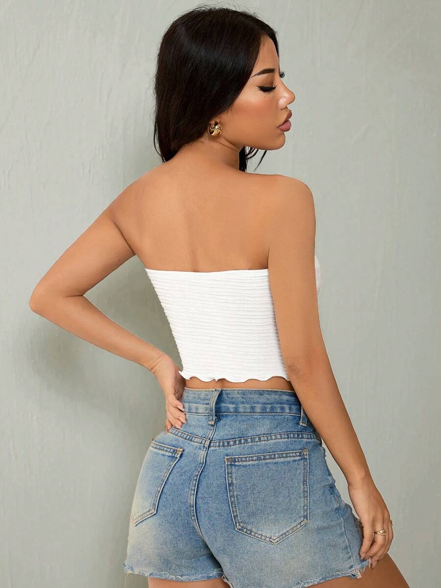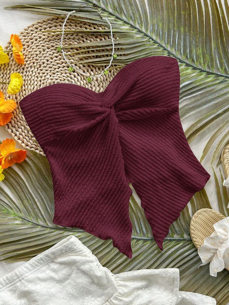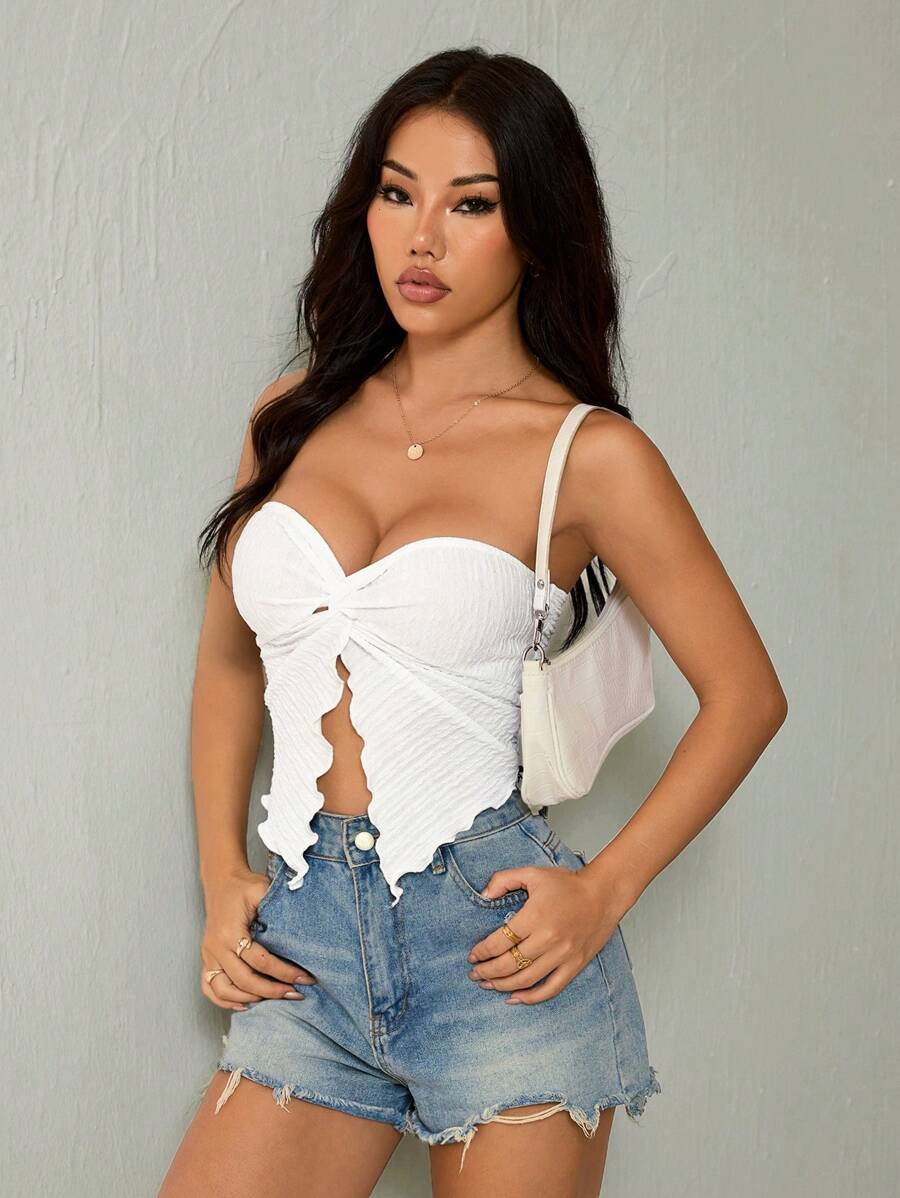 Chaleco de mujer de vacaciones con parte superior de tubo tejida con textura en color albaricoque y bajo asimetrico retorcido