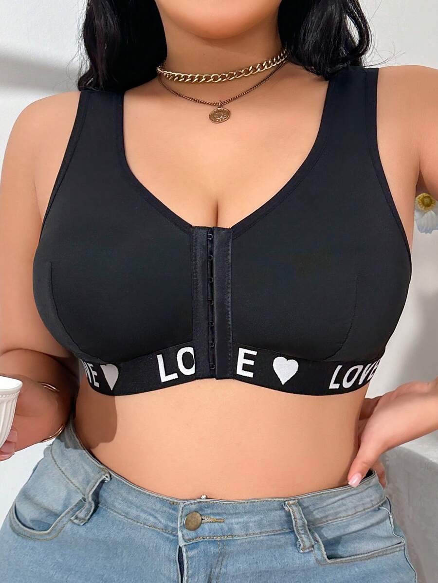 Brasier de lenceria informal con cierre de botones delantero, de unicolor y sin aros, en tallas grandes
