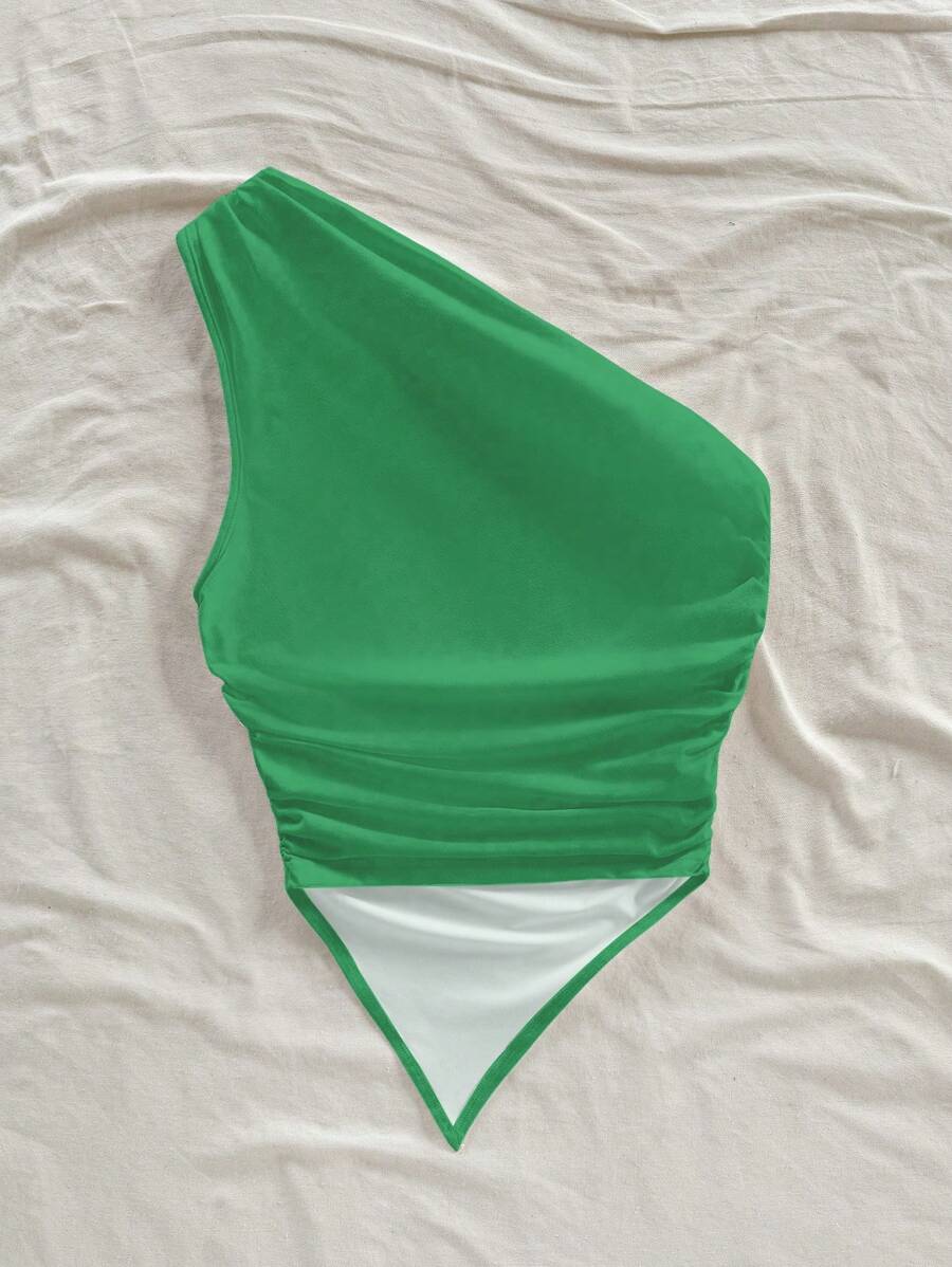 Blusa casual asimetrica con hombros descubiertos en color verde, adecuada para el verano