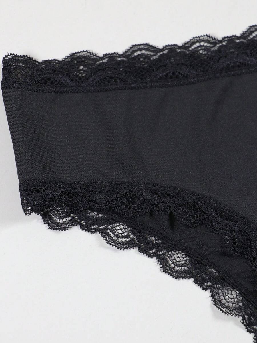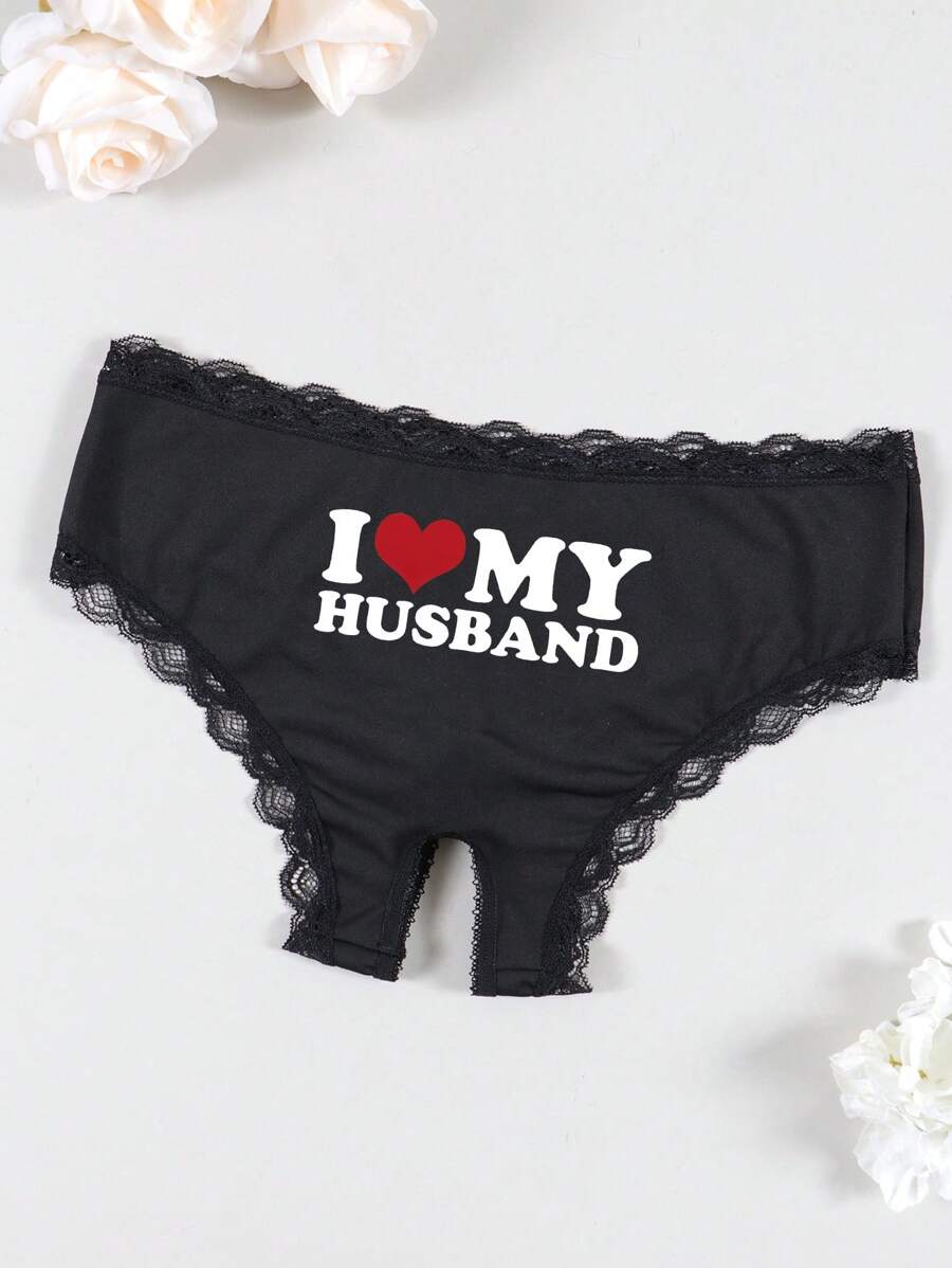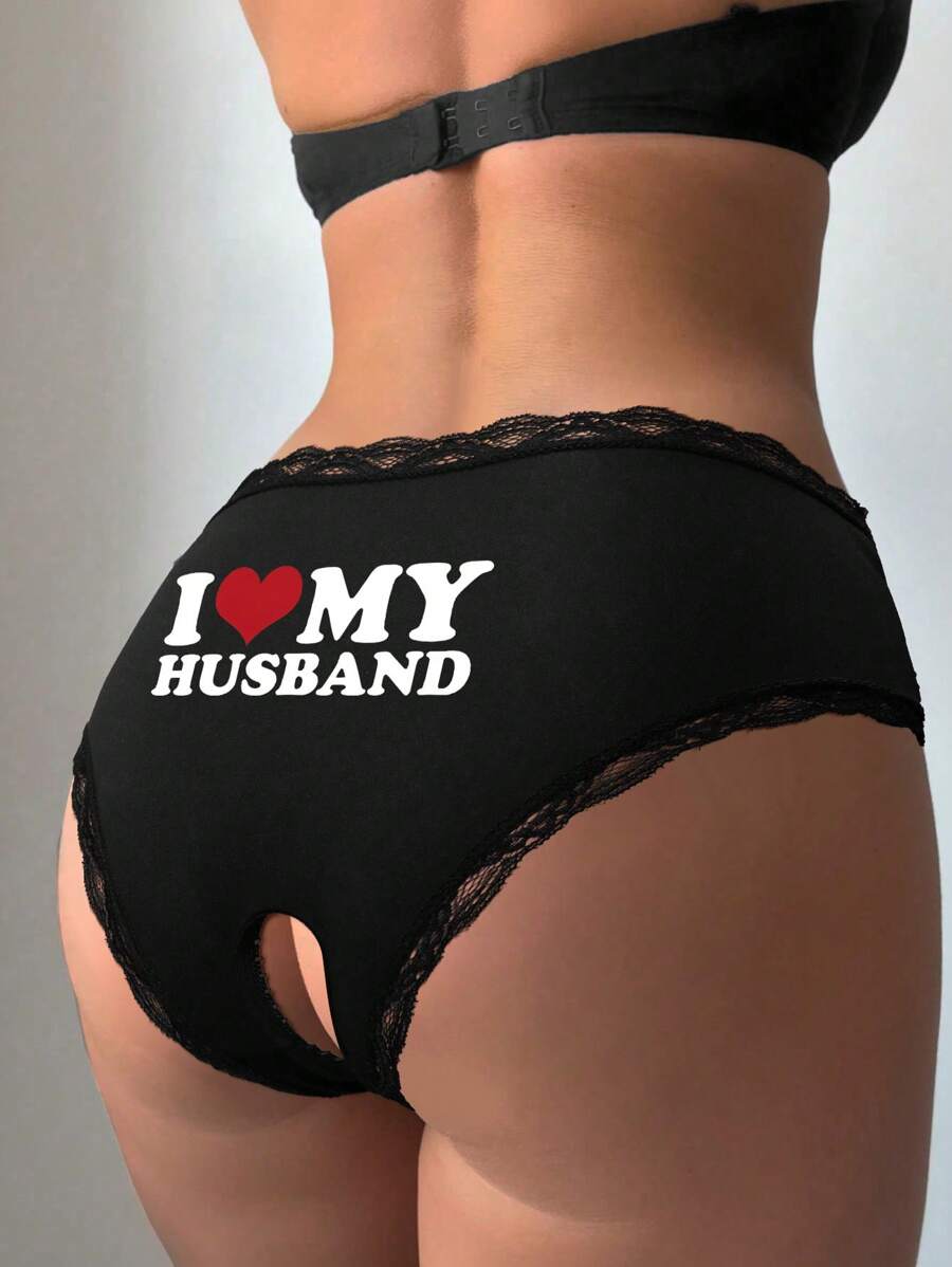 Bragas negras de mujer con encaje y estampado de corazon sexy con abertura en la entrepierna, comodas, elasticas, transpirables y delgadas para salir