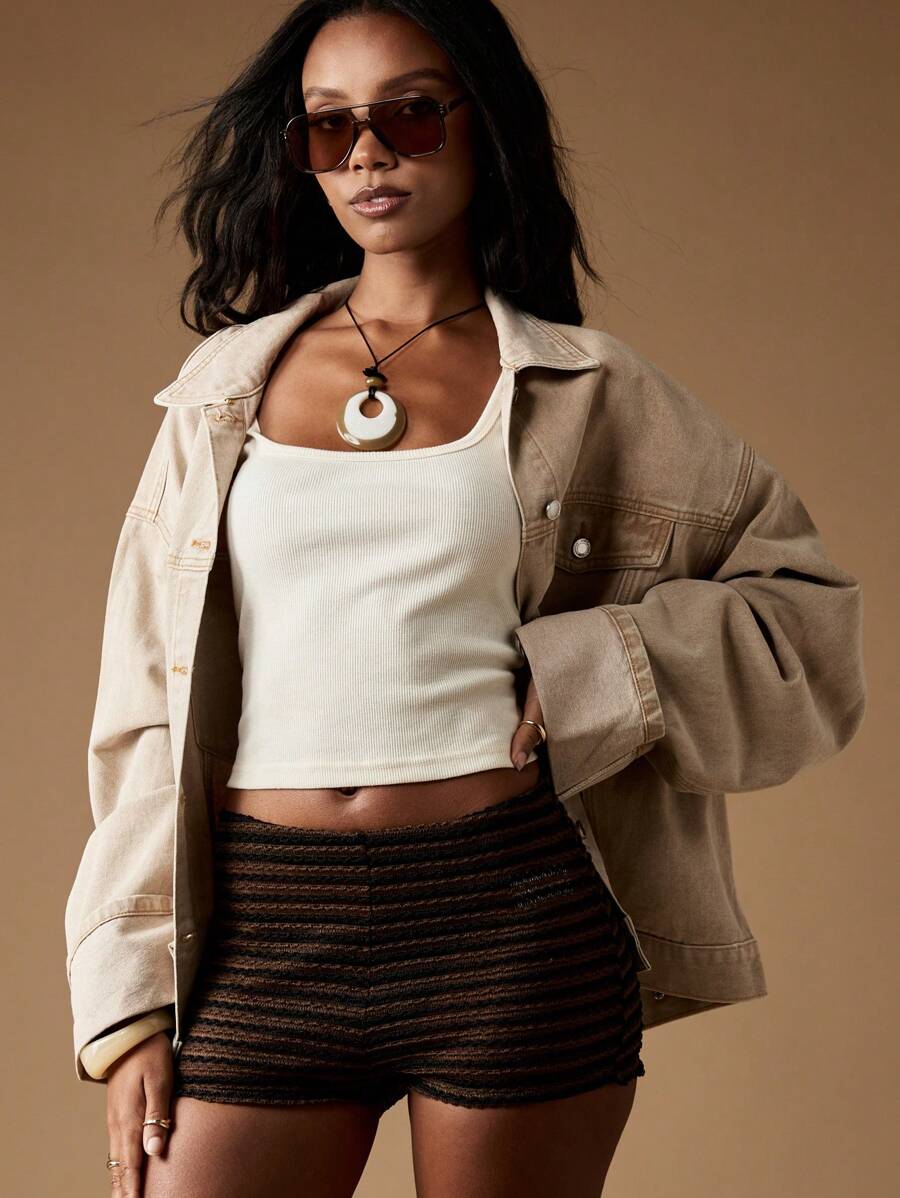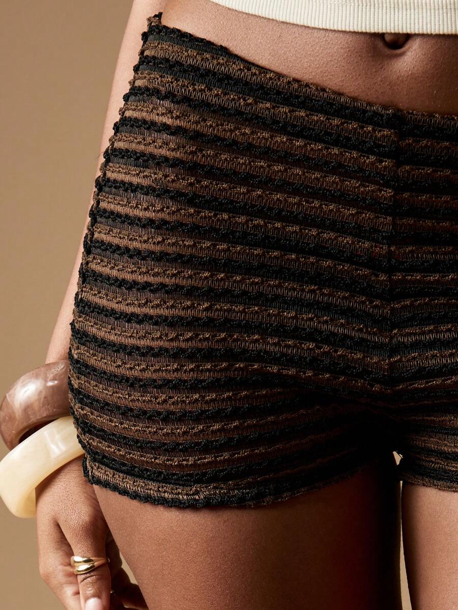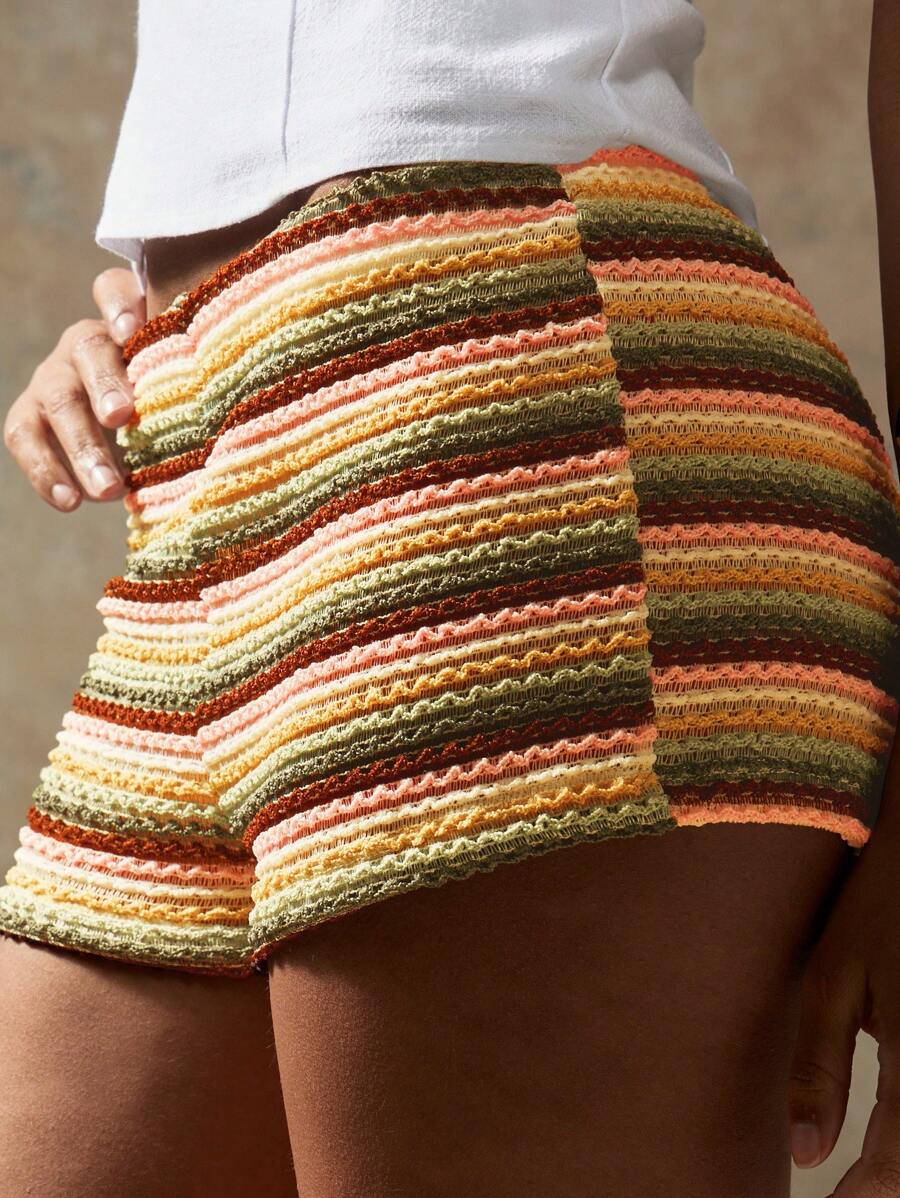 Shorts de playa de estilo retro con cinturilla elastica, de punto a ganchillo, de estilo bohemio, a rayas multicolor, para cubrir el traje de bano en festivales de verano