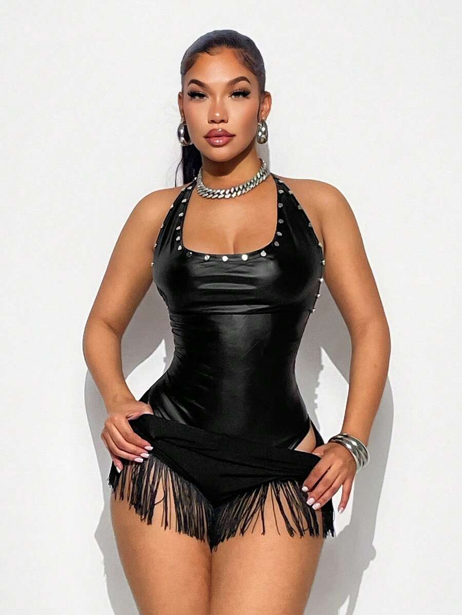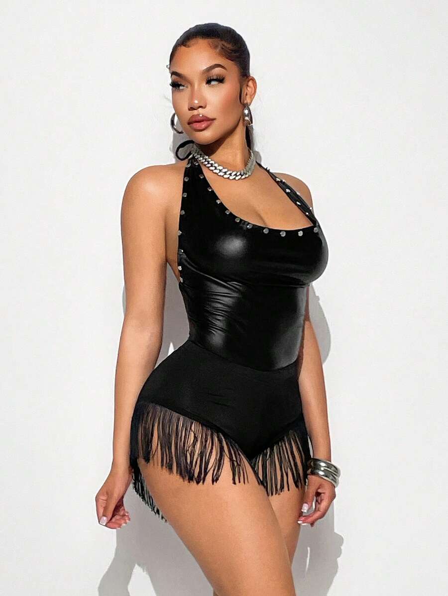 Detalles: Asimetrico, Espalda al aire, Flecos