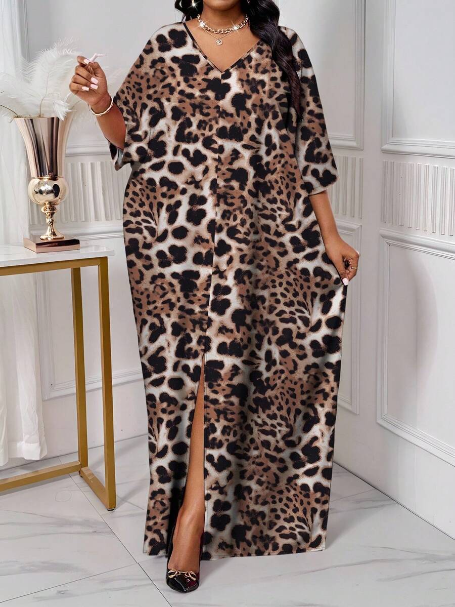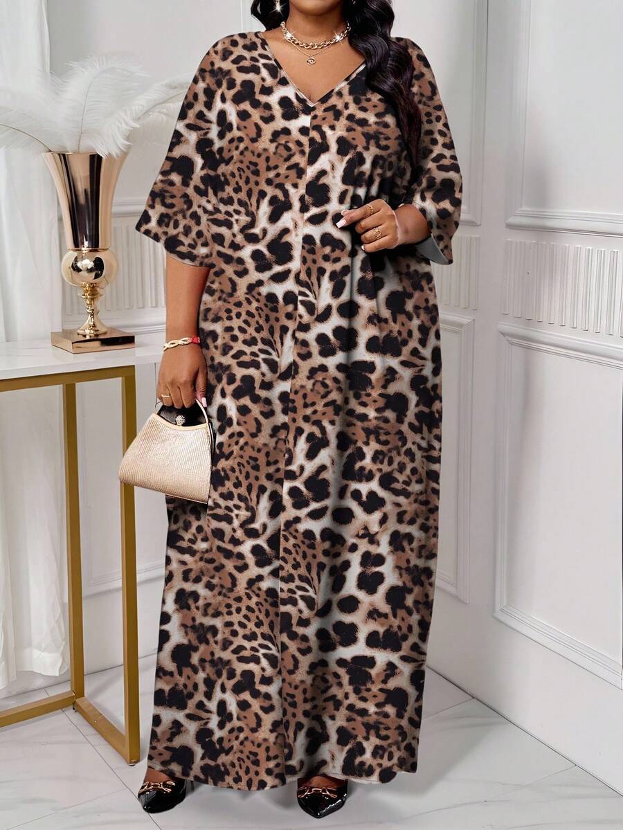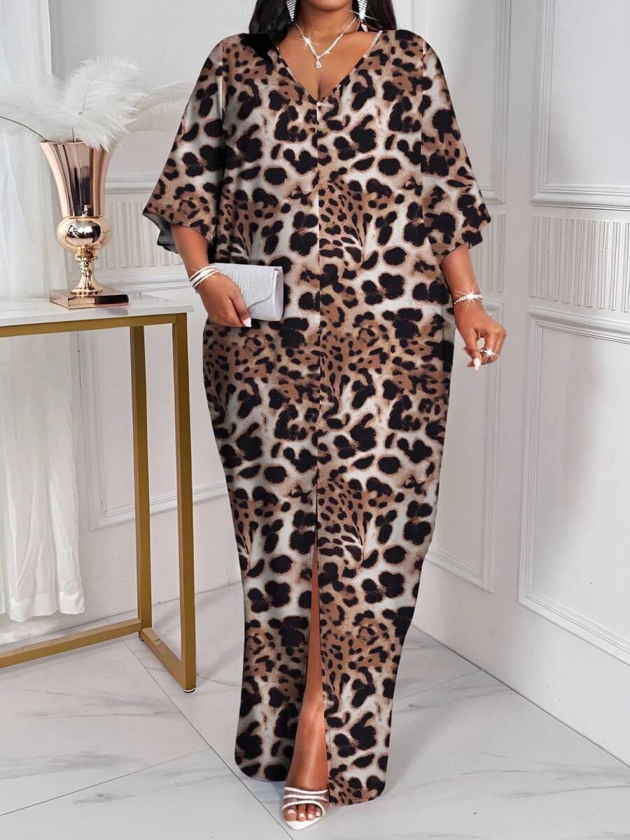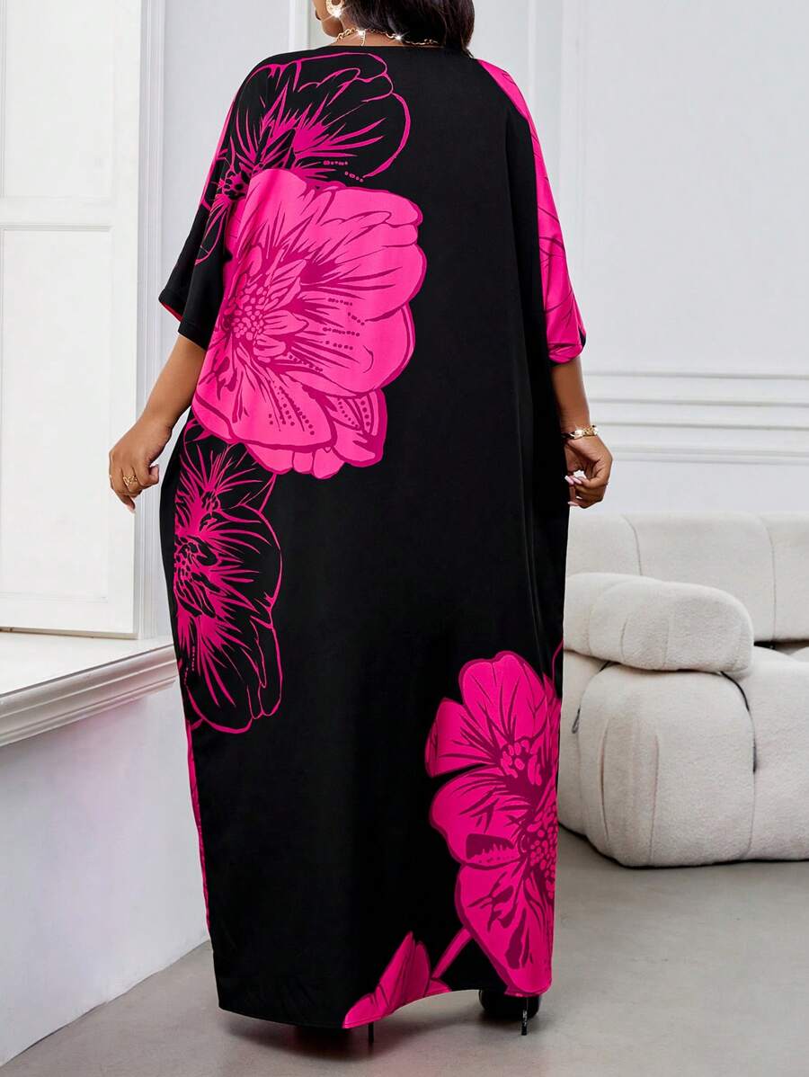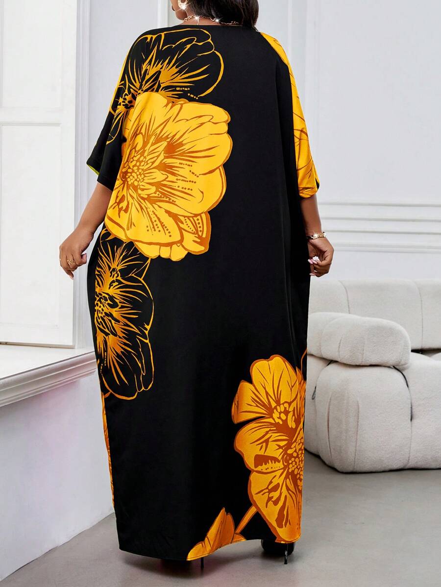 Vestido batas de punto recto con cuello en v elegante y casual de estilo bohemio en negro, vestido largo tipo kaftan para tallas grandes, vestido de pascua para mujeres, conjunto primaveral para mujer