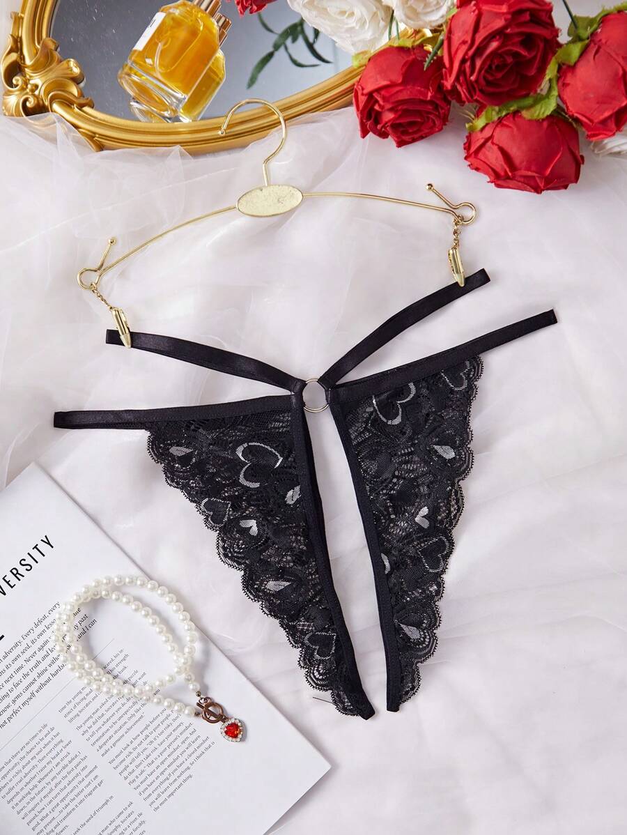 Bragas con forma de corazon de encaje sexy de abertura entrepierna para mujeres