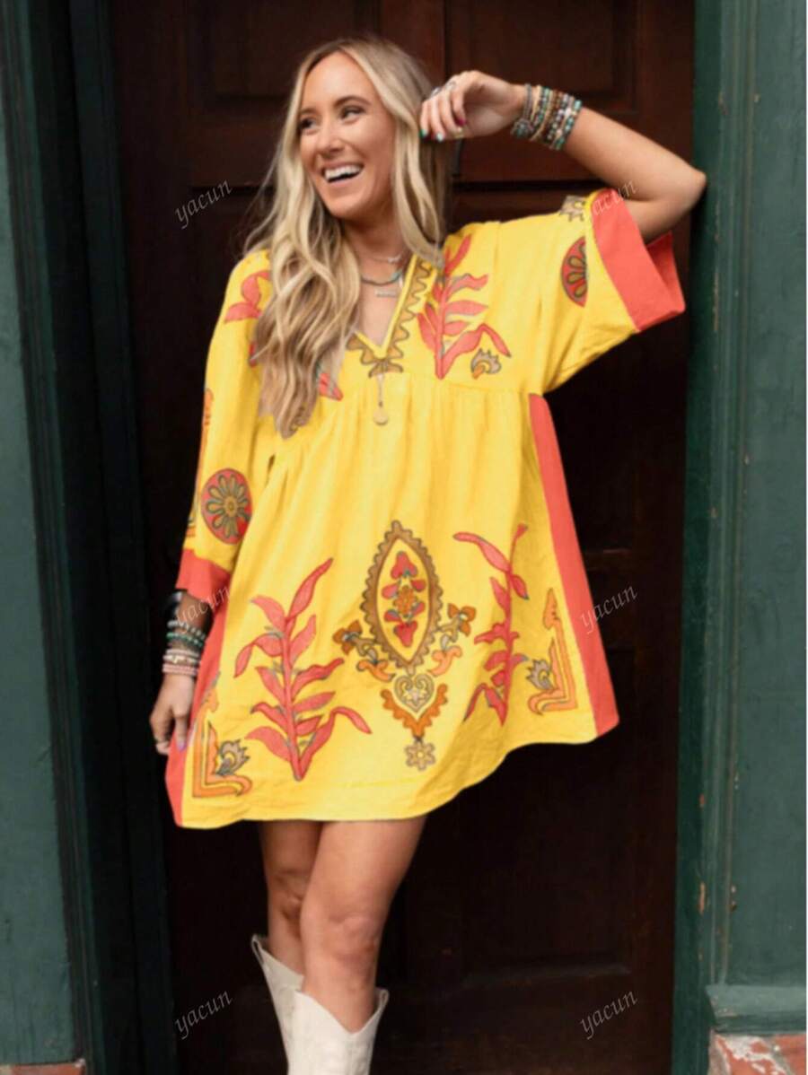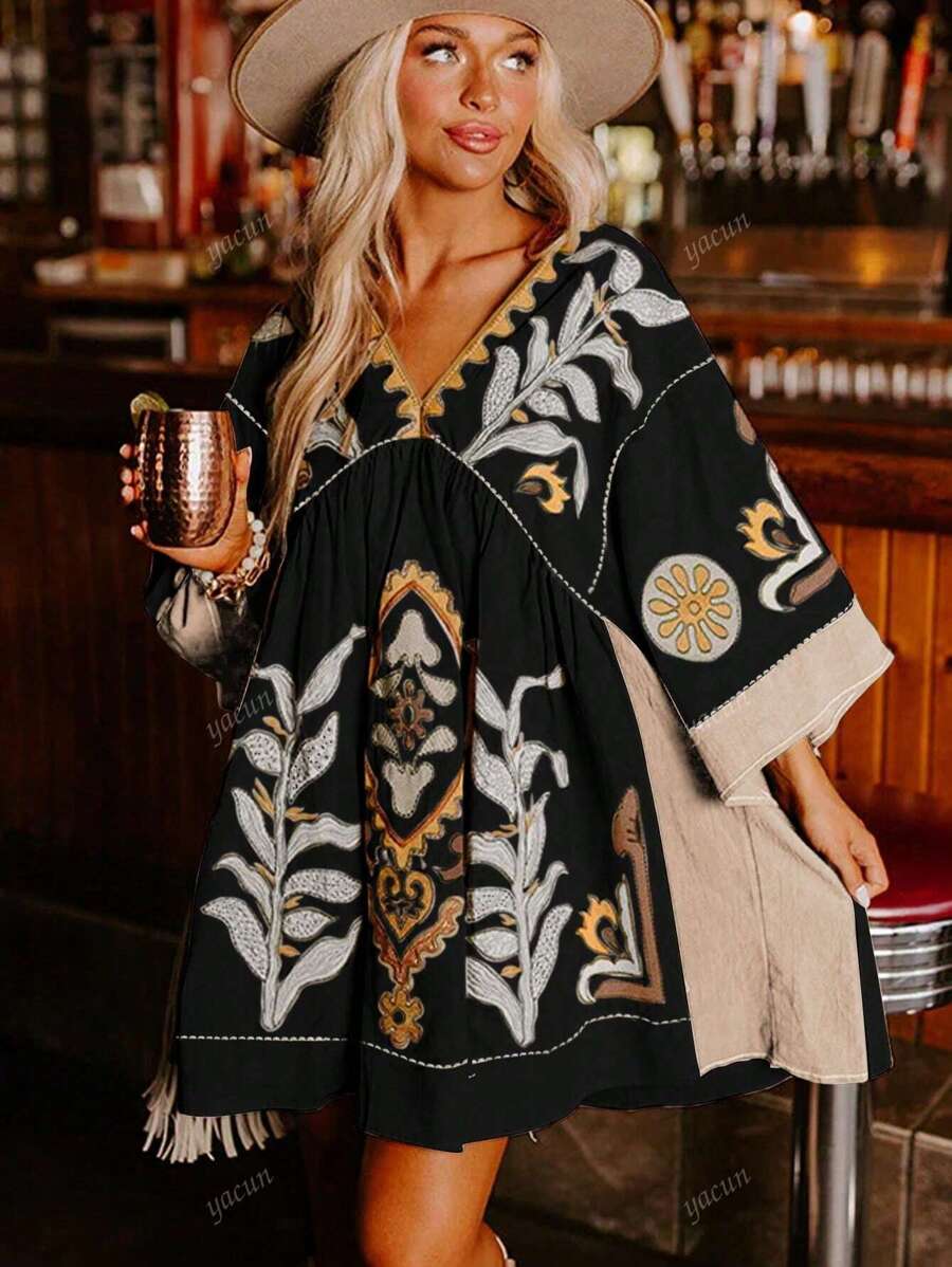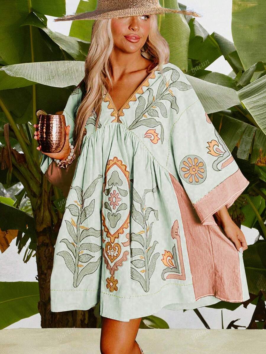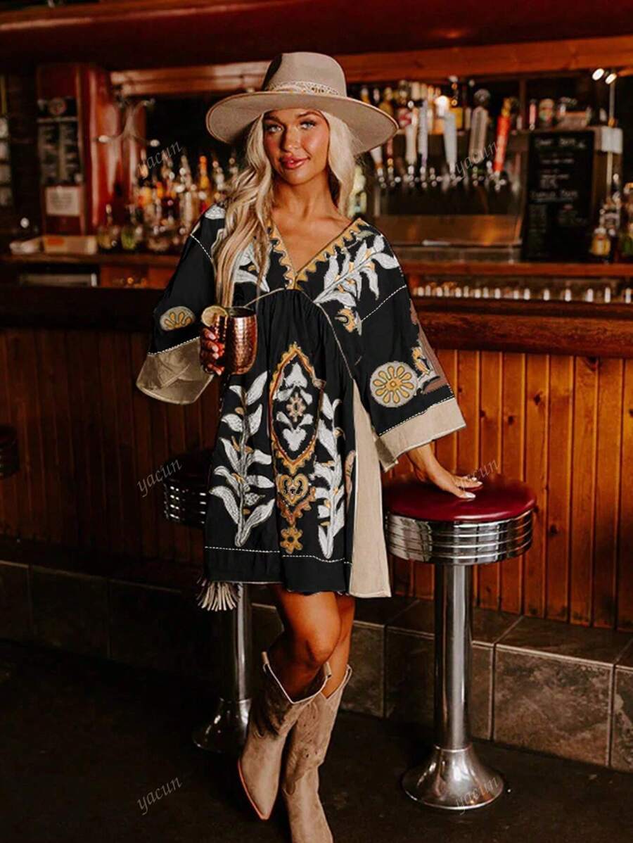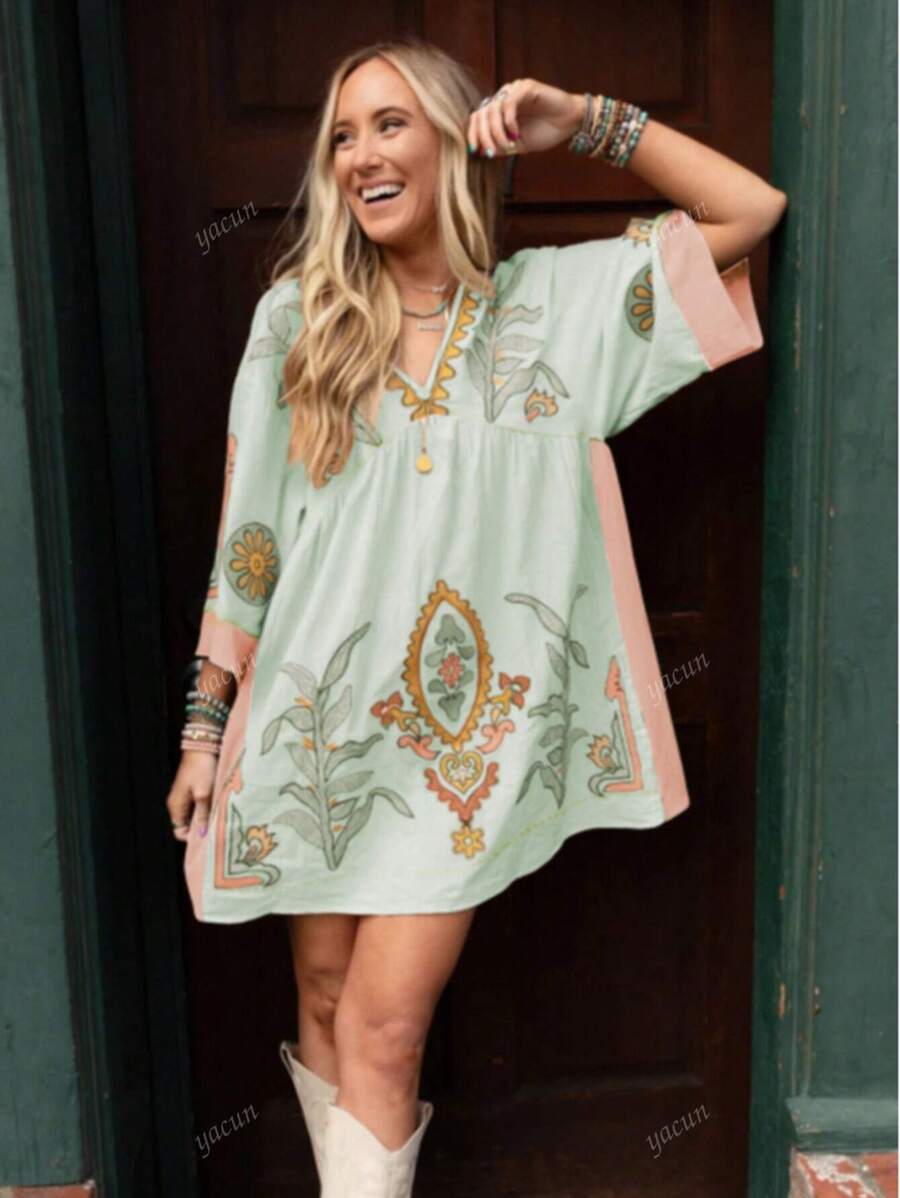 Vestido con estampado floral bohemio, vestimenta informal de verano para playa y vacaciones, estilo boho occidental para mujeres, atuendo para conciertos