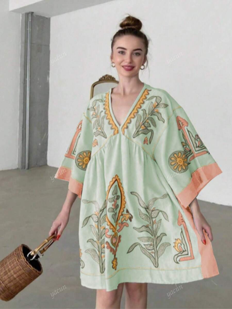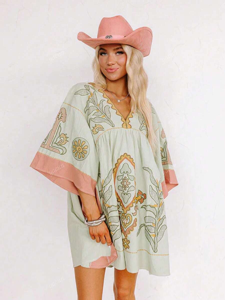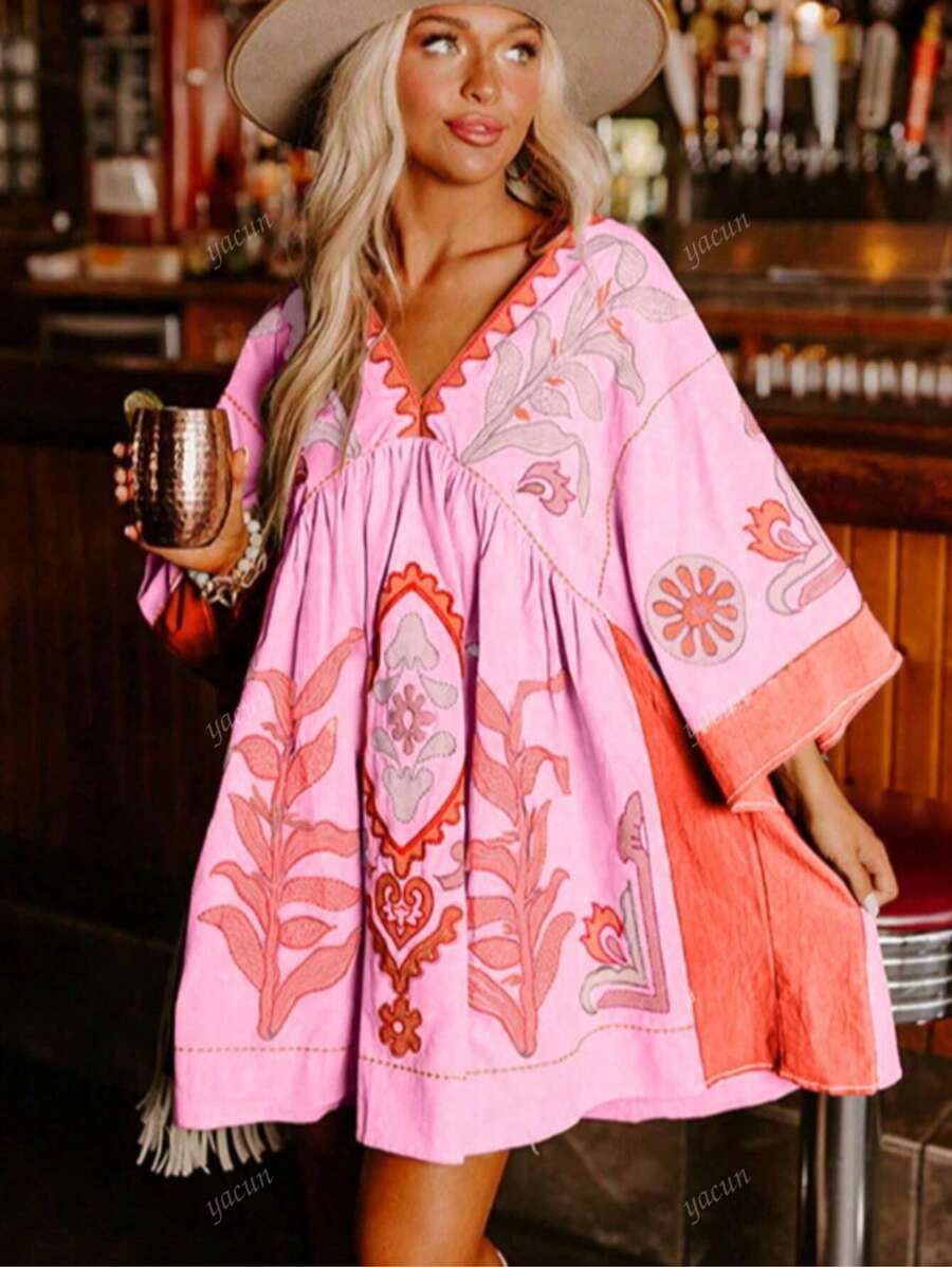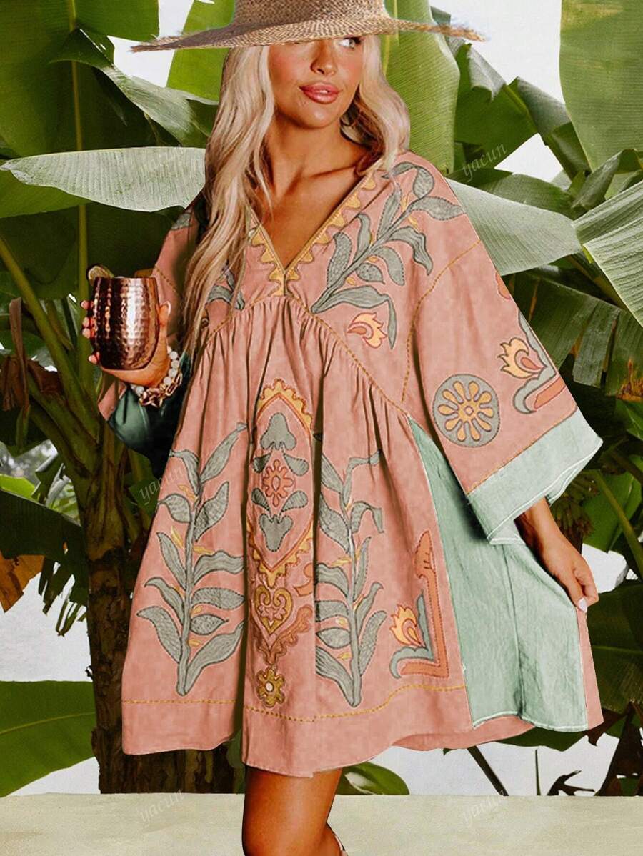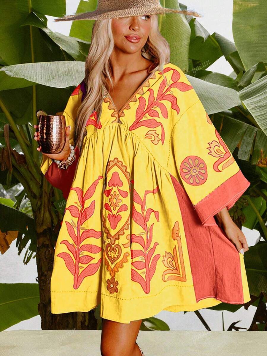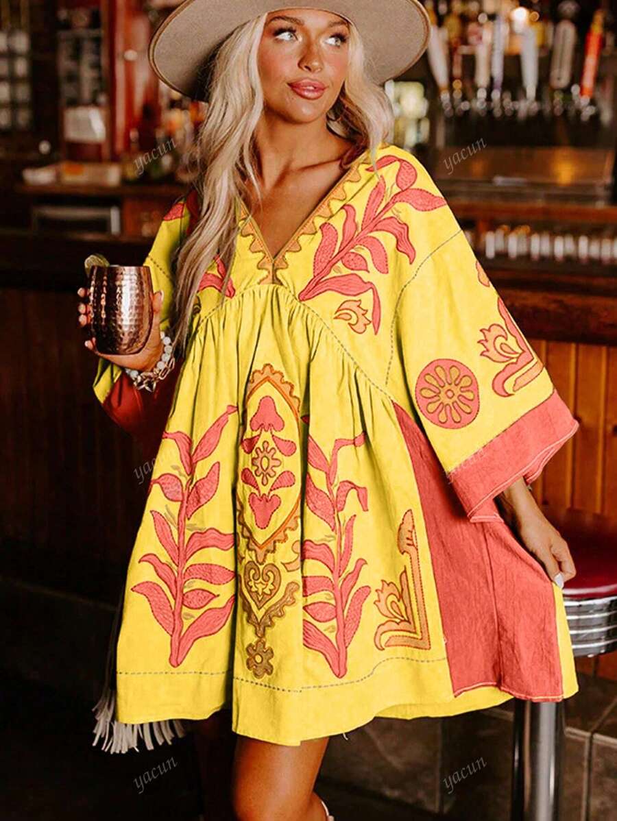 Vestido con estampado floral bohemio, vestimenta informal de verano para playa y vacaciones, estilo boho occidental para mujeres, atuendo para conciertos