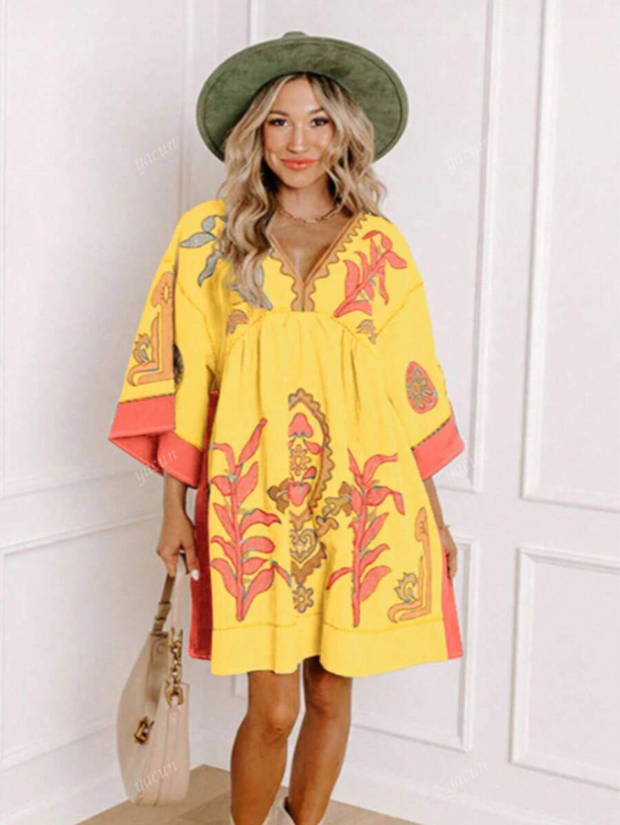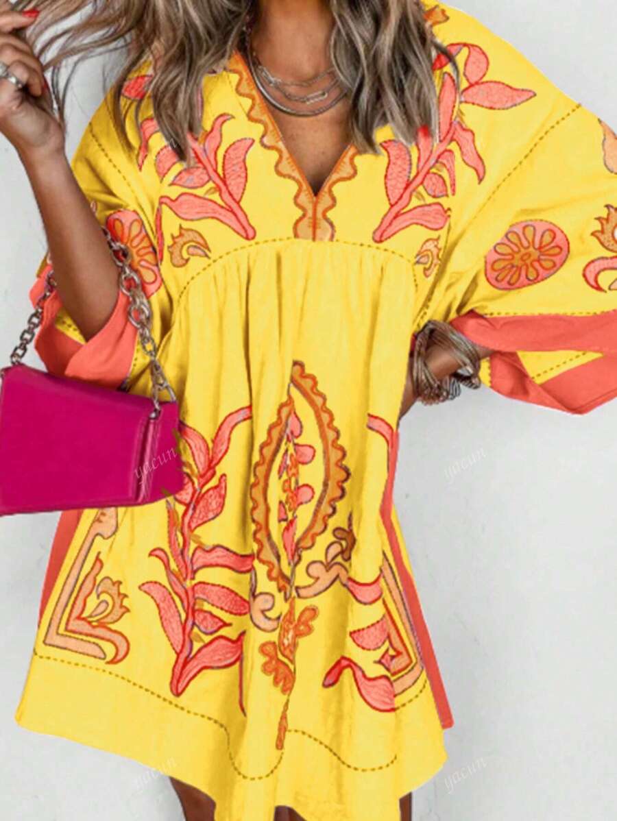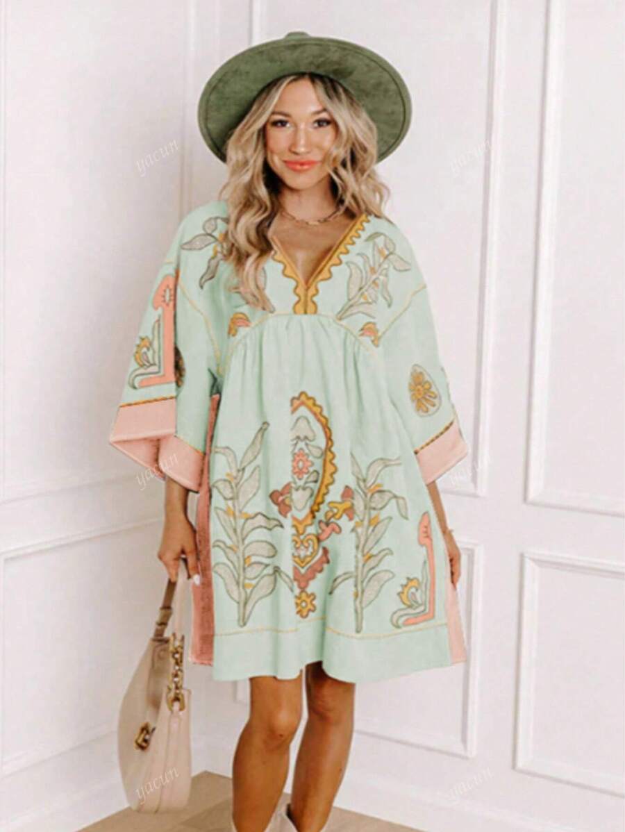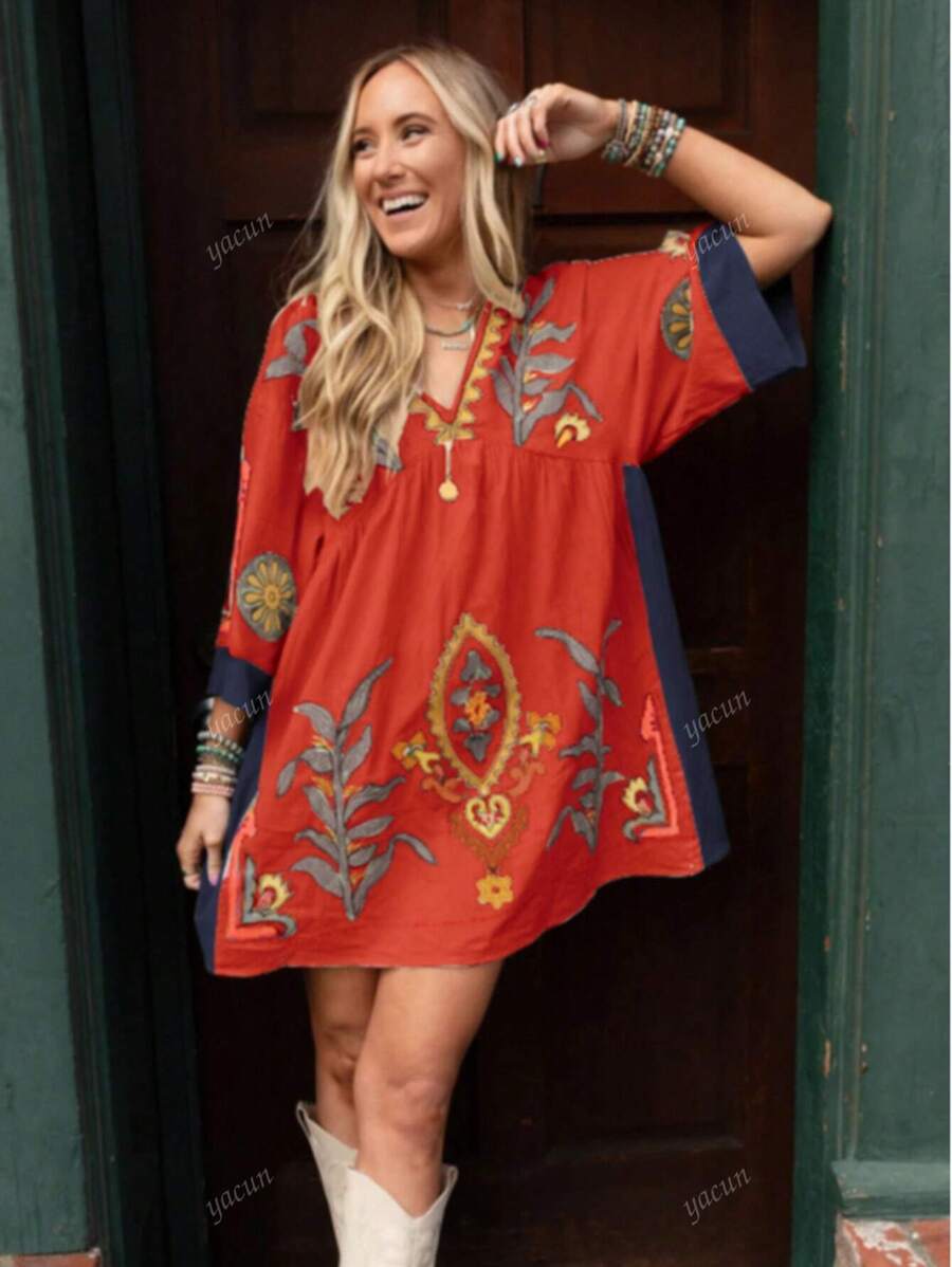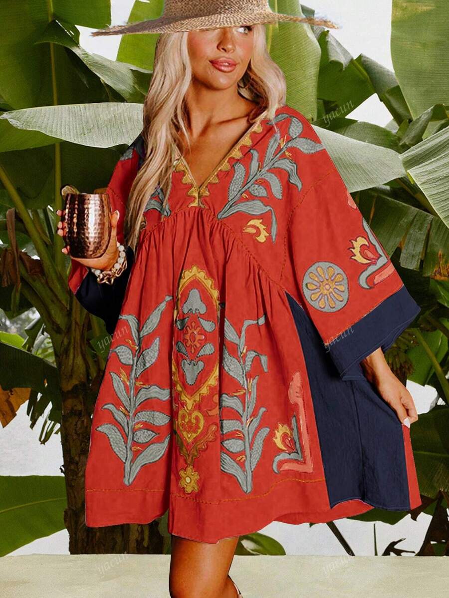 Vestido con estampado floral bohemio, vestimenta informal de verano para playa y vacaciones, estilo boho occidental para mujeres, atuendo para conciertos