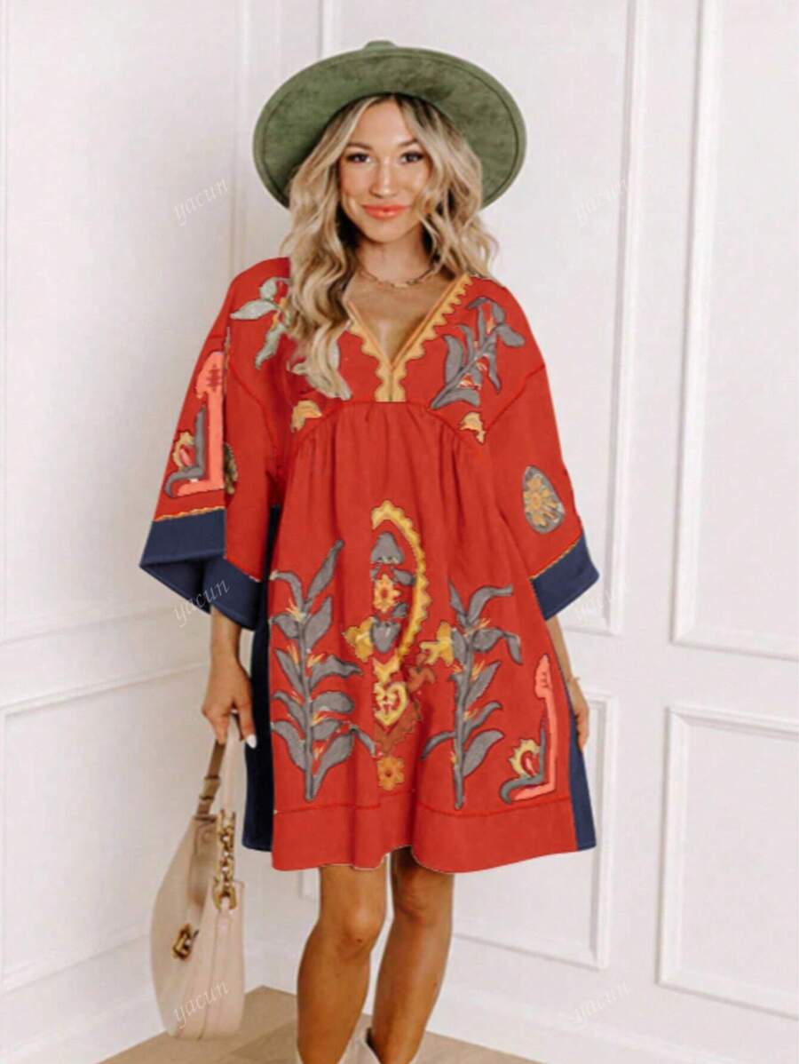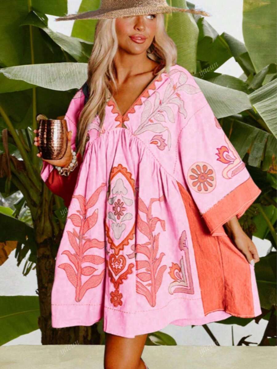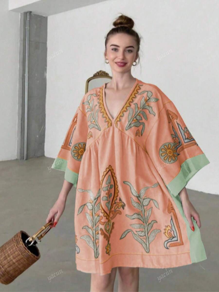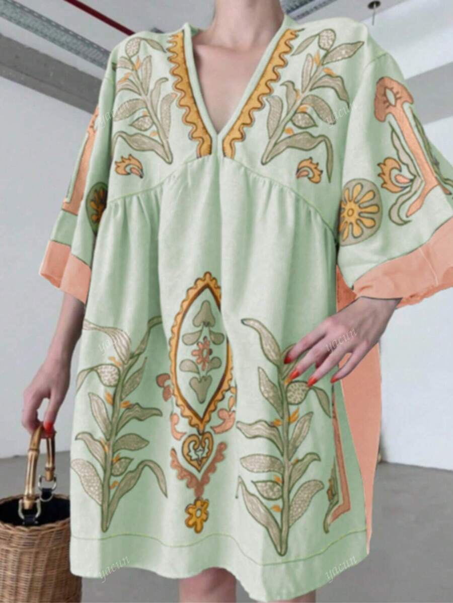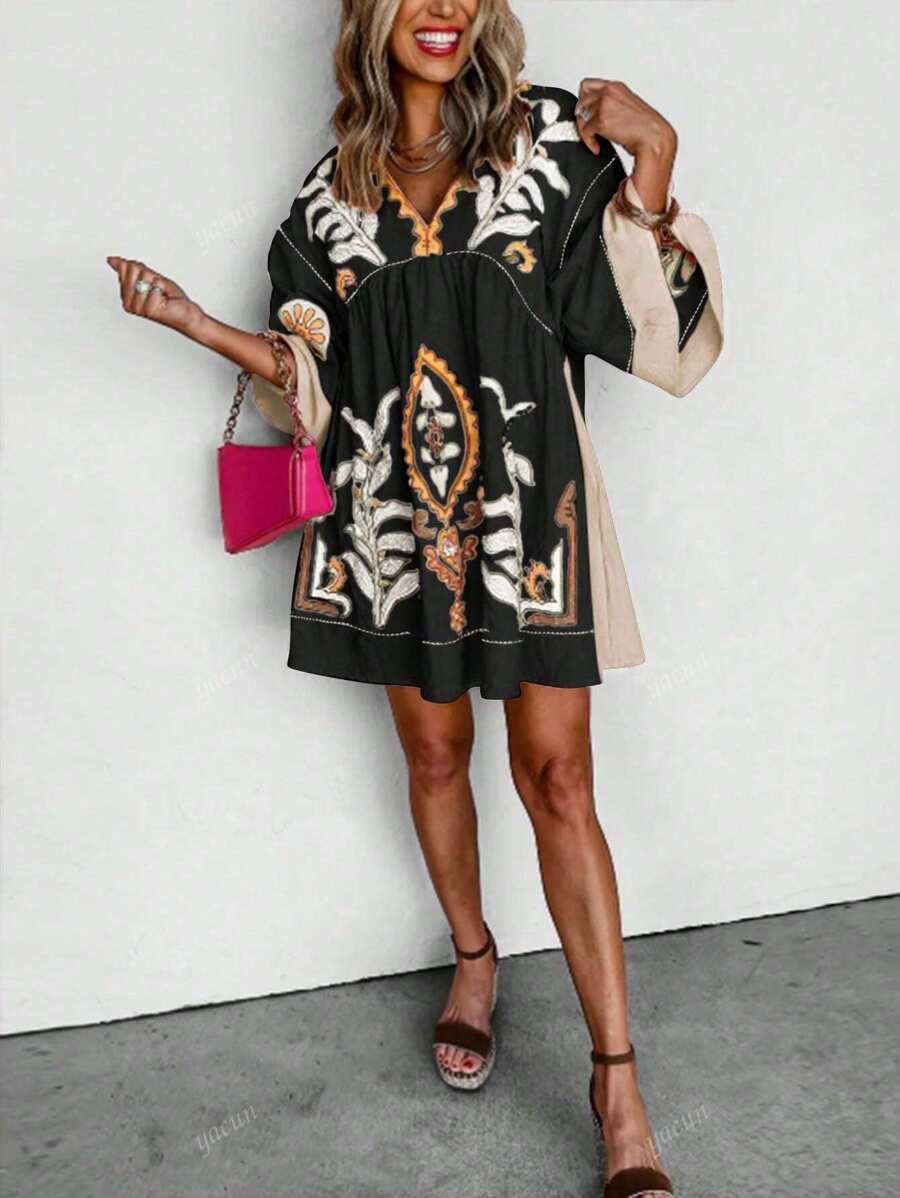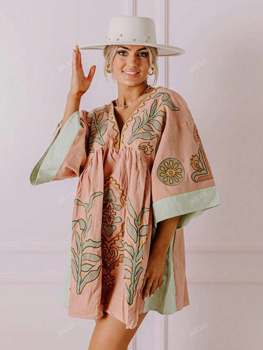Vestido con estampado floral bohemio, vestimenta informal de verano para playa y vacaciones, estilo boho occidental para mujeres, atuendo para conciertos