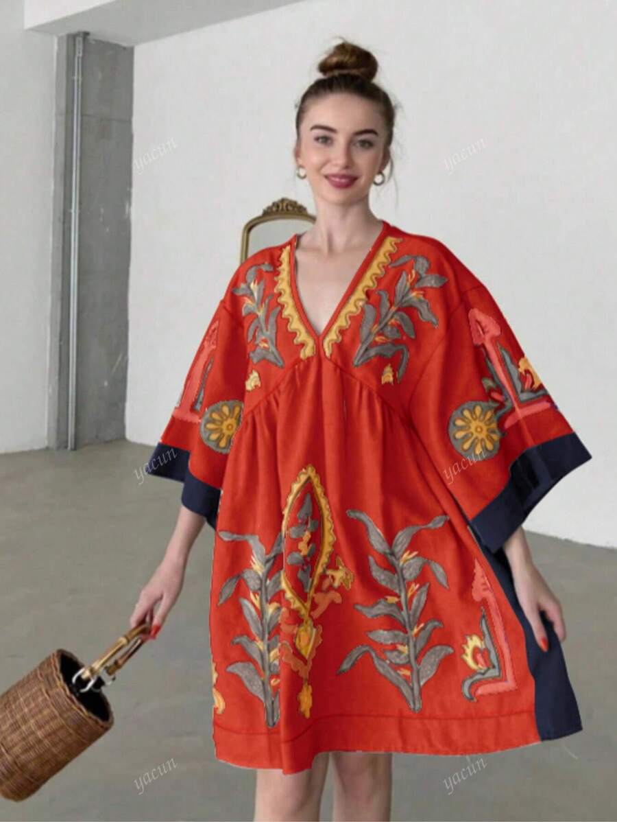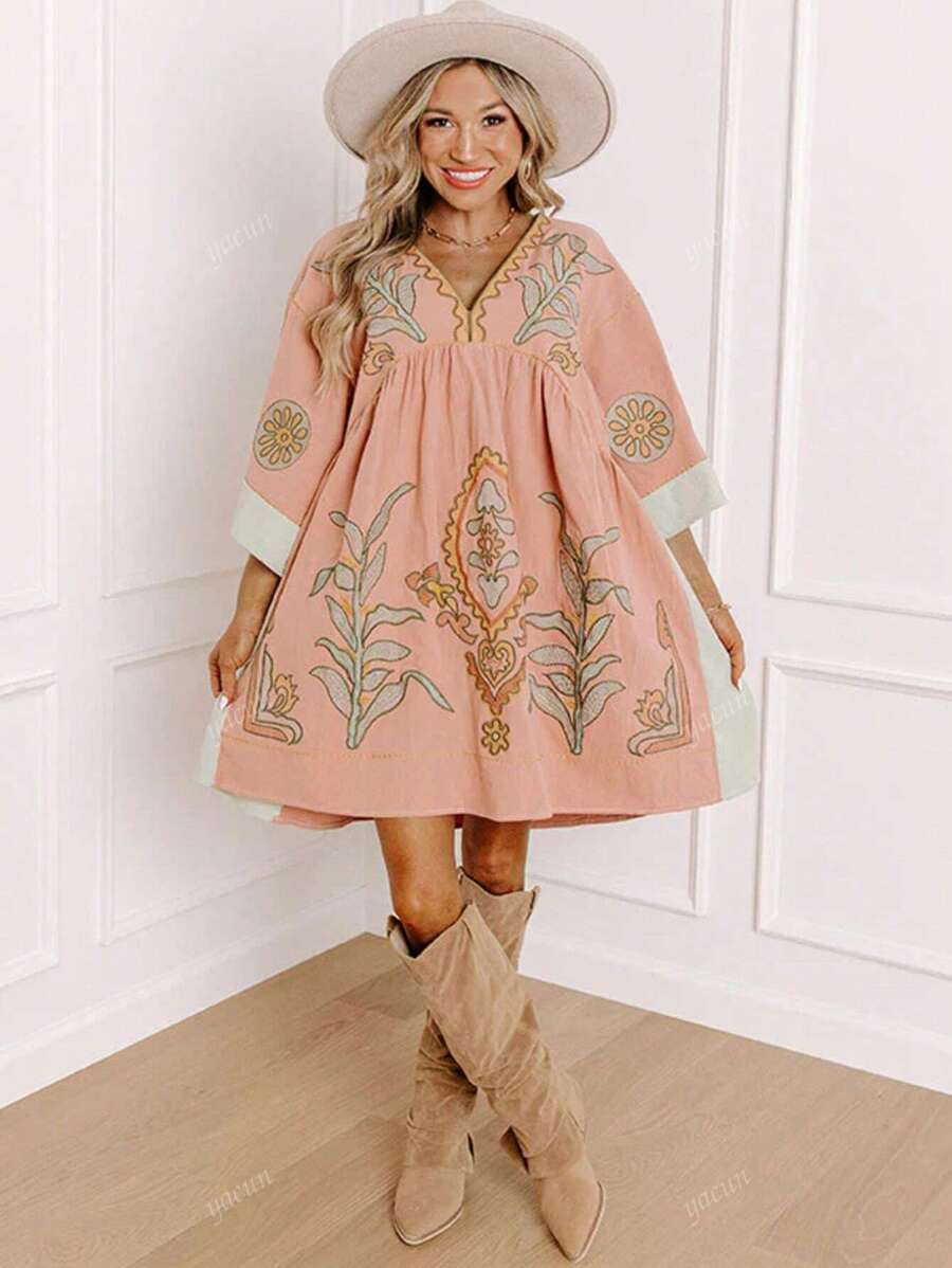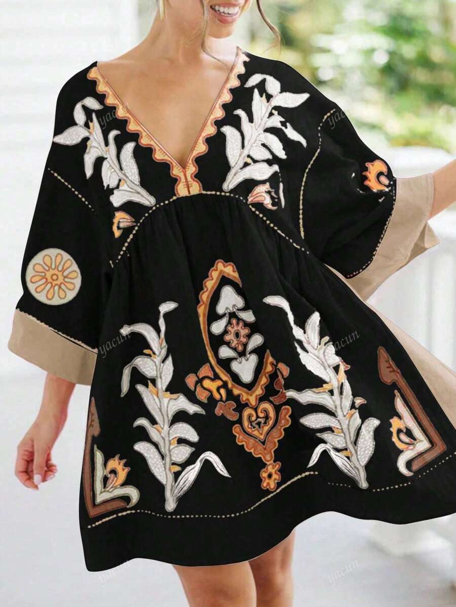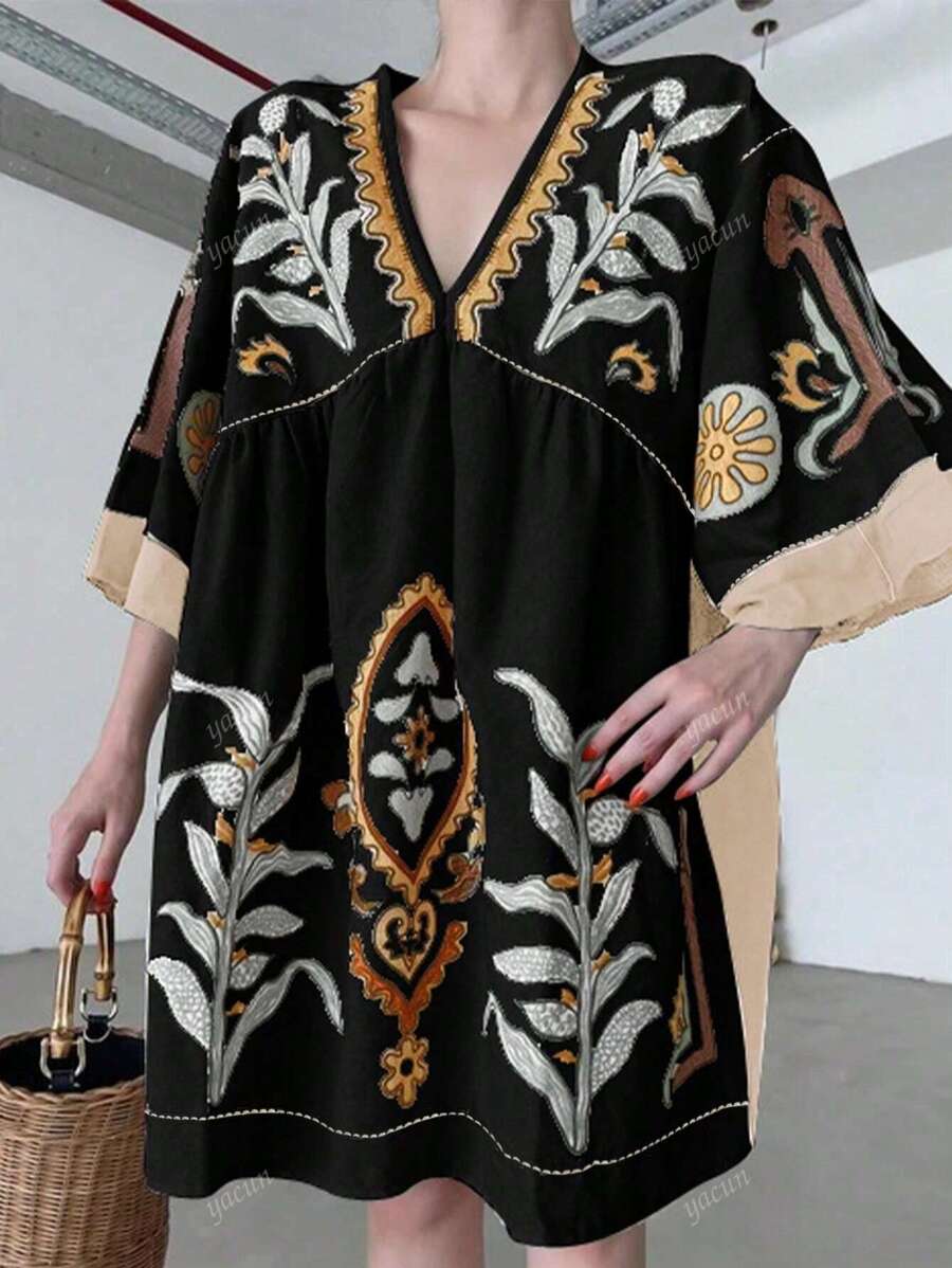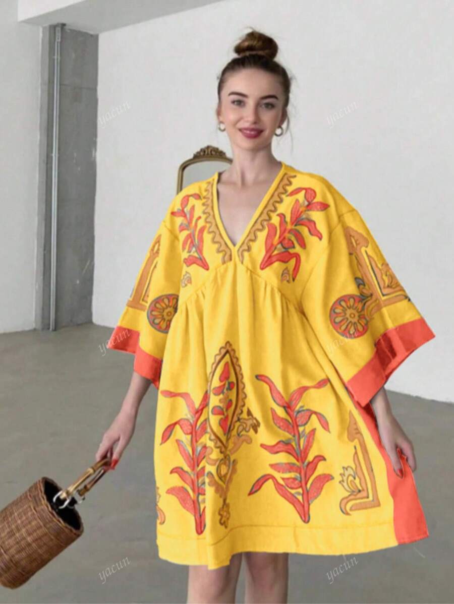 Vestido con estampado floral bohemio, vestimenta informal de verano para playa y vacaciones, estilo boho occidental para mujeres, atuendo para conciertos