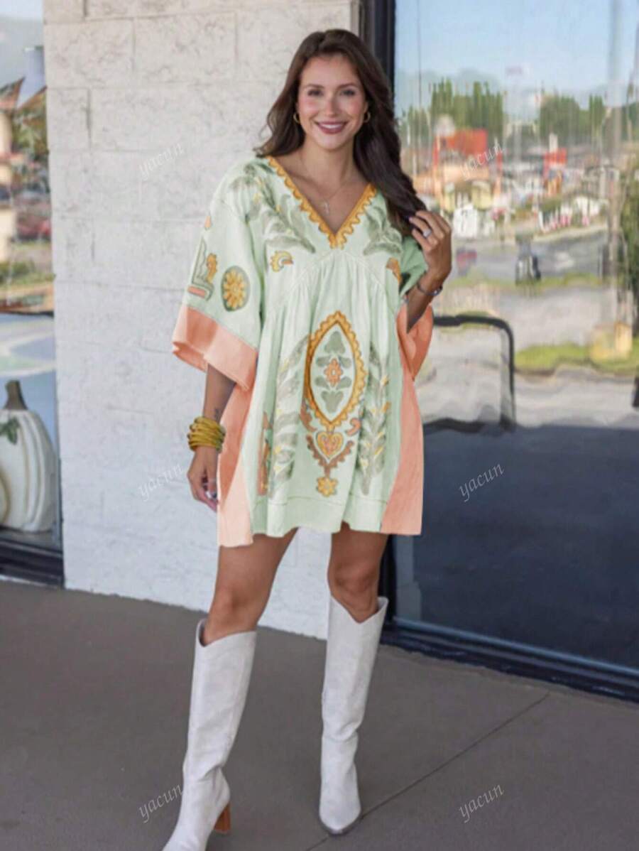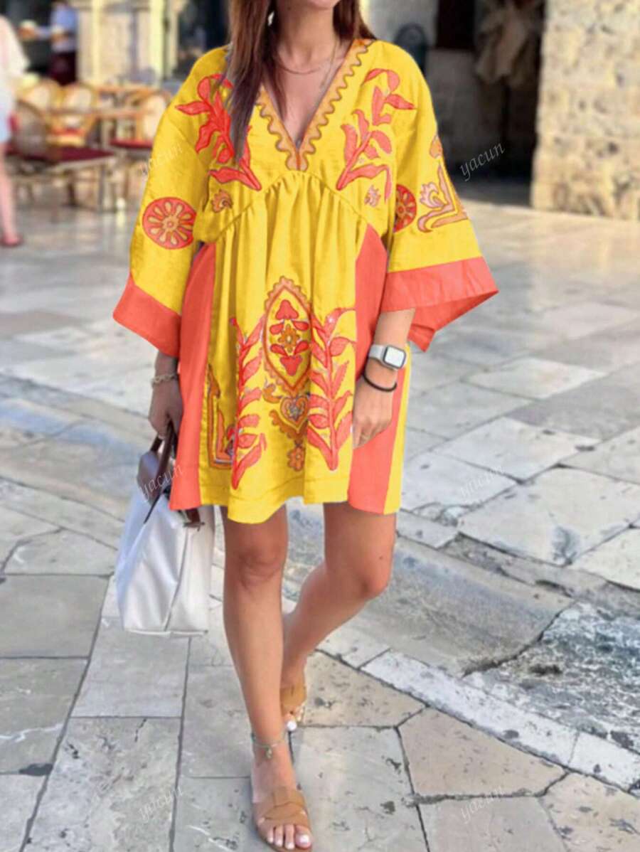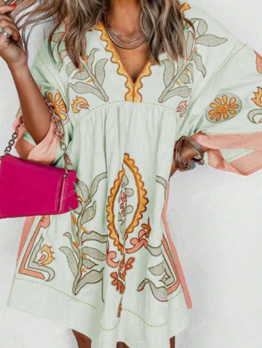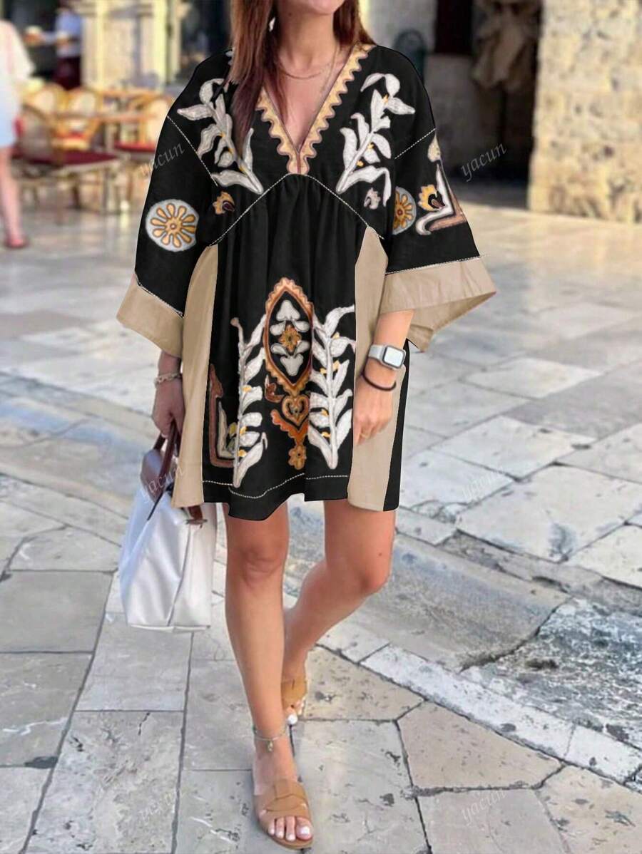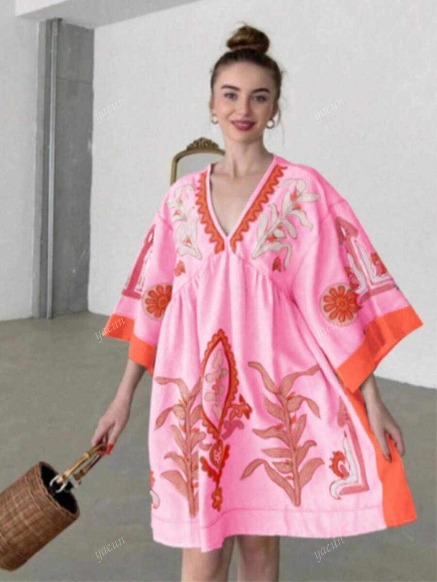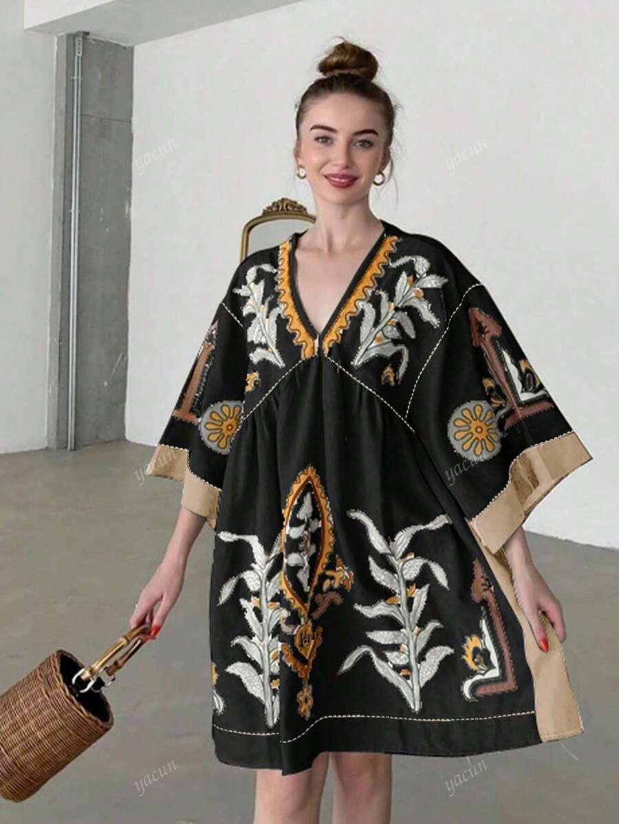 Vestido con estampado floral bohemio, vestimenta informal de verano para playa y vacaciones, estilo boho occidental para mujeres, atuendo para conciertos
