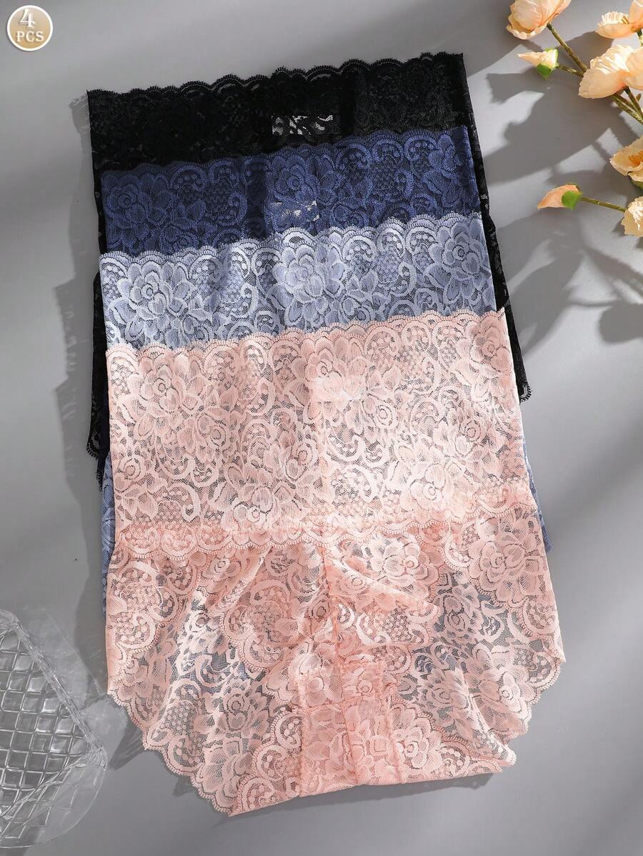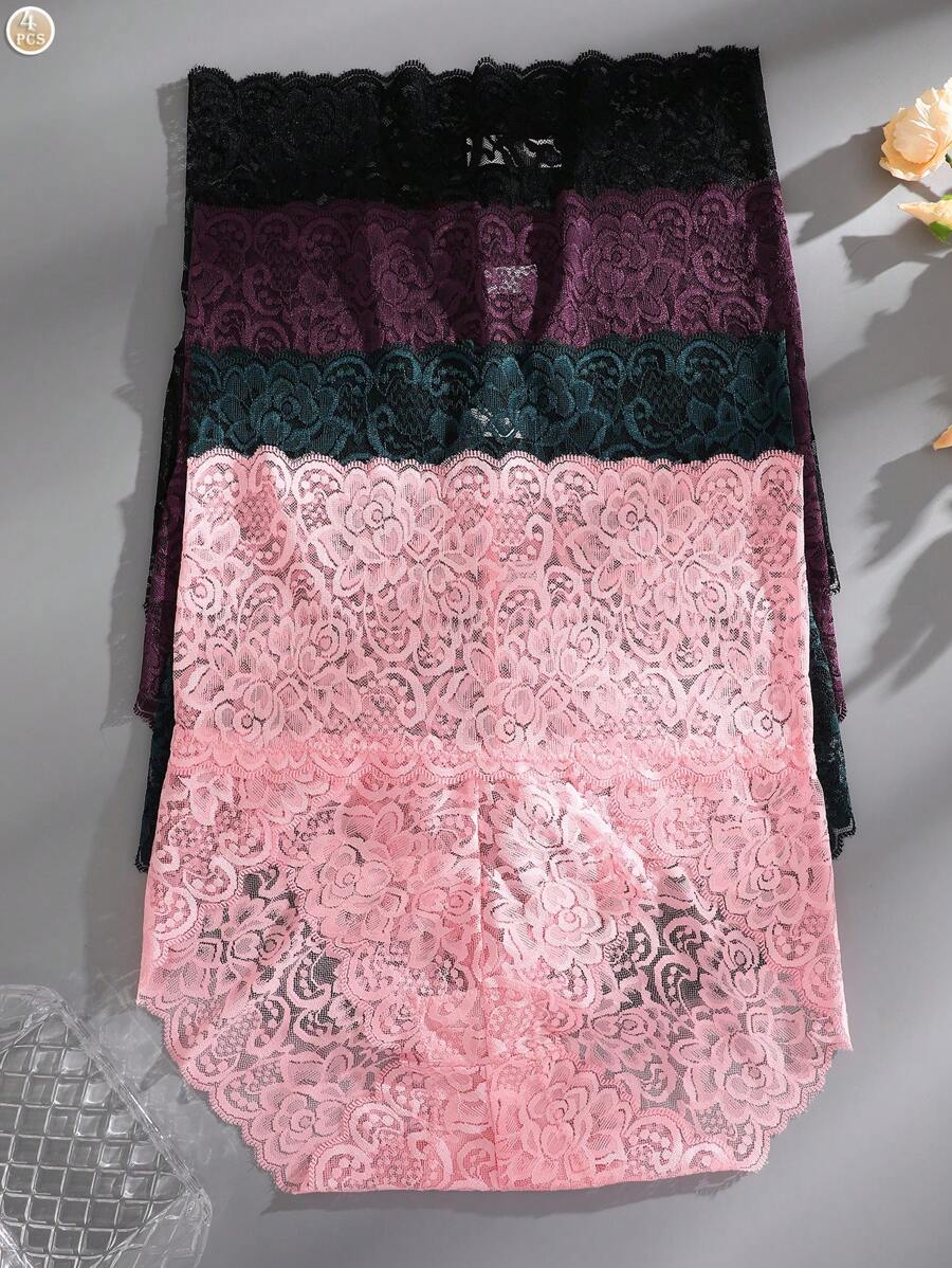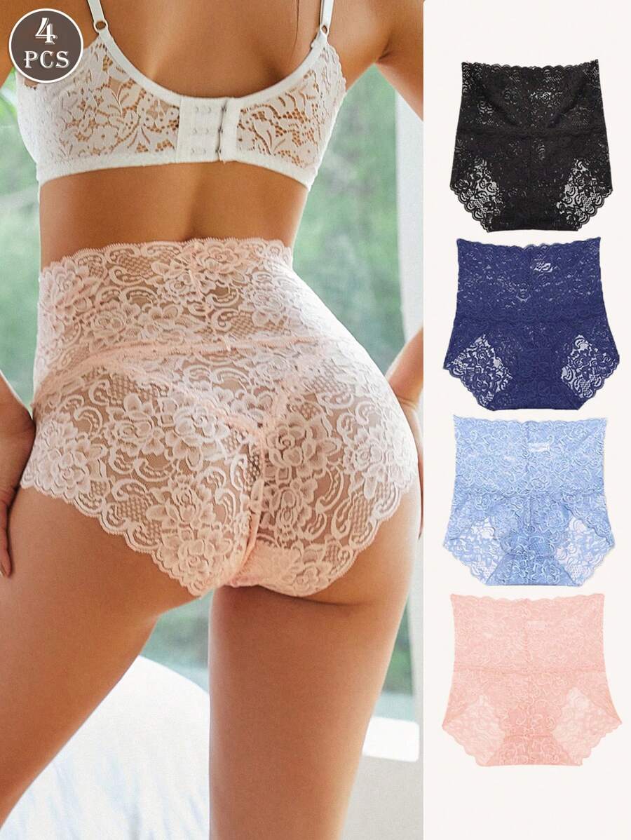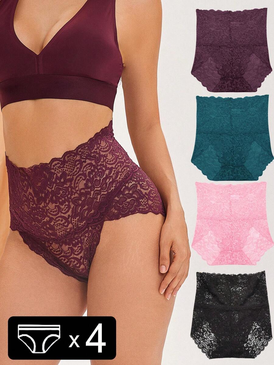 4 piezas bragas de mujer con cintura alta, de encaje completo, suaves, transpirables y con diseno sexy de cadera
