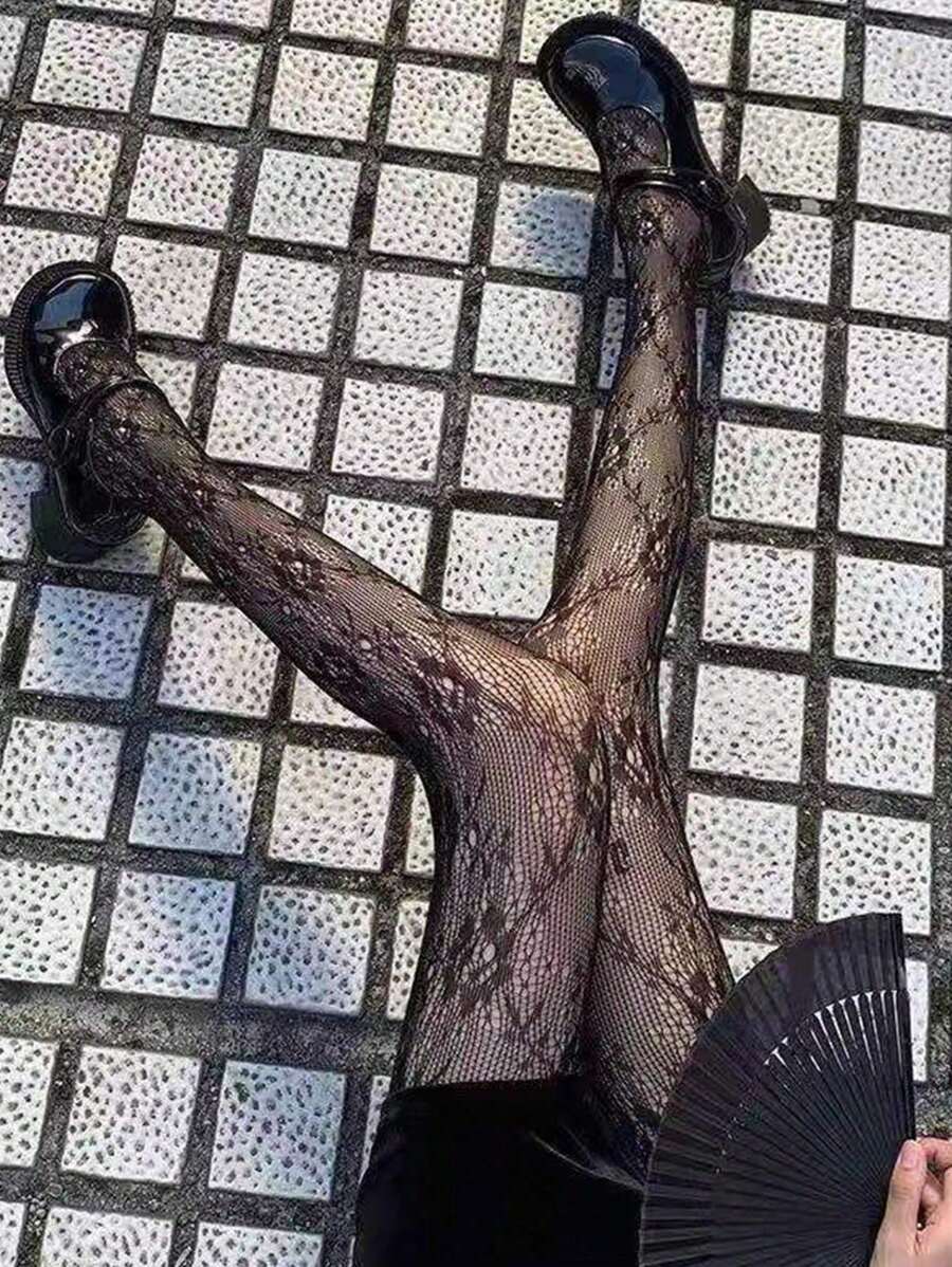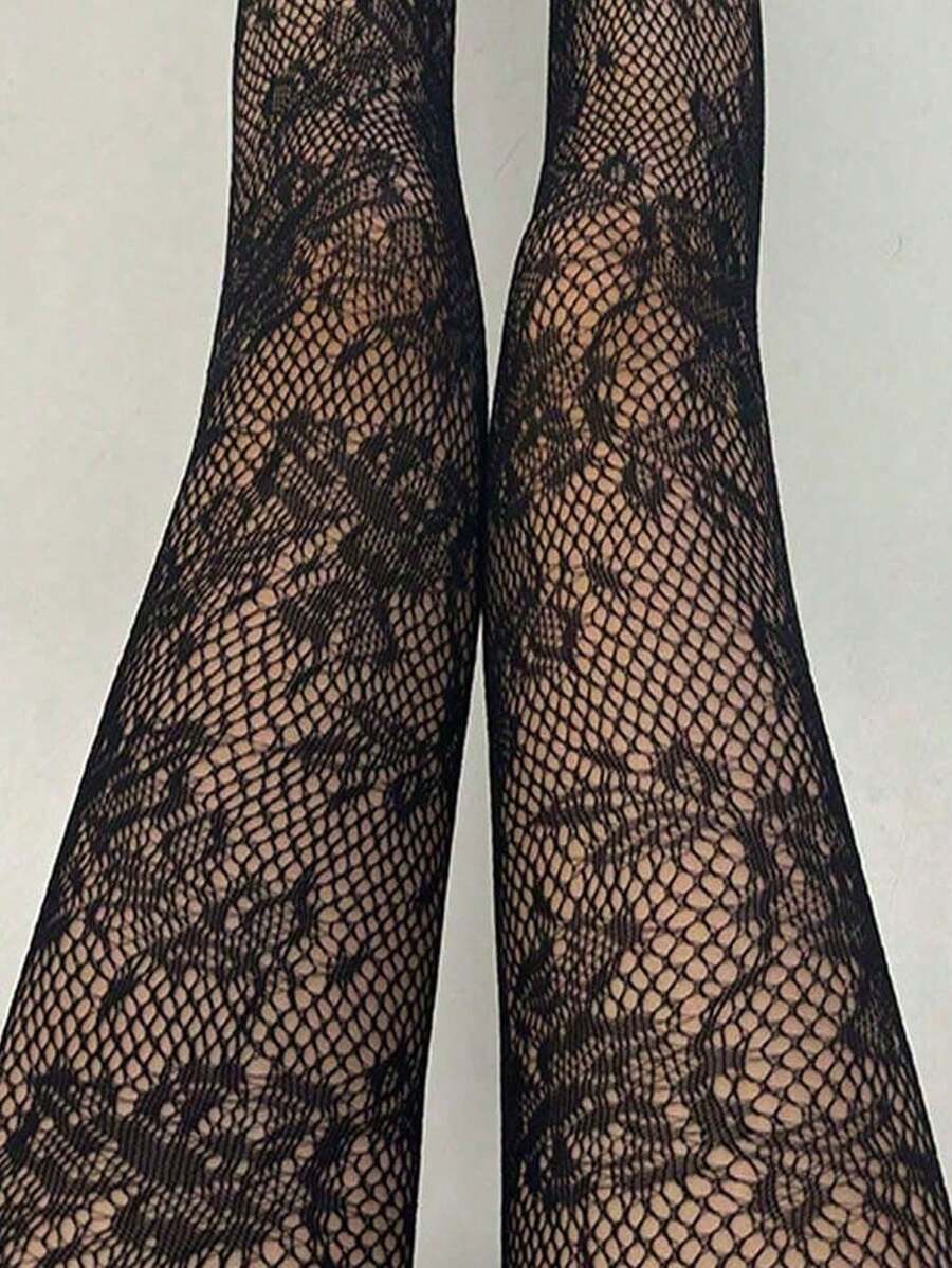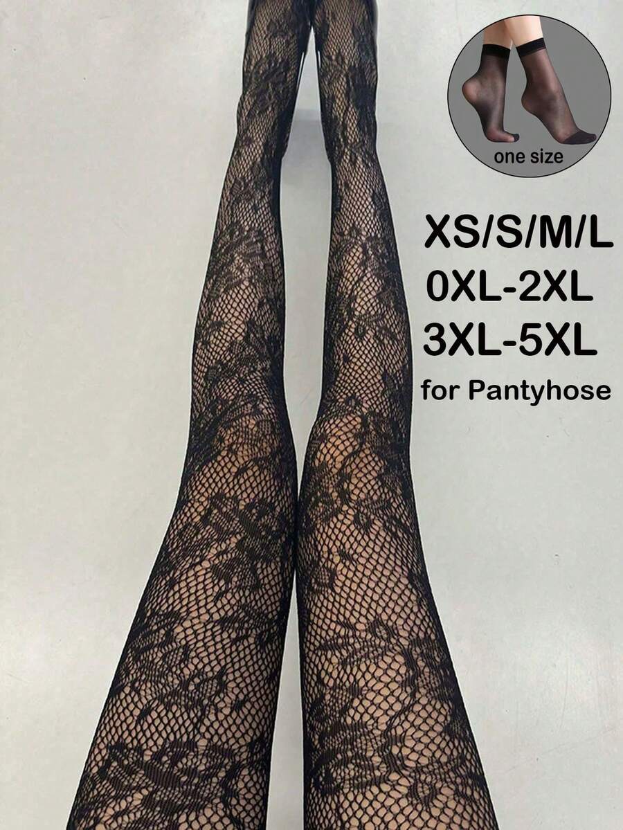 1 par de pantimedias sexy de mujer con estampado de flores negras, moda callejera sexy y versatil, regalo de navidad, navidad y halloween, talla unica para 1 par de calcetines cortos, xs/s/m/l/xl/0xl-2xl/3xl-5xl para pantimedias sexy negras con