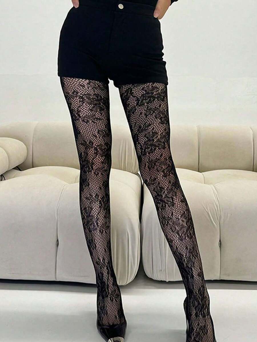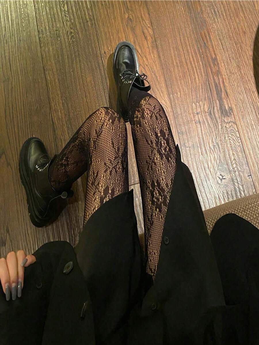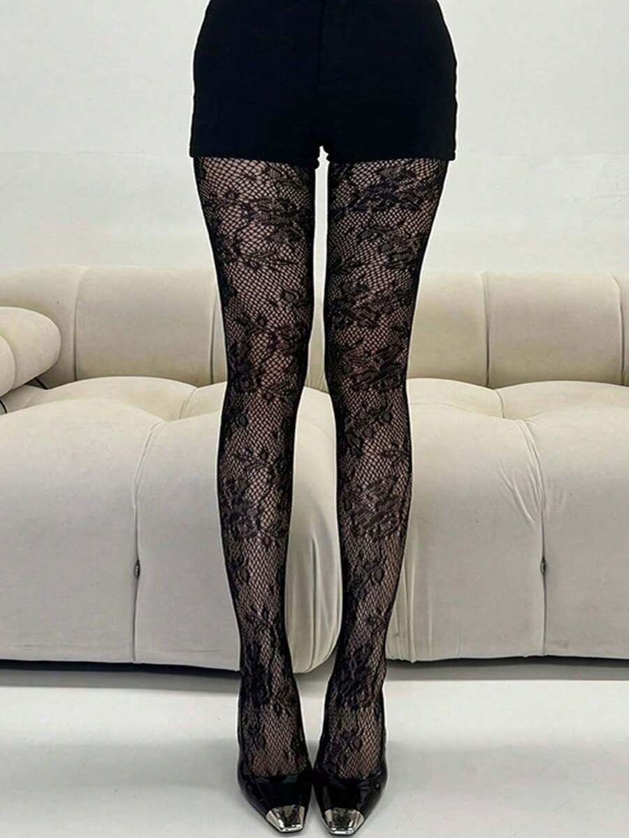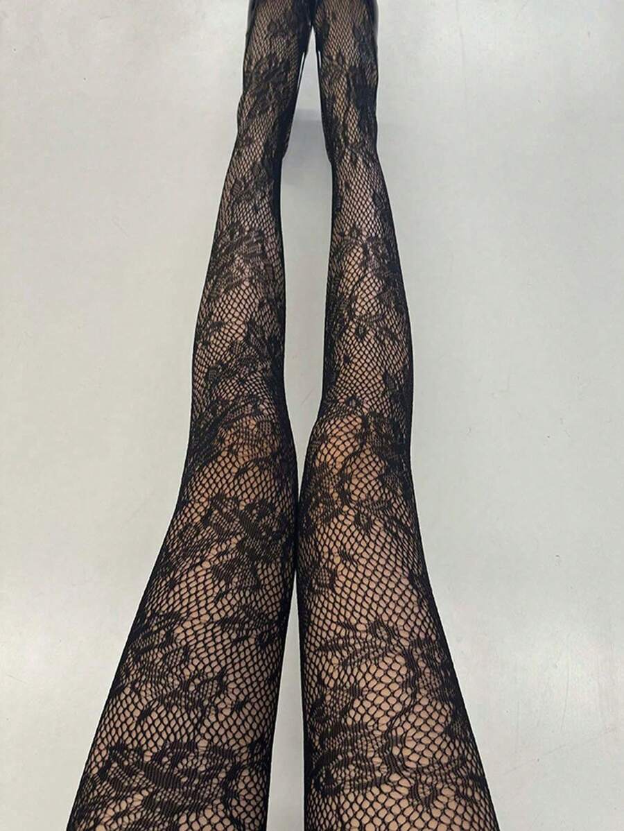 1 par de pantimedias sexy de mujer con estampado de flores negras, moda callejera sexy y versatil, regalo de navidad, navidad y halloween, talla unica para 1 par de calcetines cortos, xs/s/m/l/xl/0xl-2xl/3xl-5xl para pantimedias sexy negras con